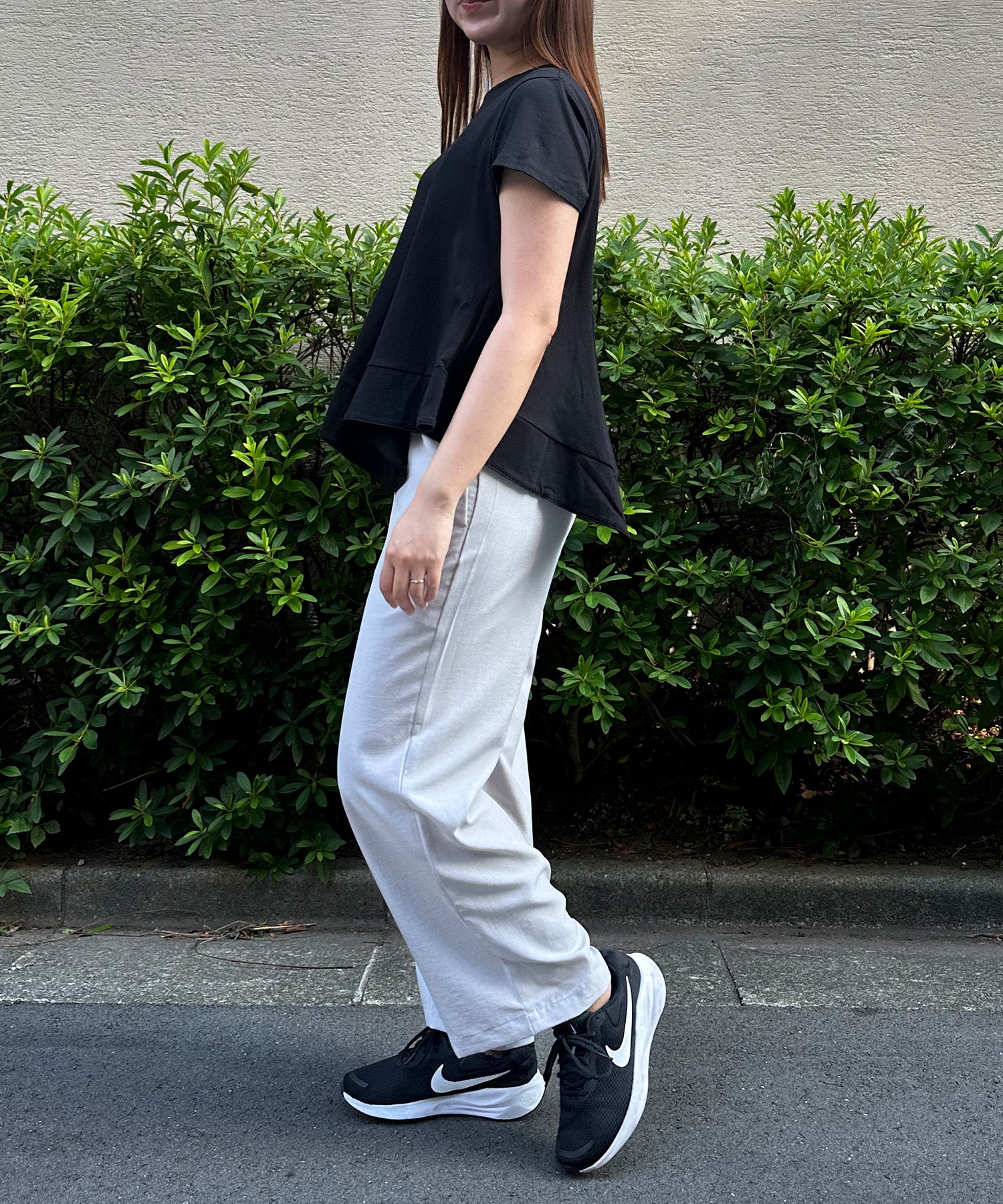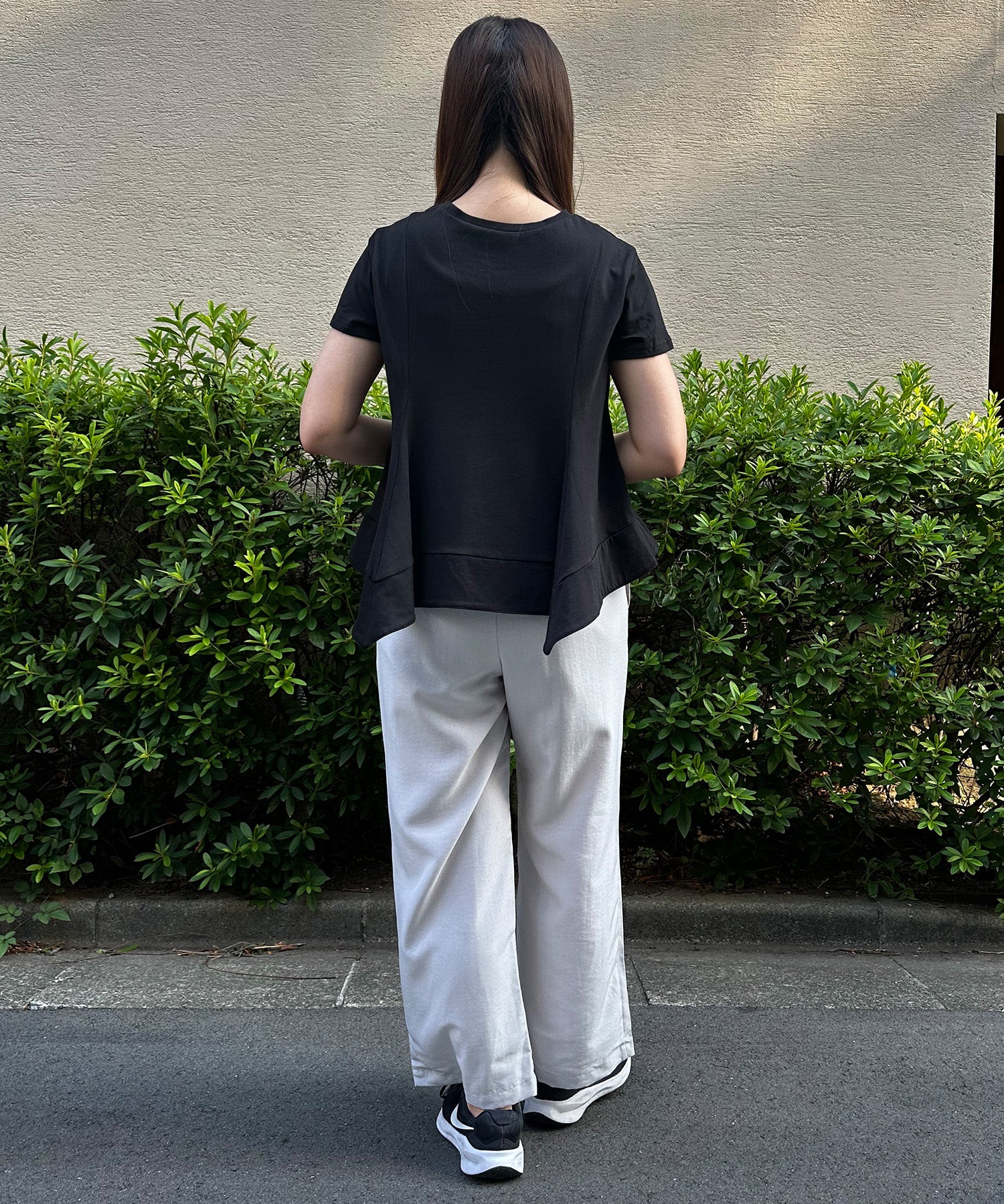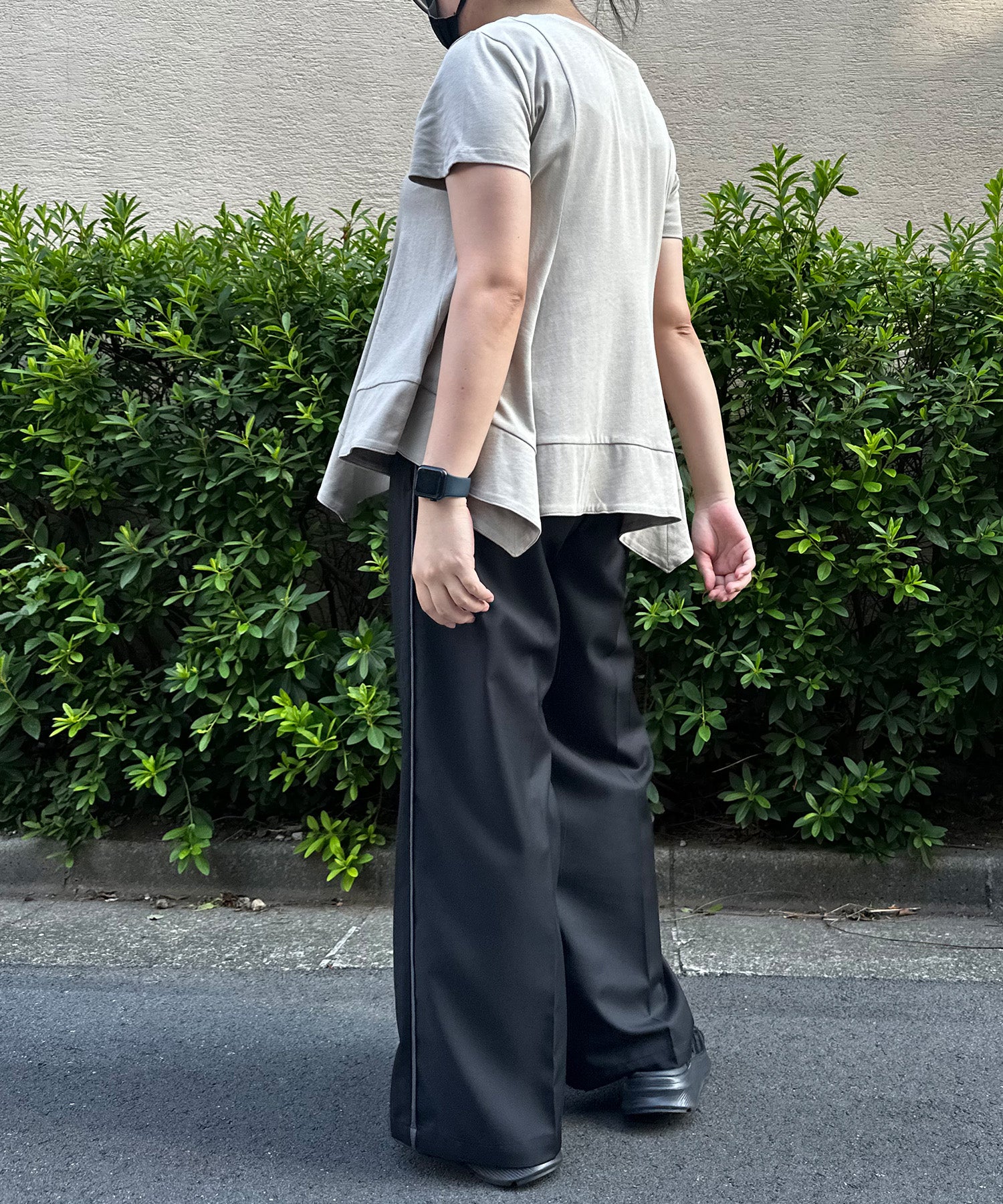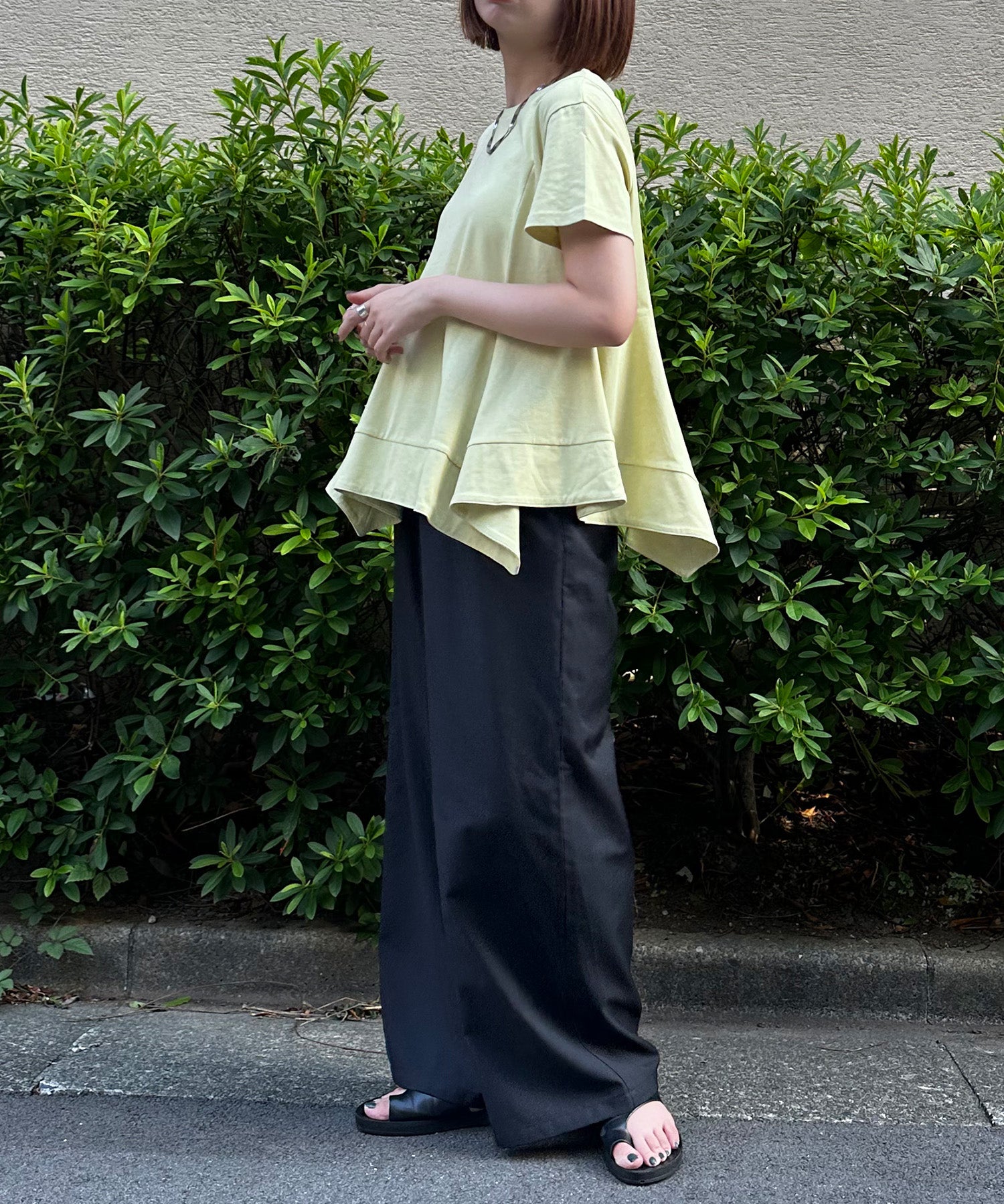 デザインへムで動きをつけた、シンプルなのに印象的な夏のカットソー。