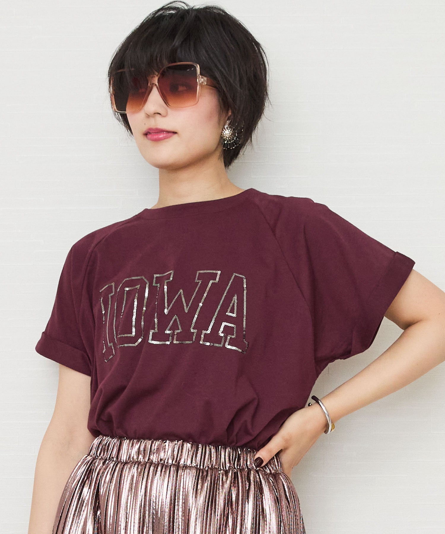きらりと輝くスパンコールがコーデのアクセントになるロゴTシャツ。