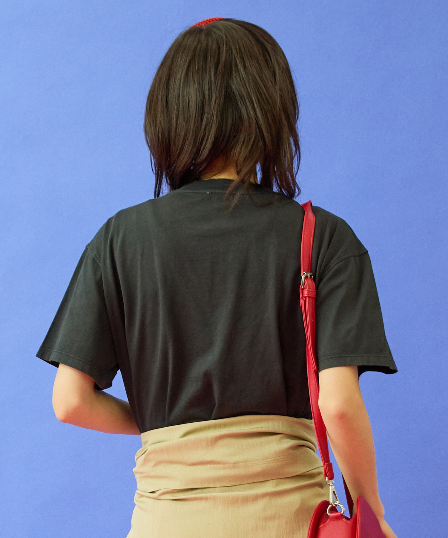 ハートモチーフのプリントが目を引く、程よく力の抜けたTシャツ。