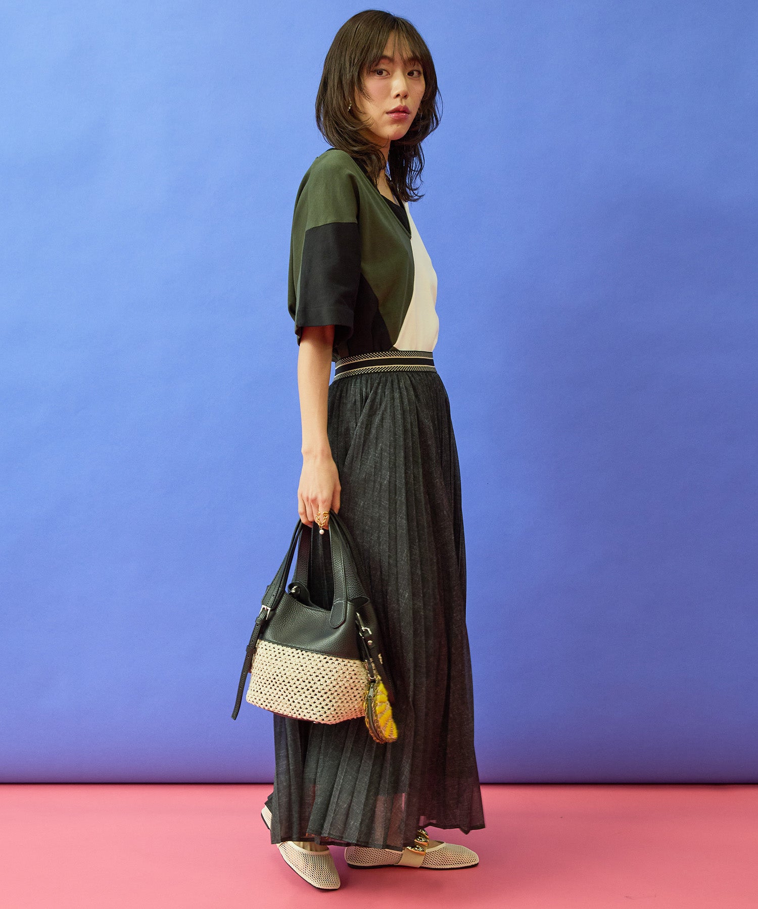 ボトムは無地でまとめると、配色デザインがより引き立ちます。