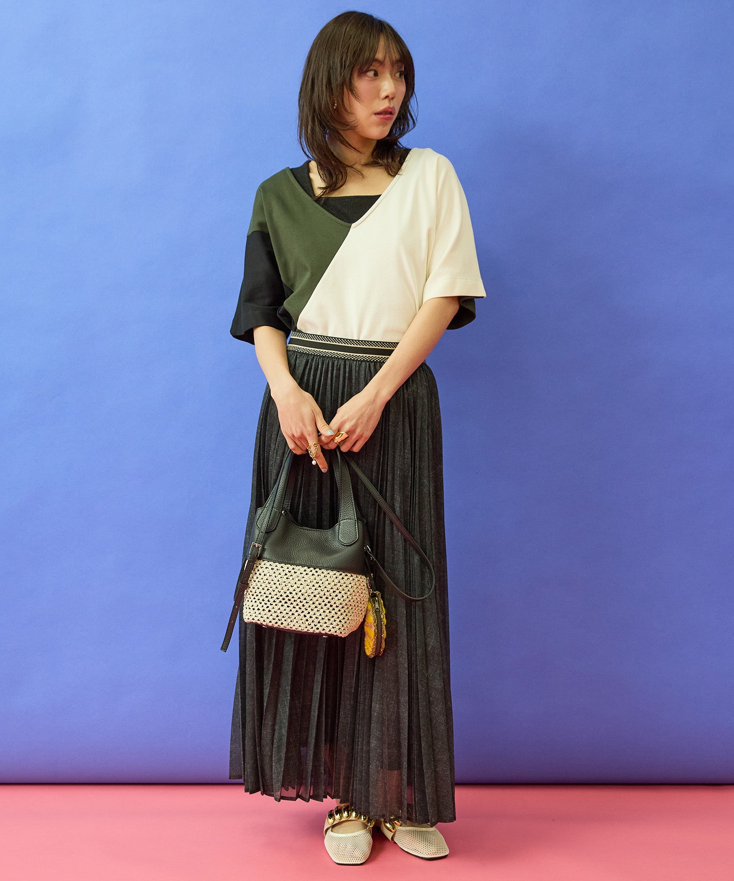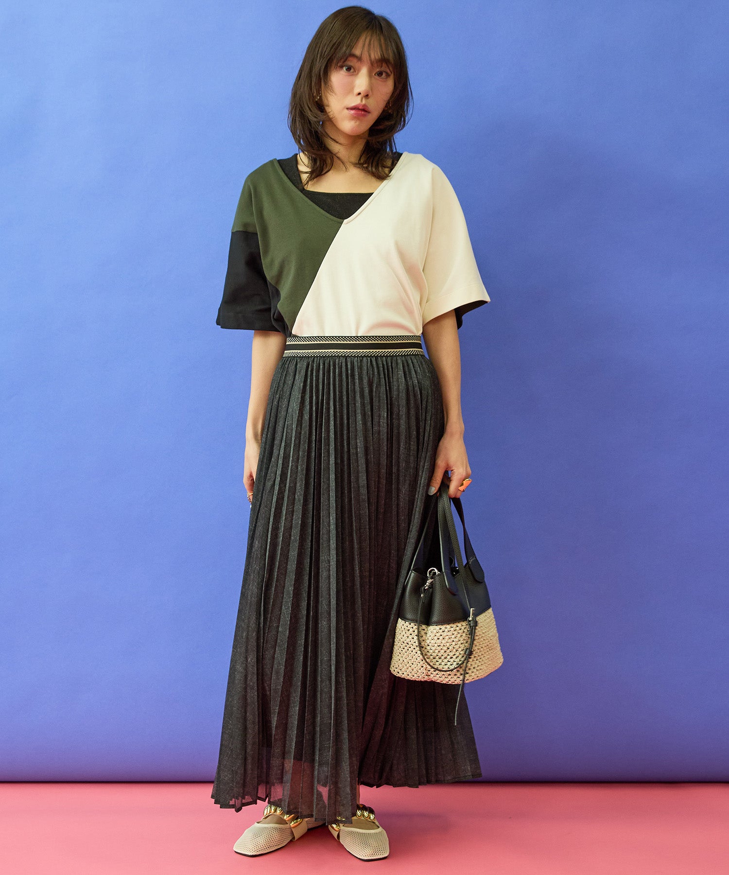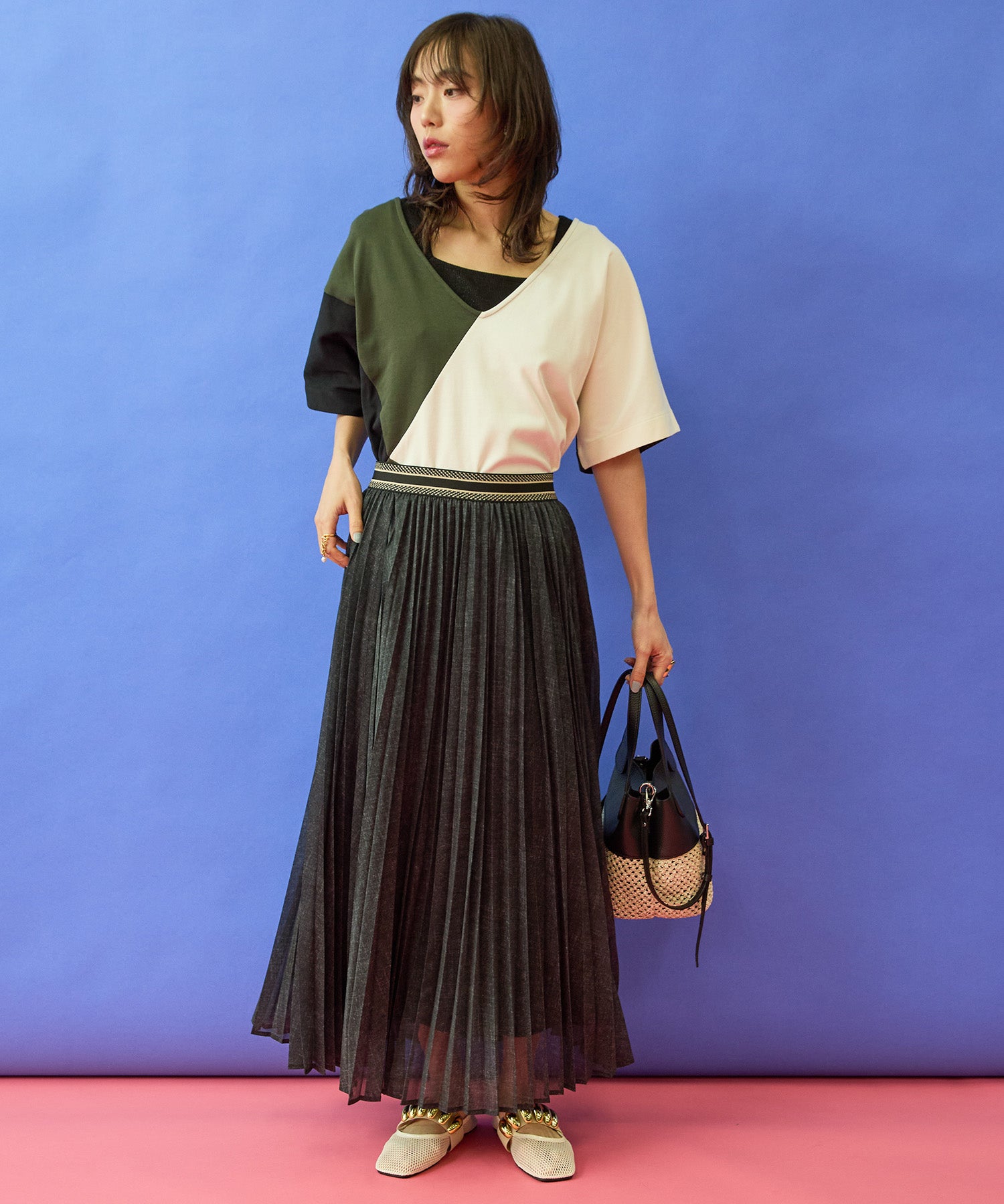 #カラーブロック #VネックTシャツ #大人Tシャツ #きれいめカジュアル #大人コーデ #春夏コーデ #JETSETSOLOPLUS
