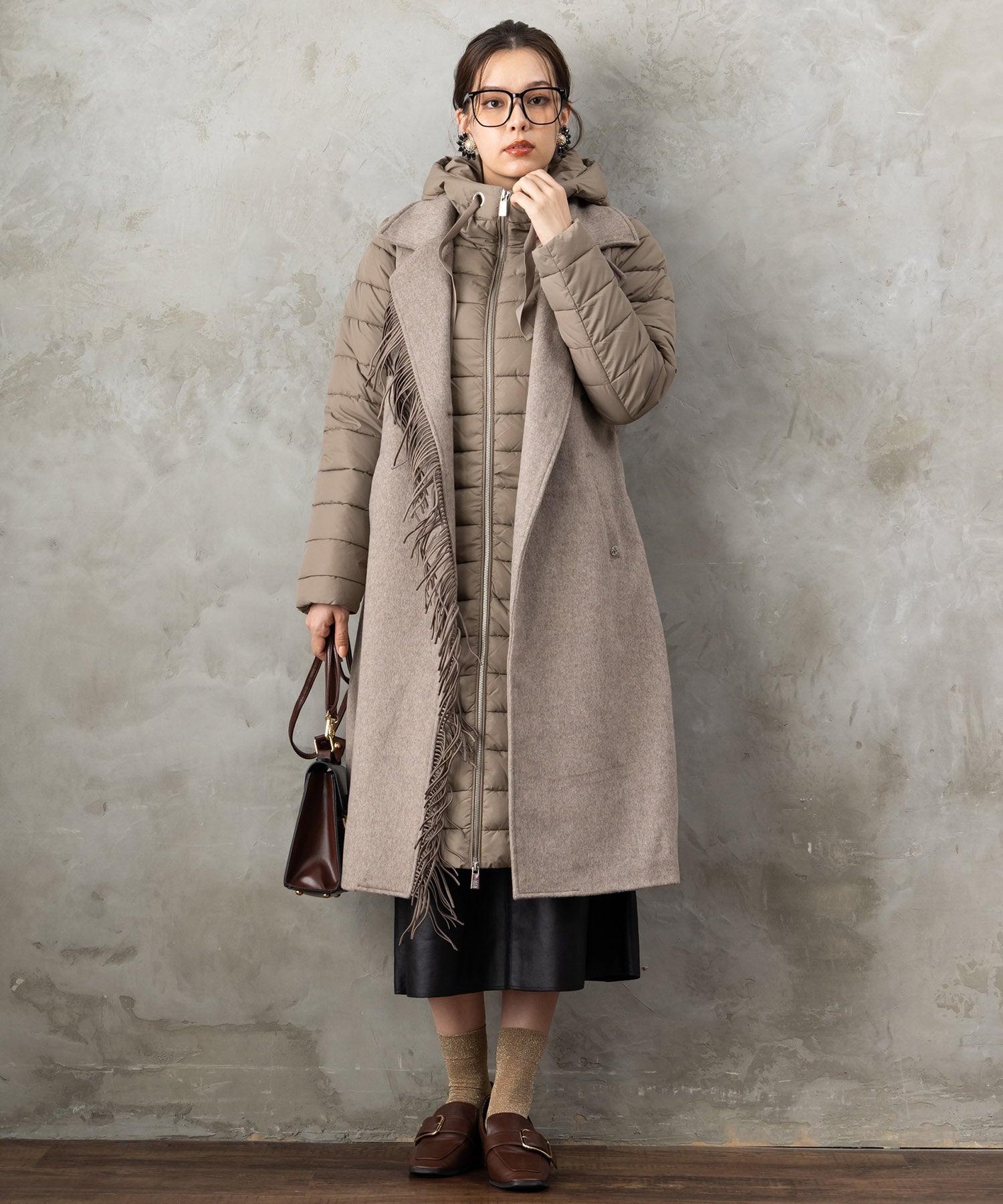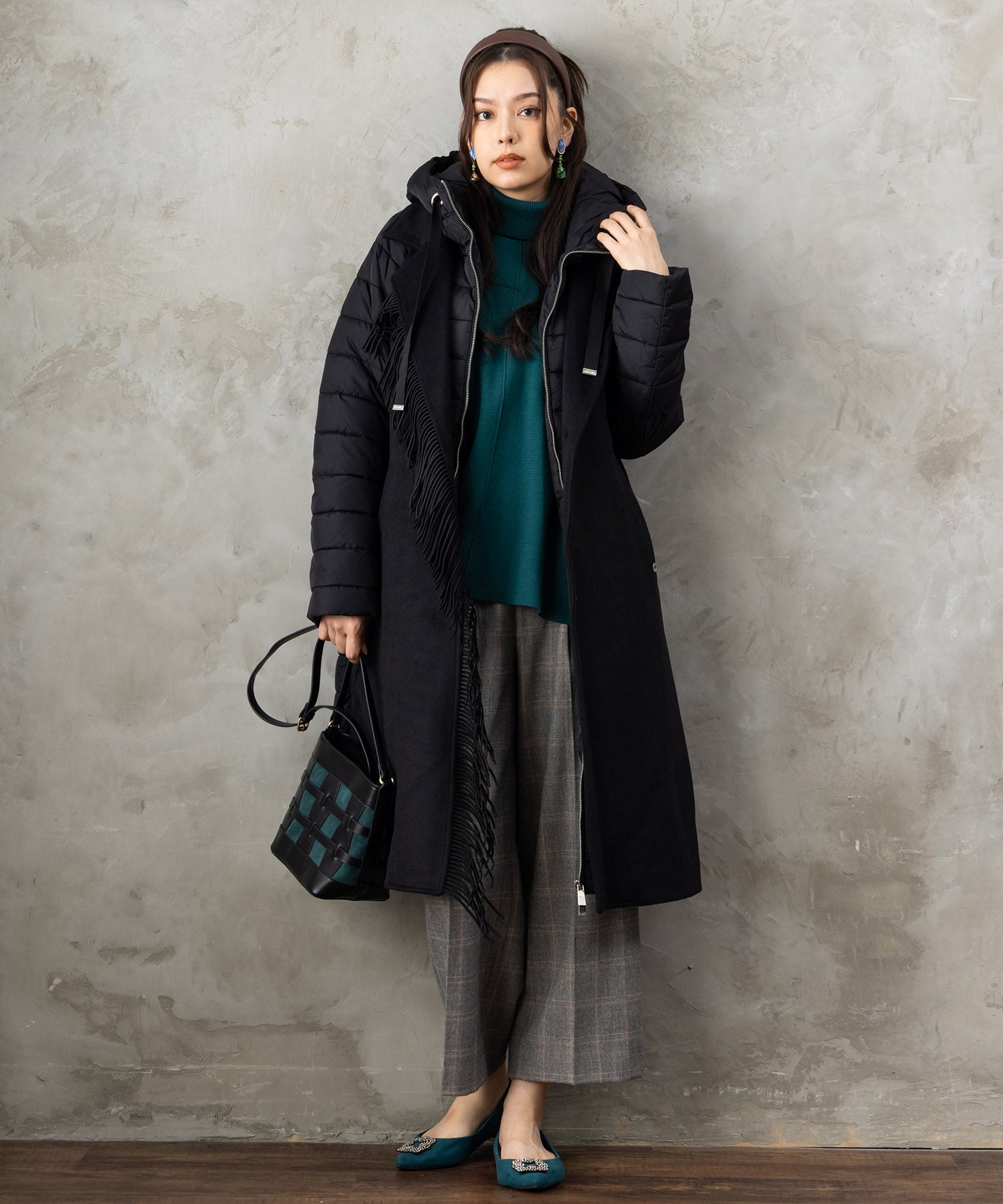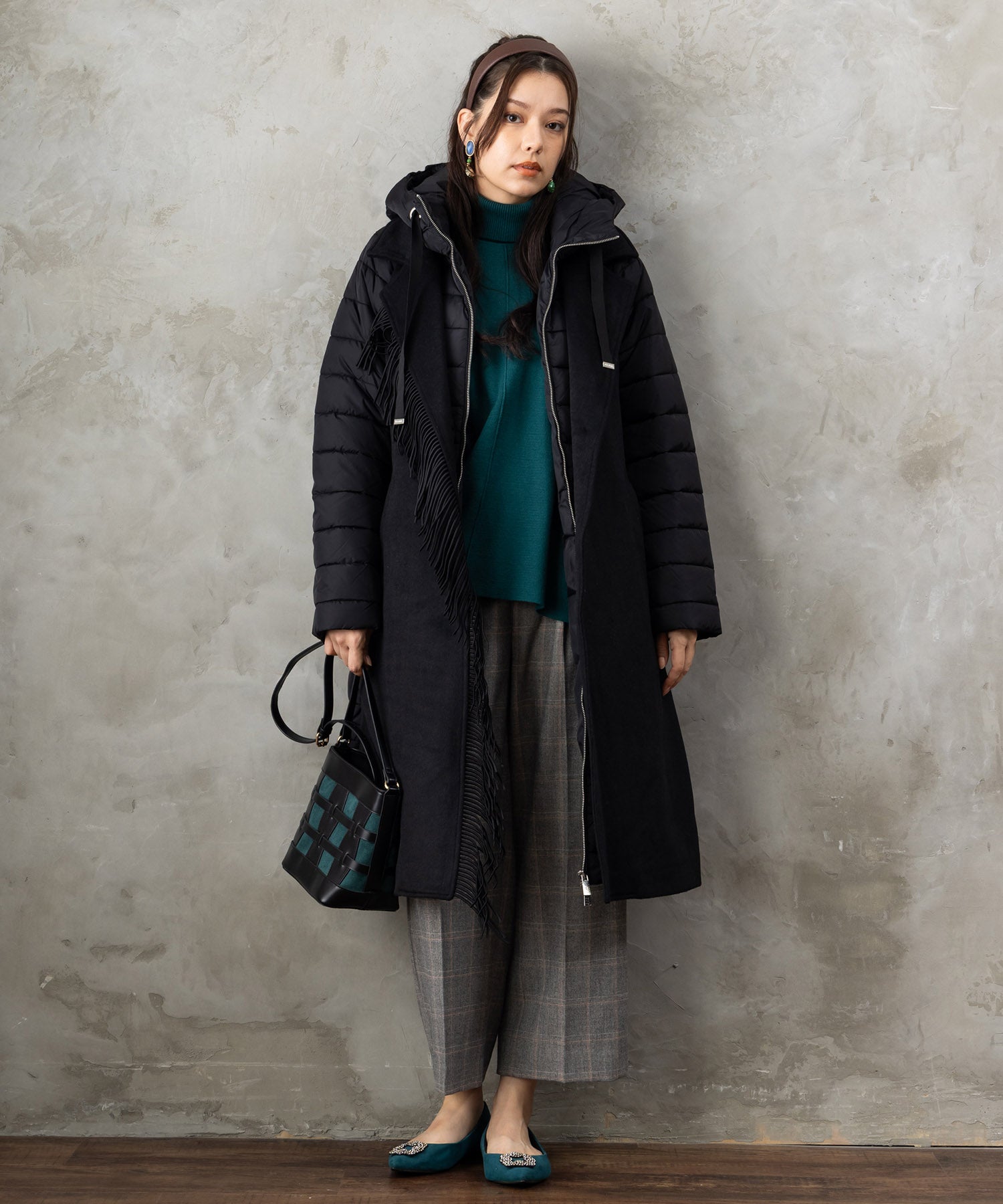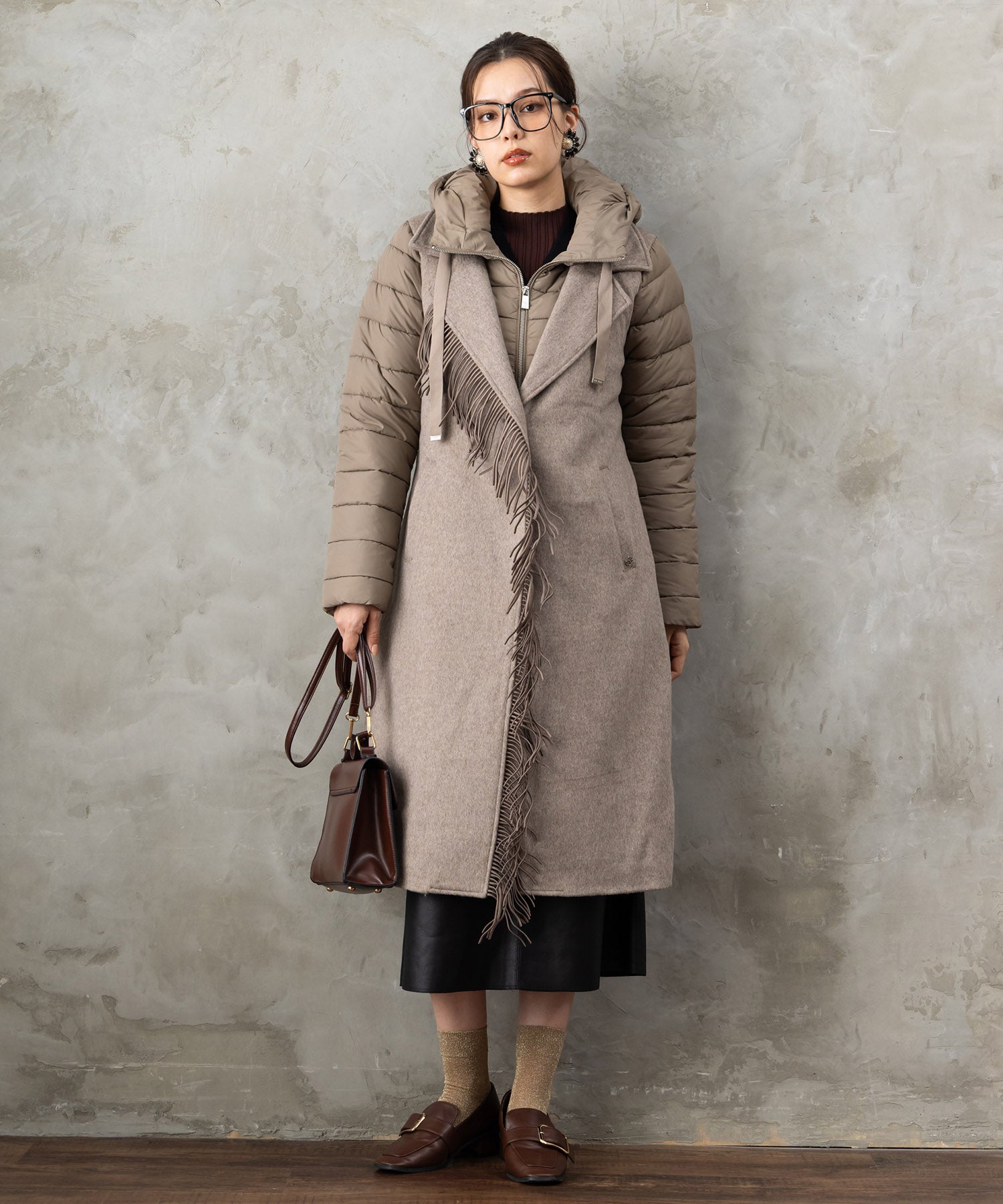 【ドラマティックに纏う、フリンジ×異素材ロングコート】