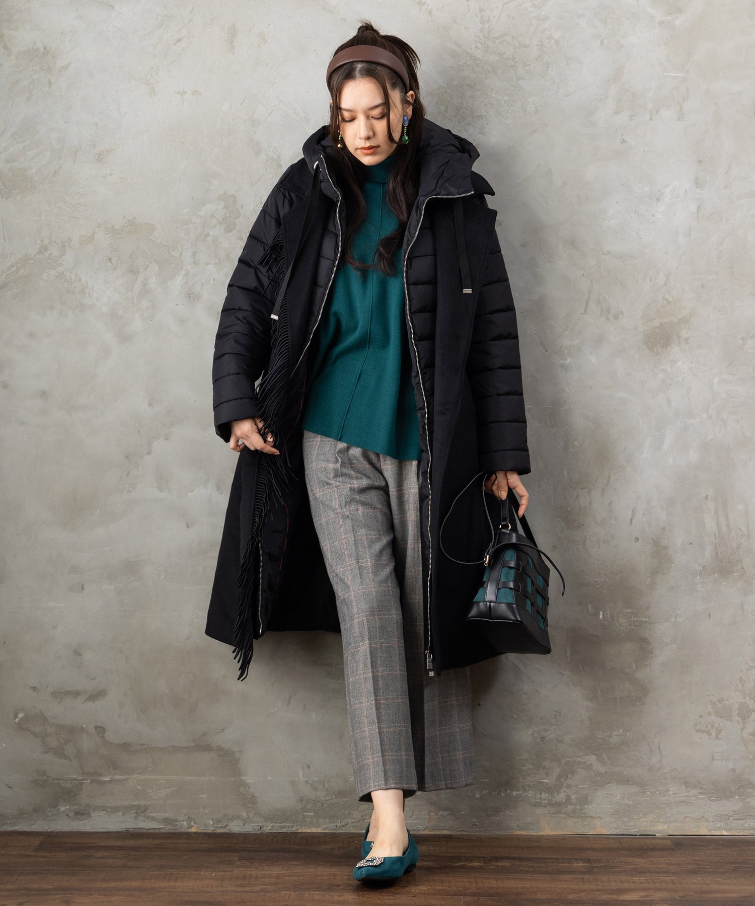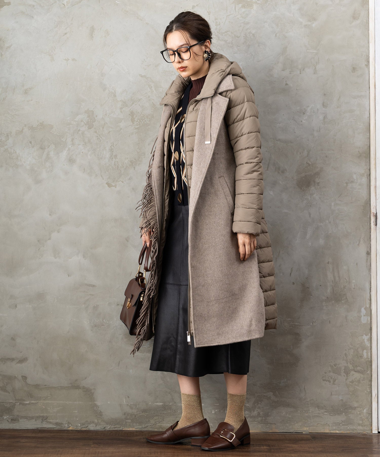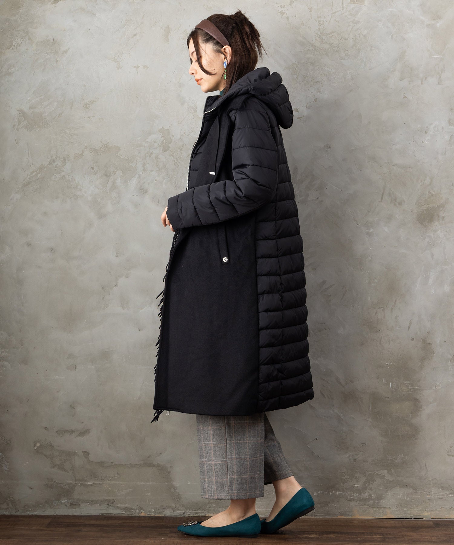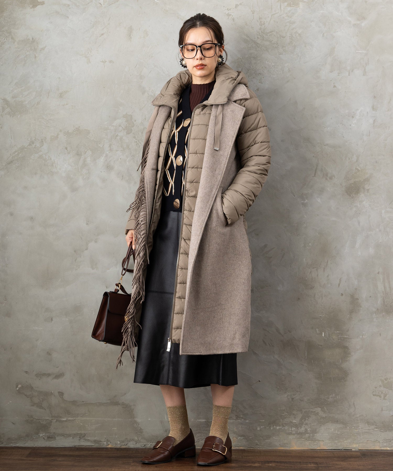 【ドラマティックに纏う、フリンジ×異素材ロングコート】