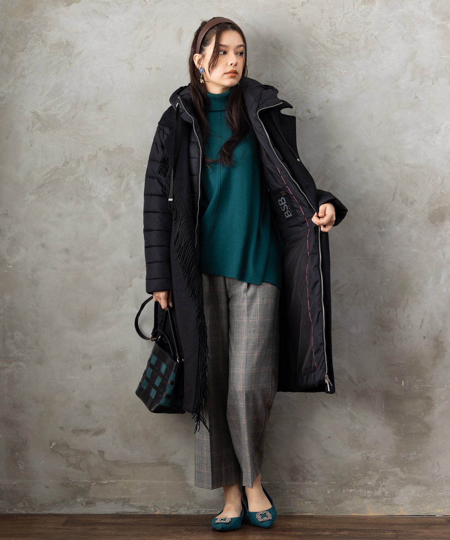 #ロングコート #フリンジコート #異素材コート #大人カジュアル #フード付きコート #秋冬アウター#JETSETSOLOPLUS