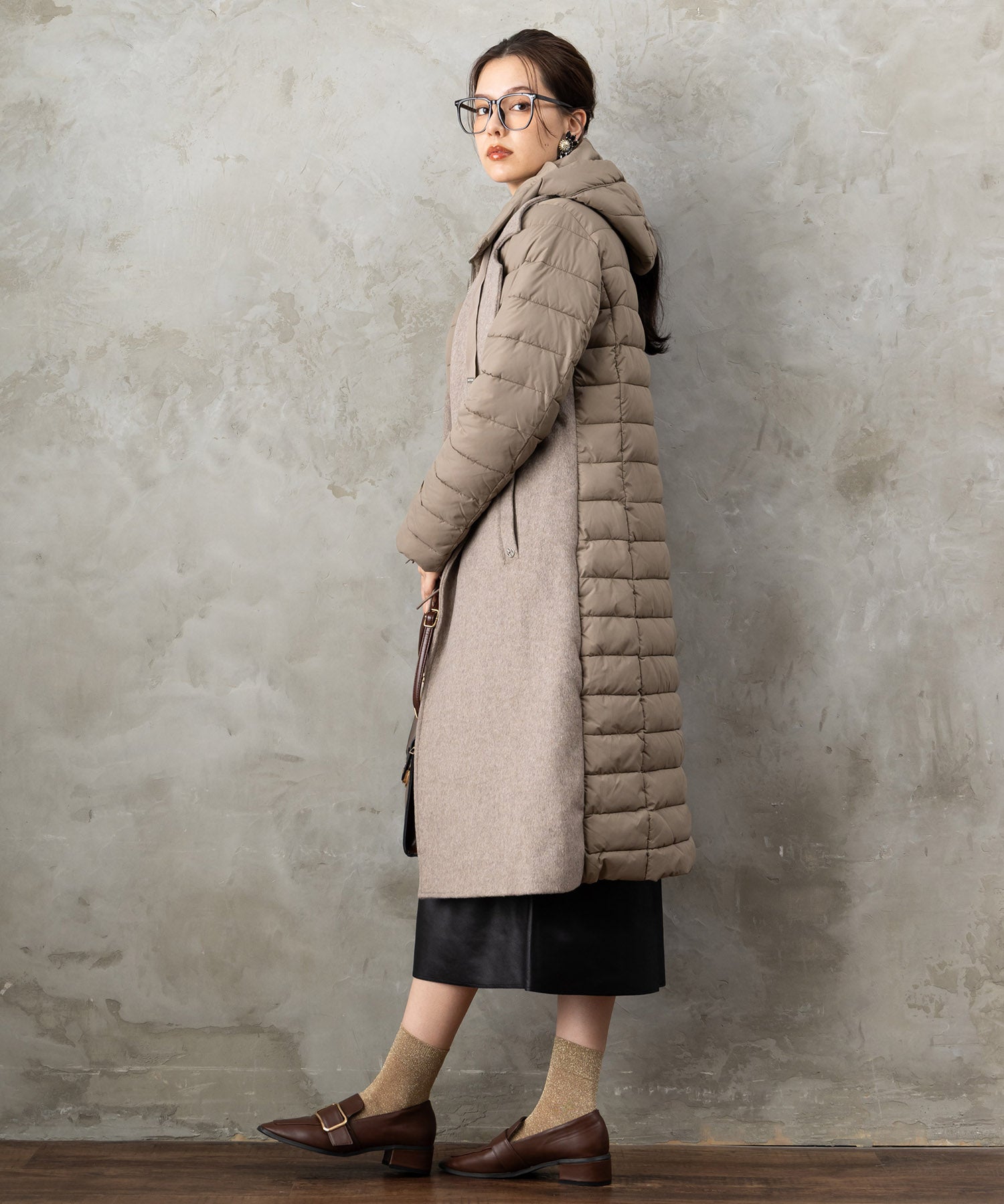 フード付きのスポーティさと、ロング丈のエレガントさが絶妙に調和。