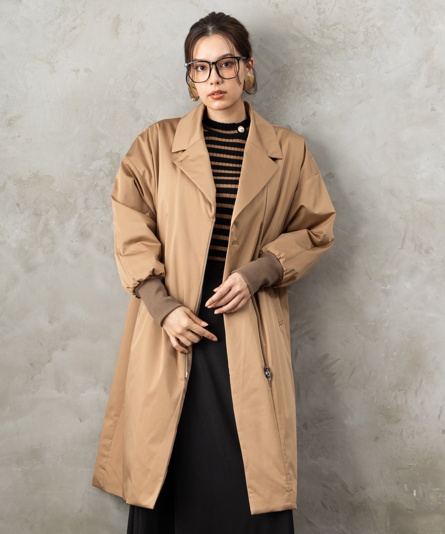すっきりとしたシルエットにラグランスリーブを取り入れ、動きやすさとリラックス感を兼ね備えたロングコート。中綿仕様でしっかり防寒しながらも軽やかな着心地を実現。シンプルながらもモード感漂うデザインで、大人の冬スタイルをスマートに仕上げます。