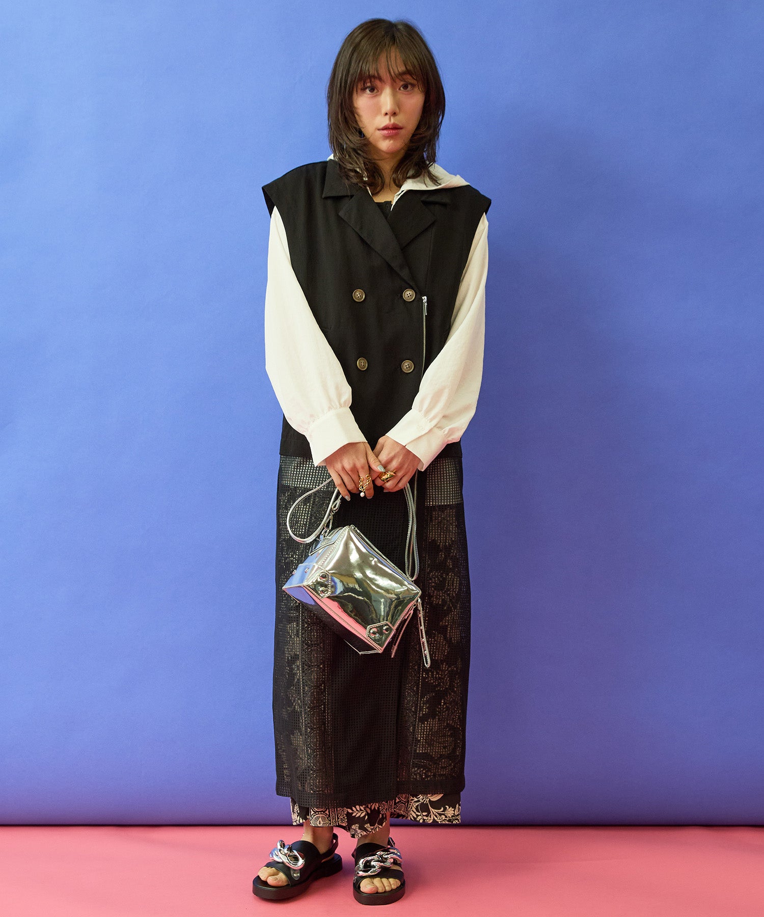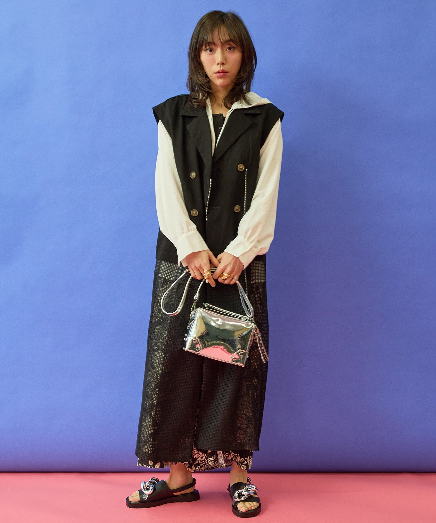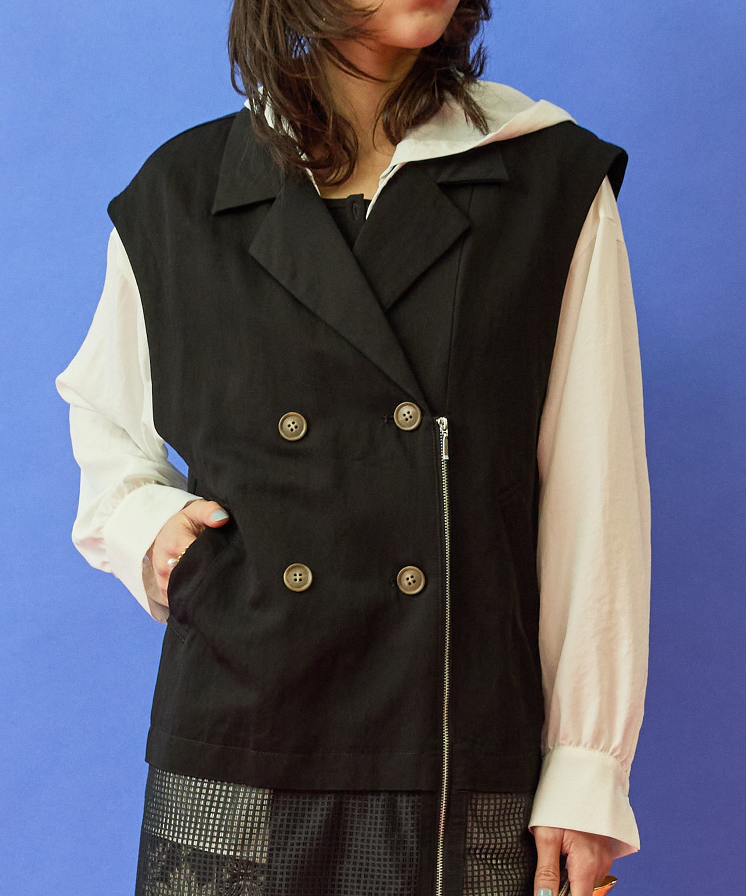 ワンピースの上に羽織れば、縦ラインが際立つ上品な着こなしに仕上がります。