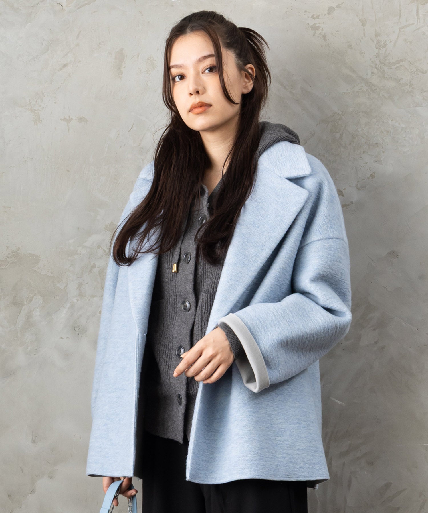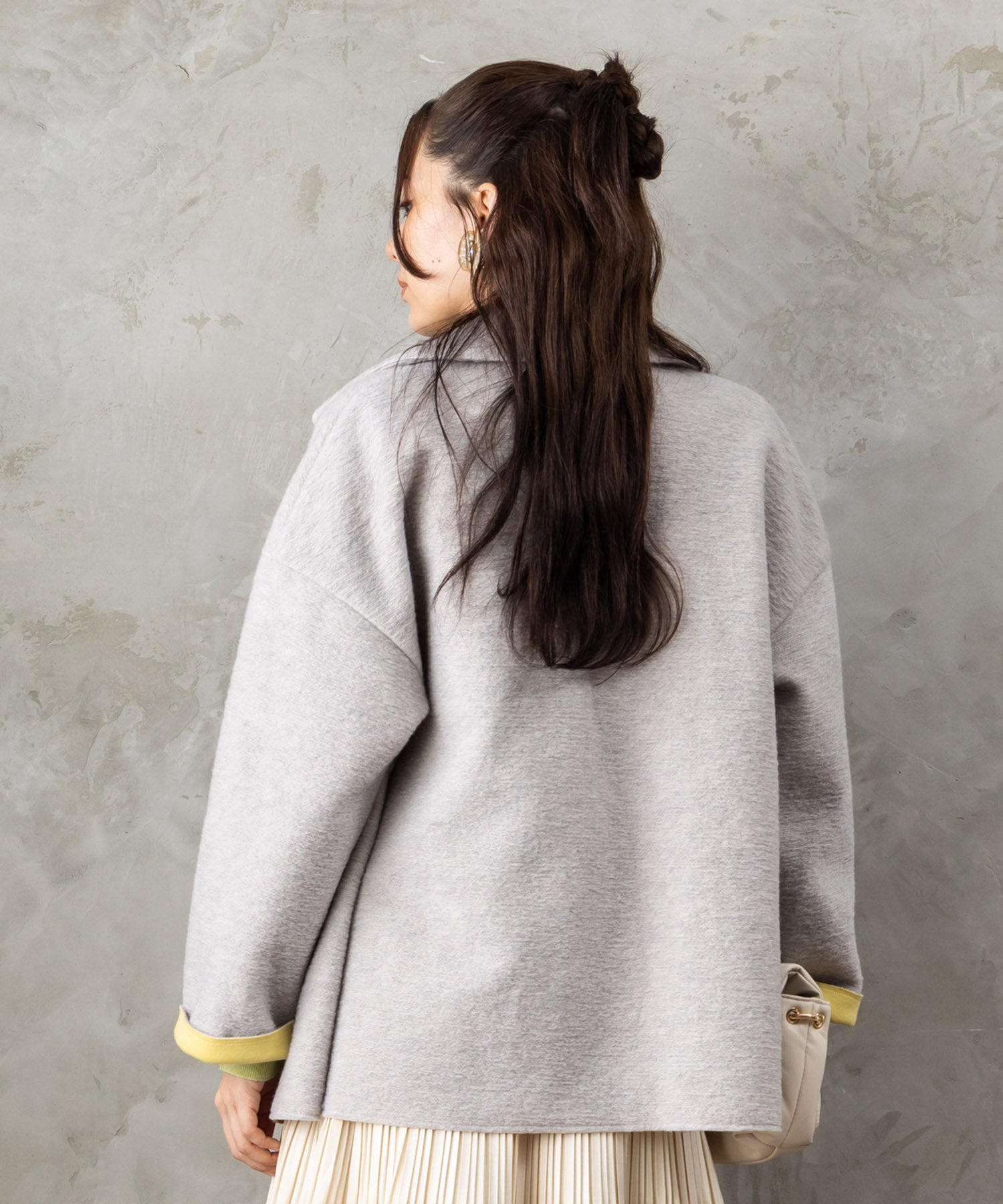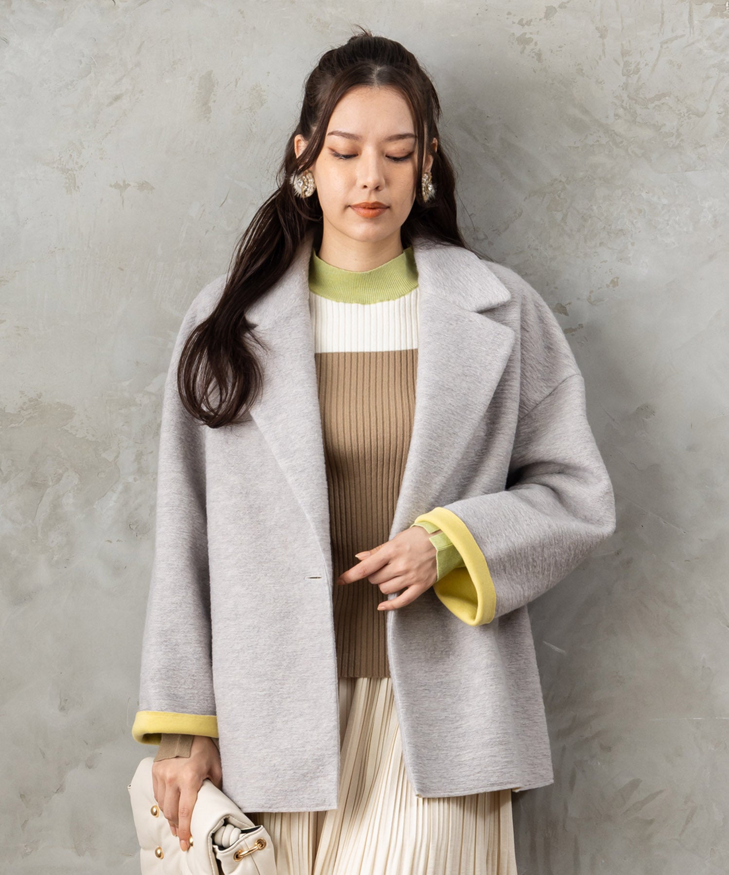 【洗練の配色が映える、バイカラーボンディングハーフコート】
