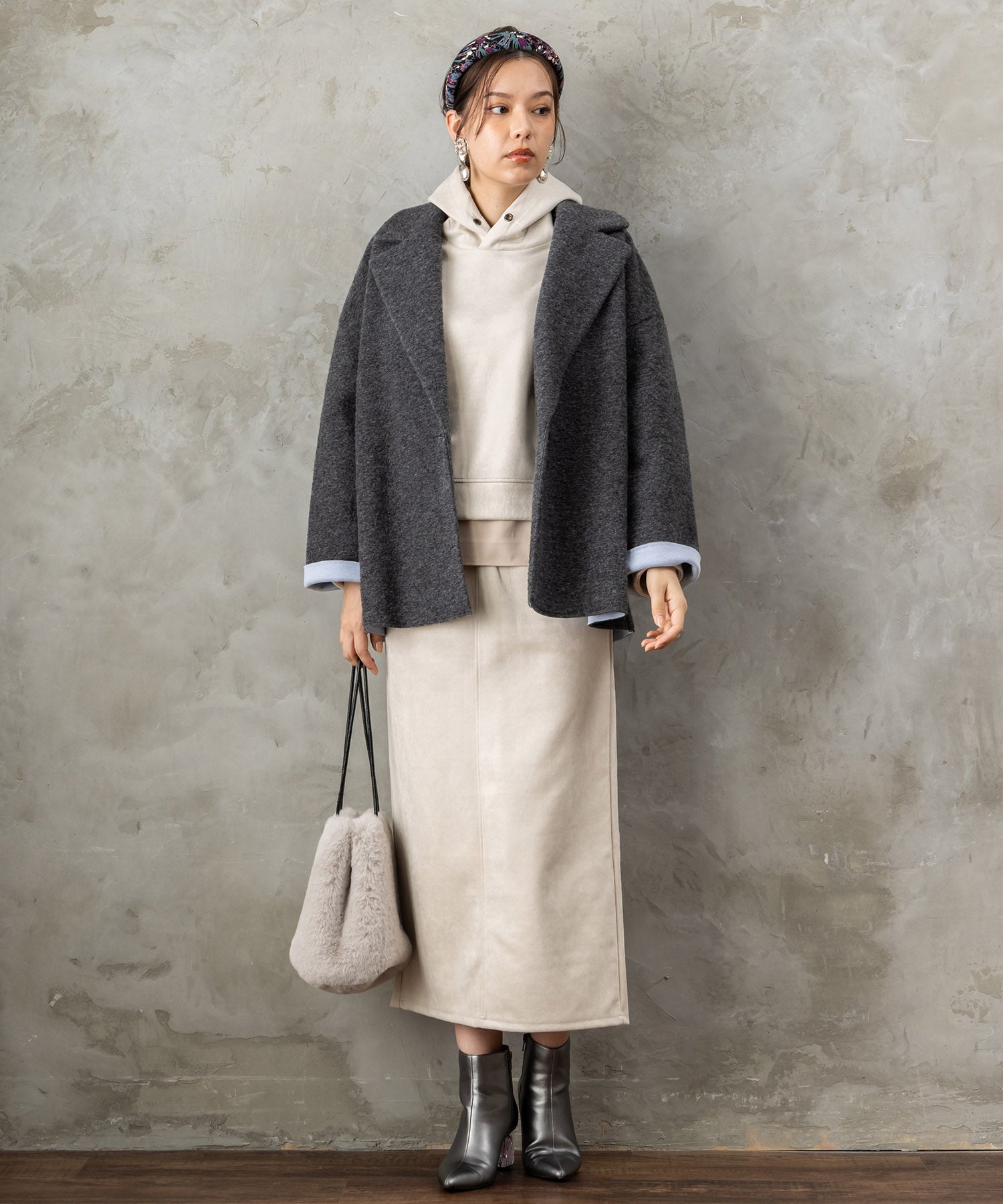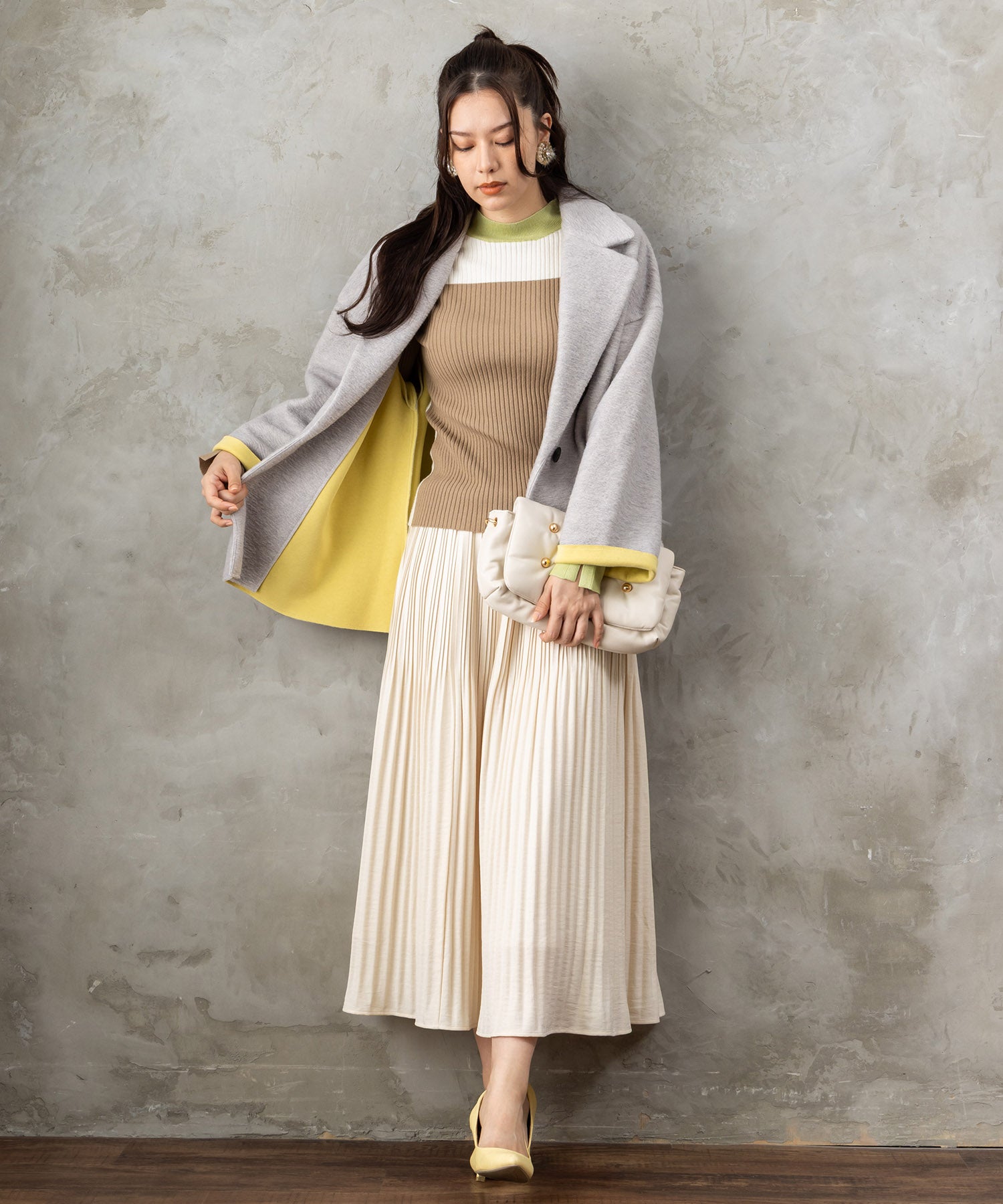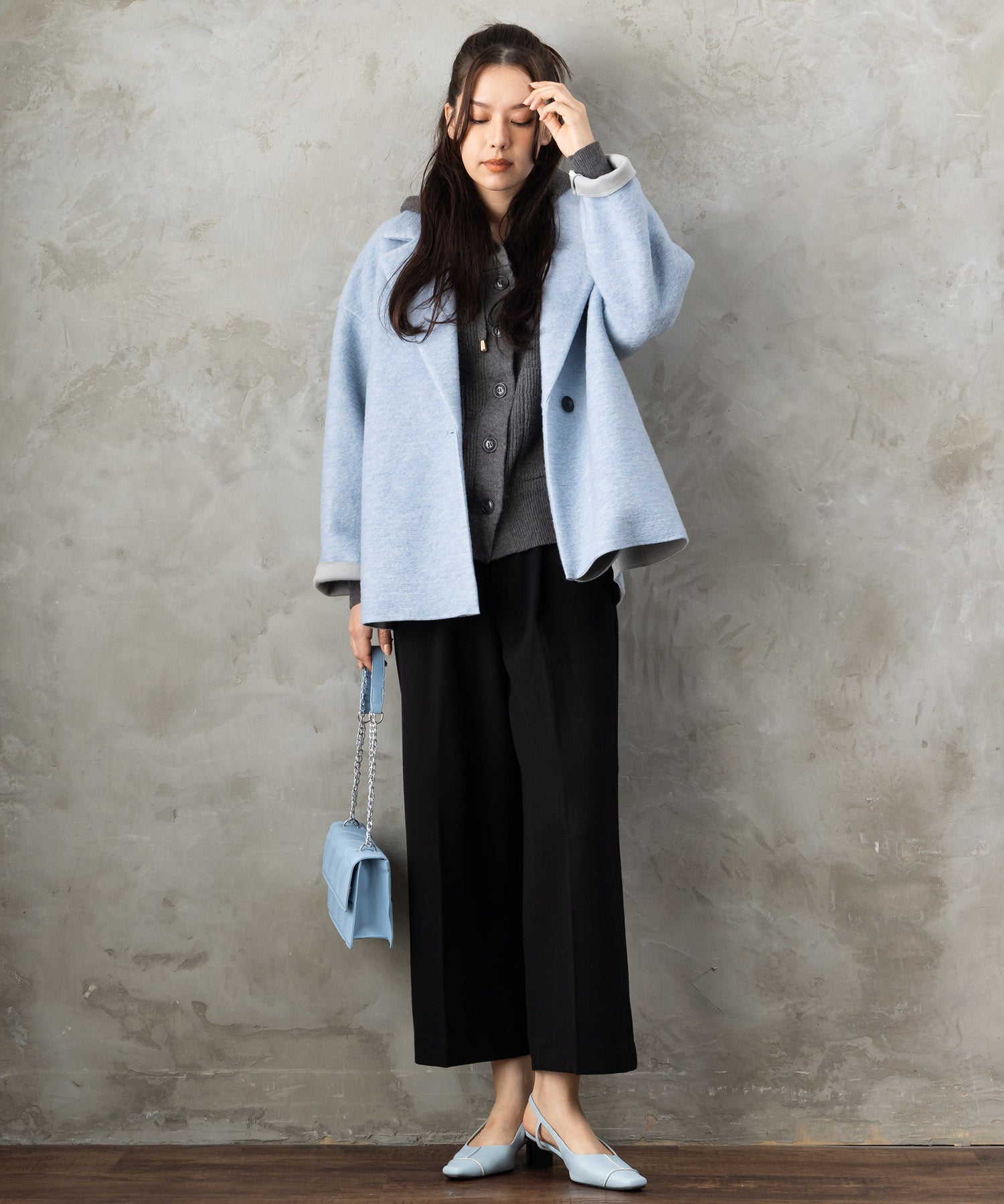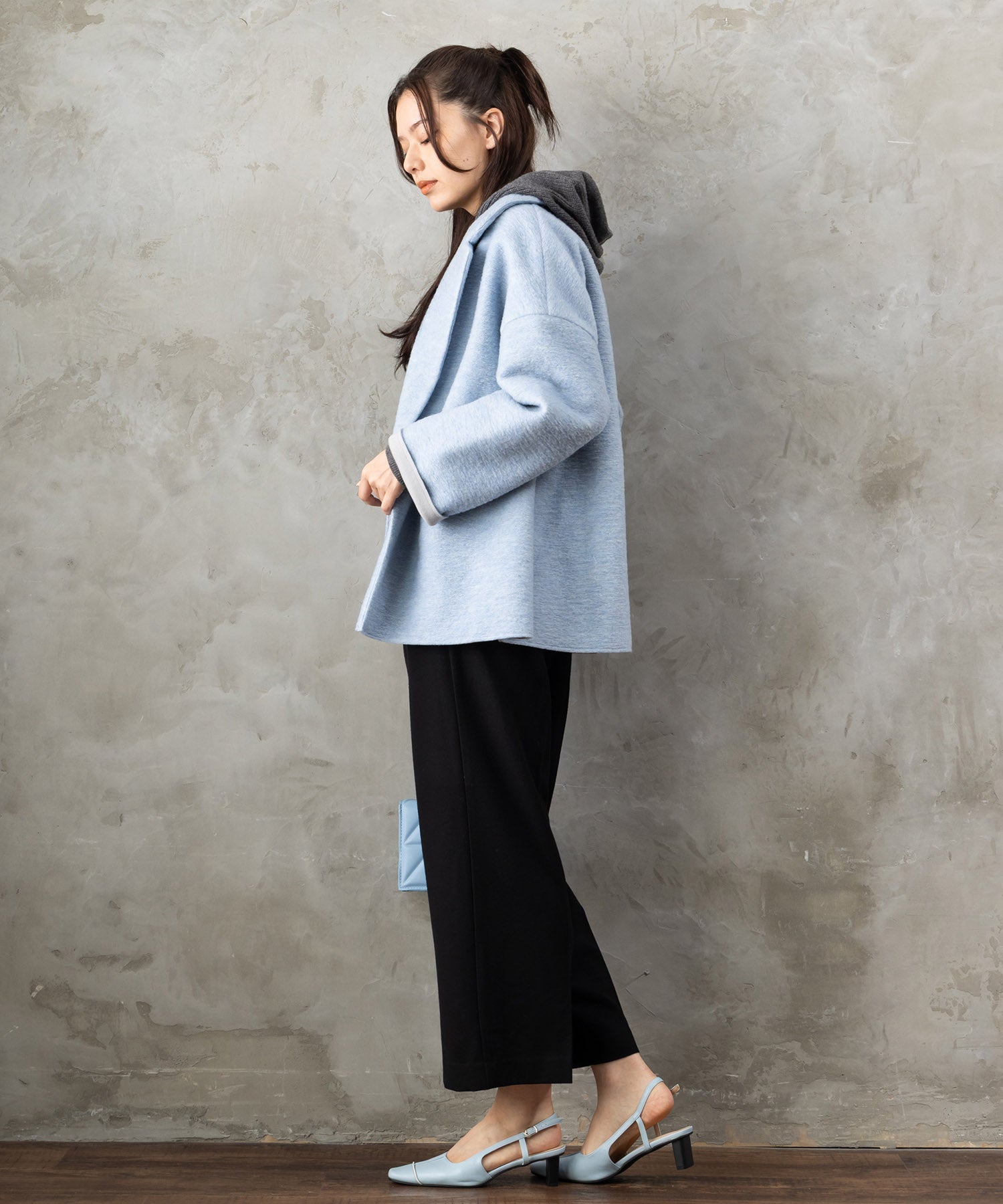 【洗練の配色が映える、バイカラーボンディングハーフコート】