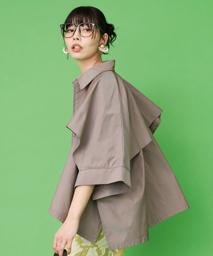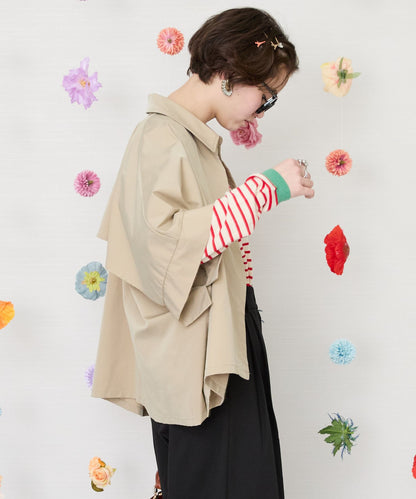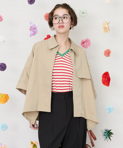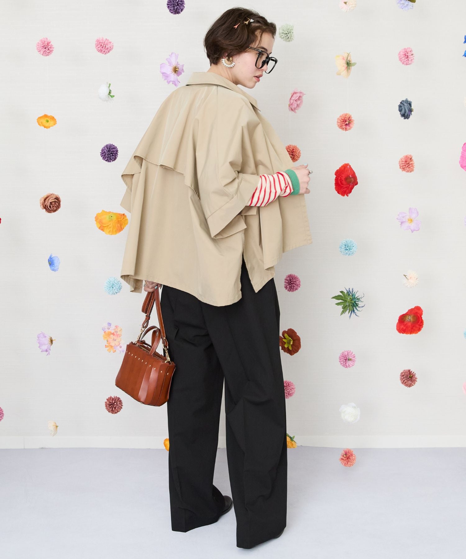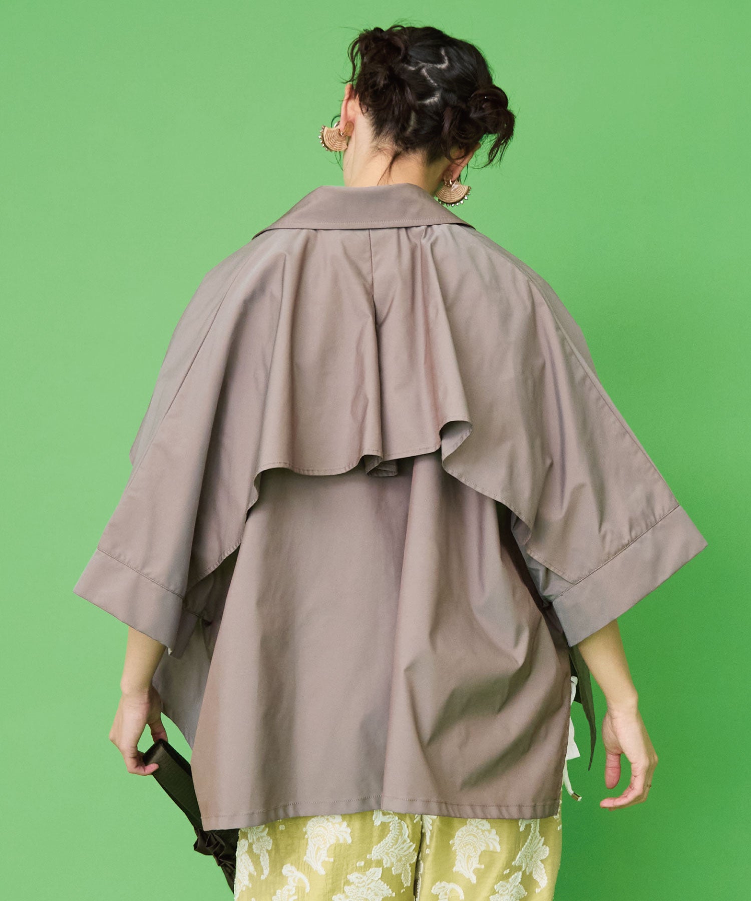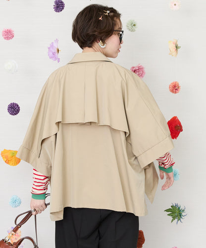 ざっくりと羽織れるステンカラーデザインのポンチョコート。