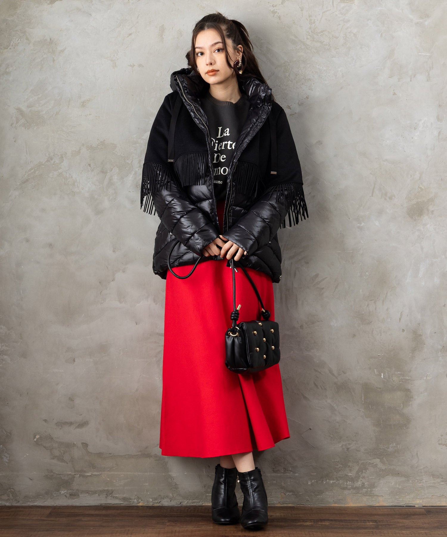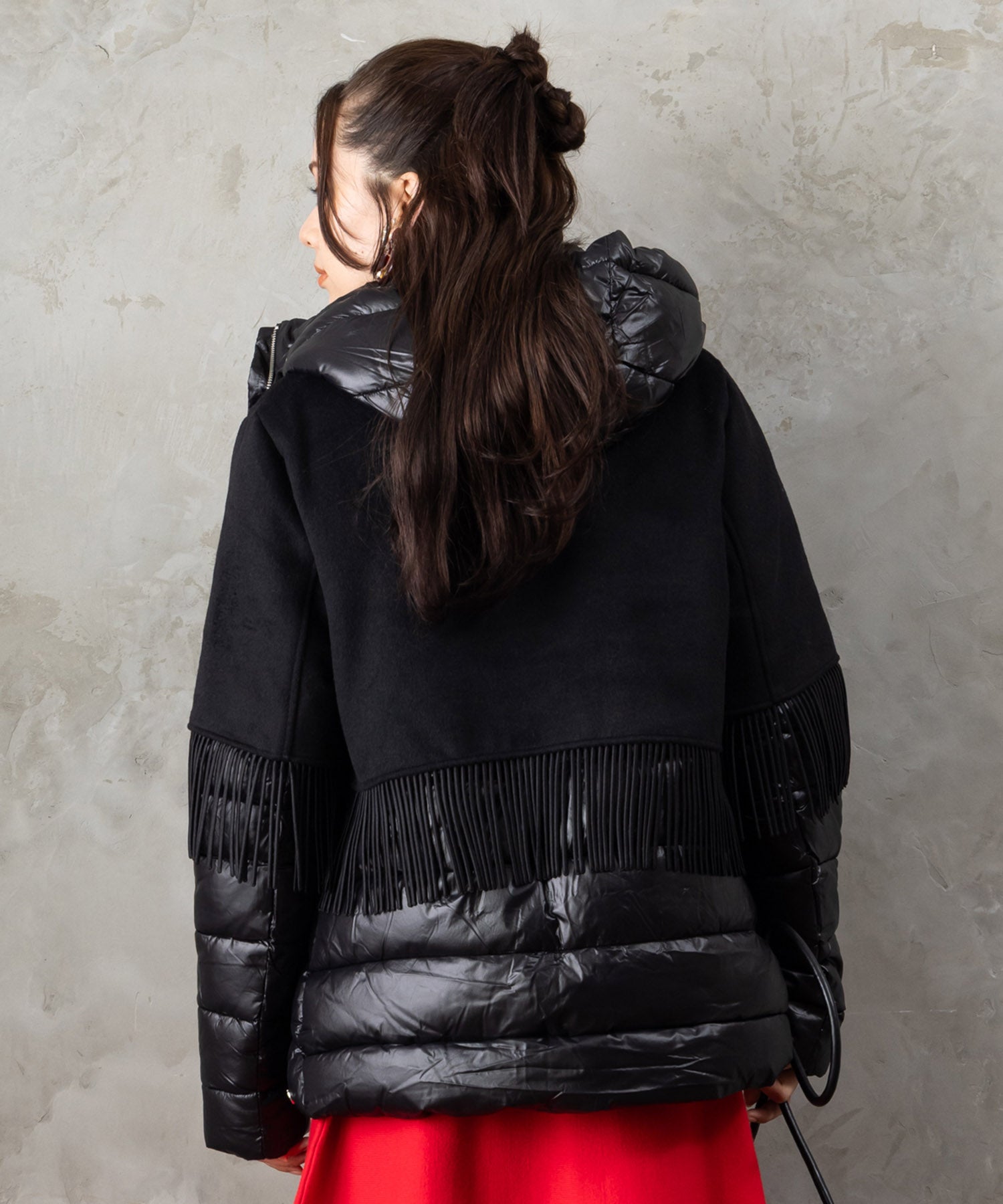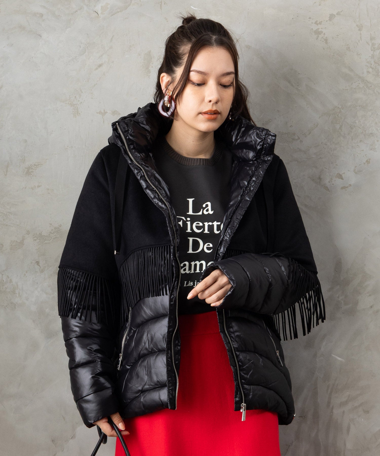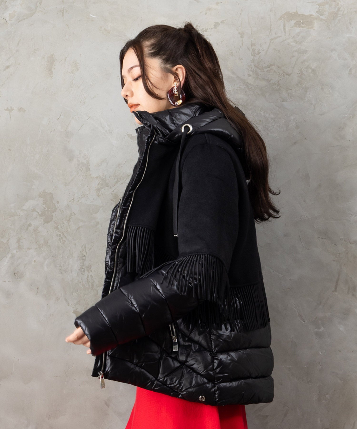 #中綿コート #異素材コート #フリンジコート #ミドル丈アウター #モードカジュアル #大人コーデ#JETSETSOLOPLUS