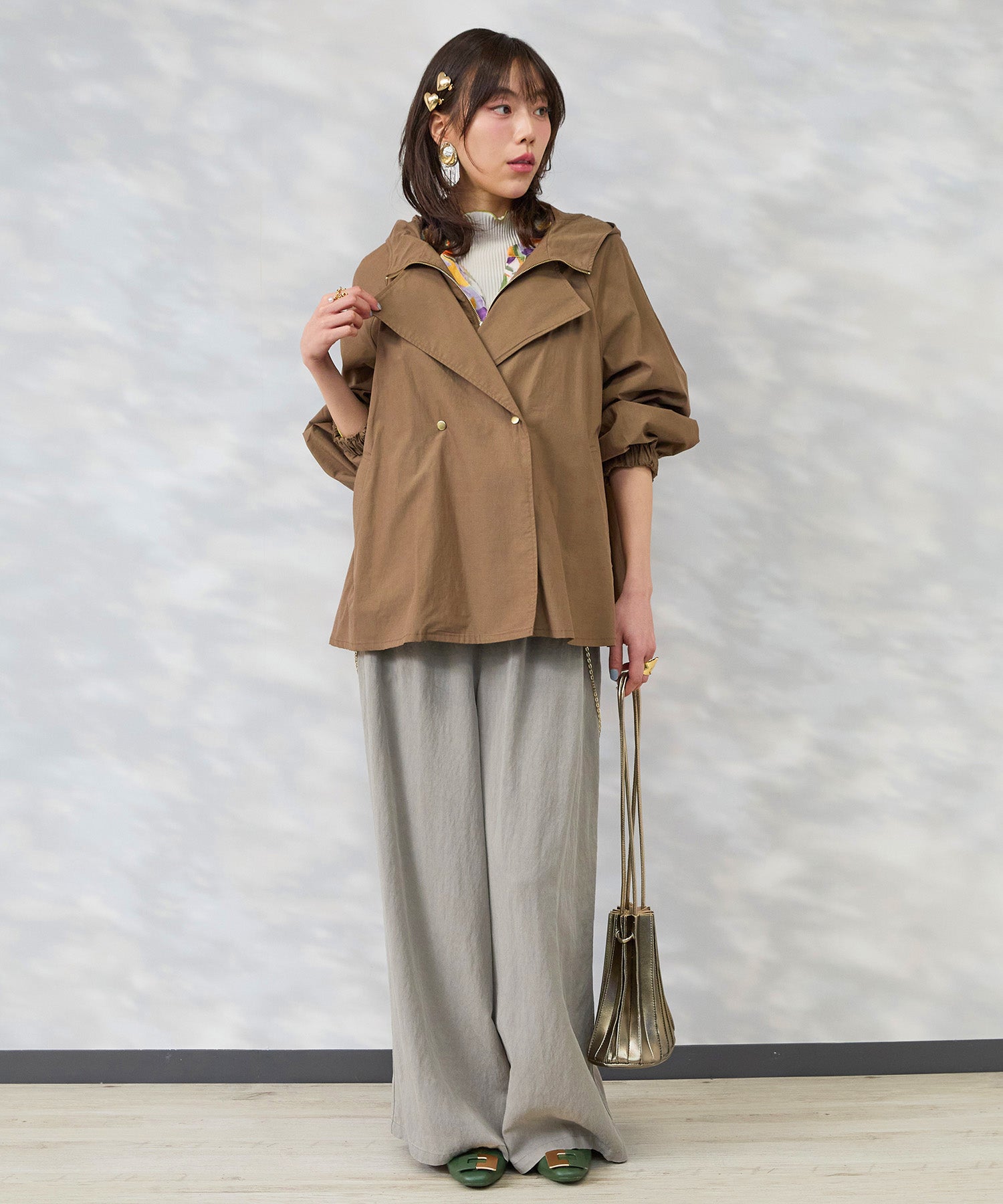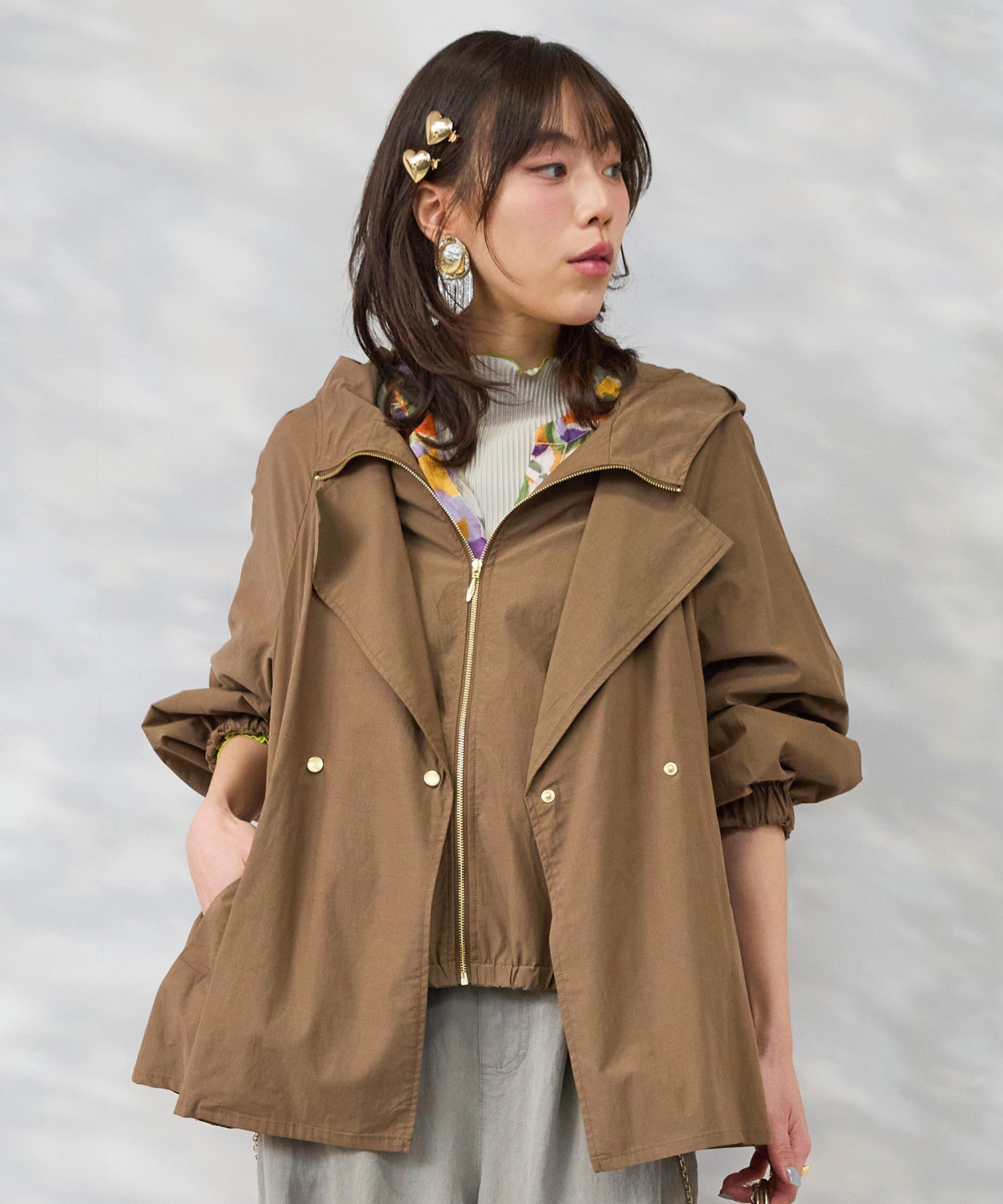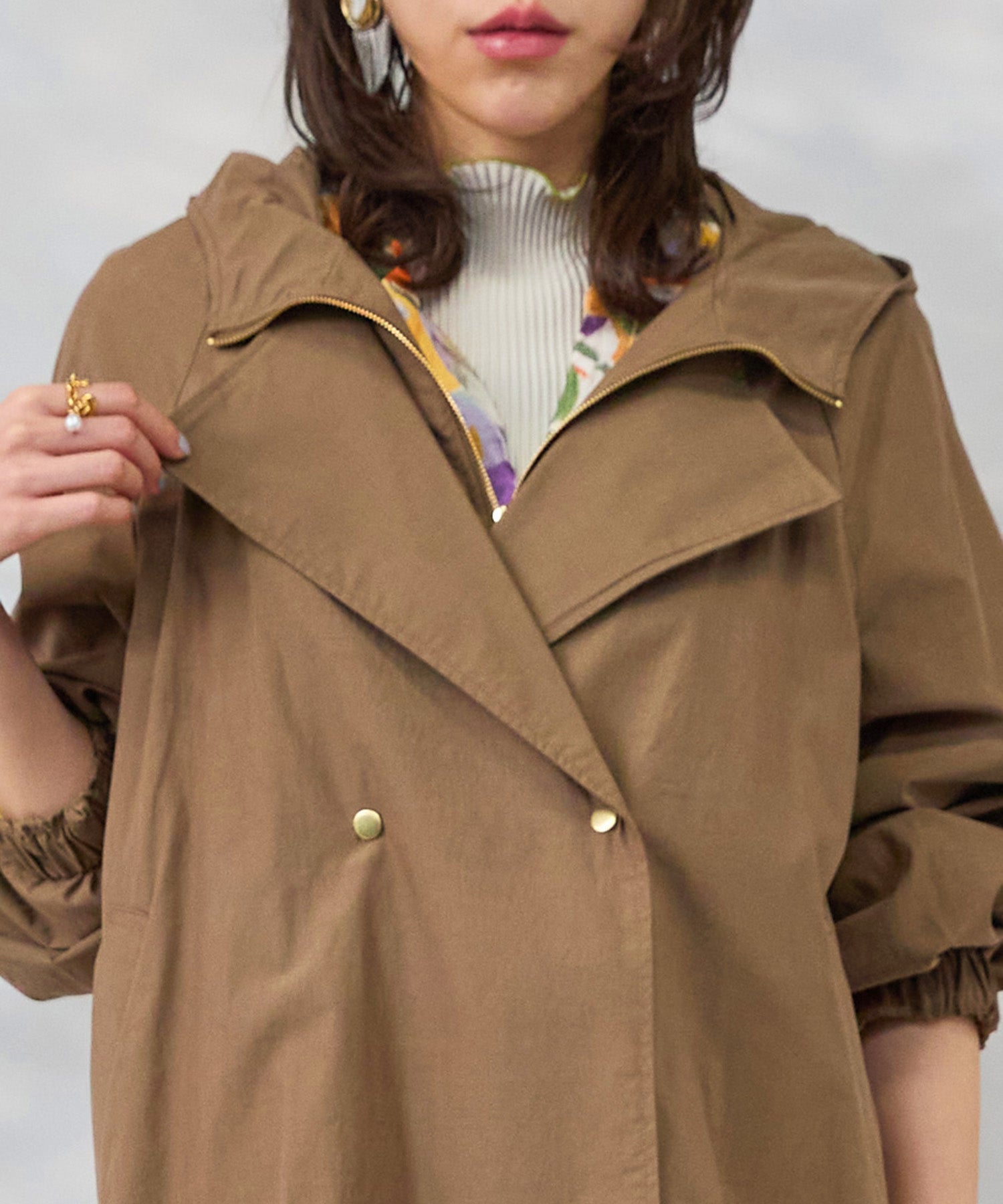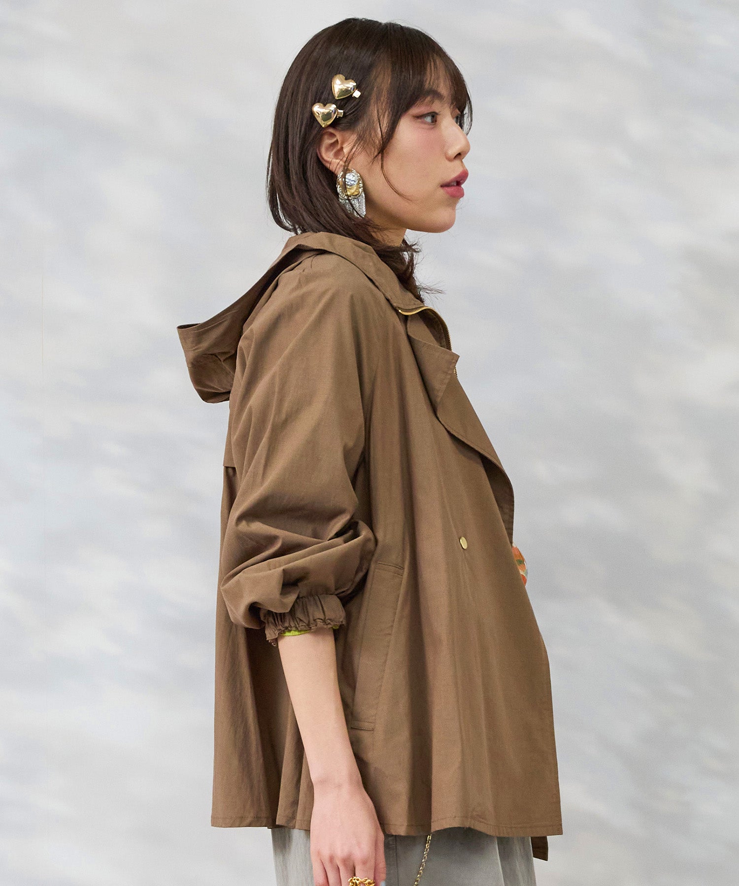 フードとテーラードの要素を重ねたような佇まいで、きれいめとカジュアルのバランスが絶妙です。
