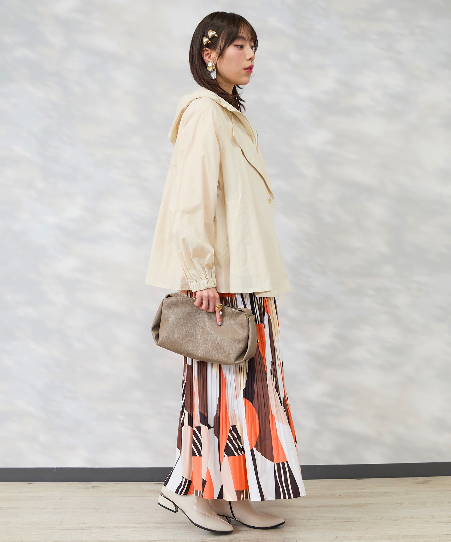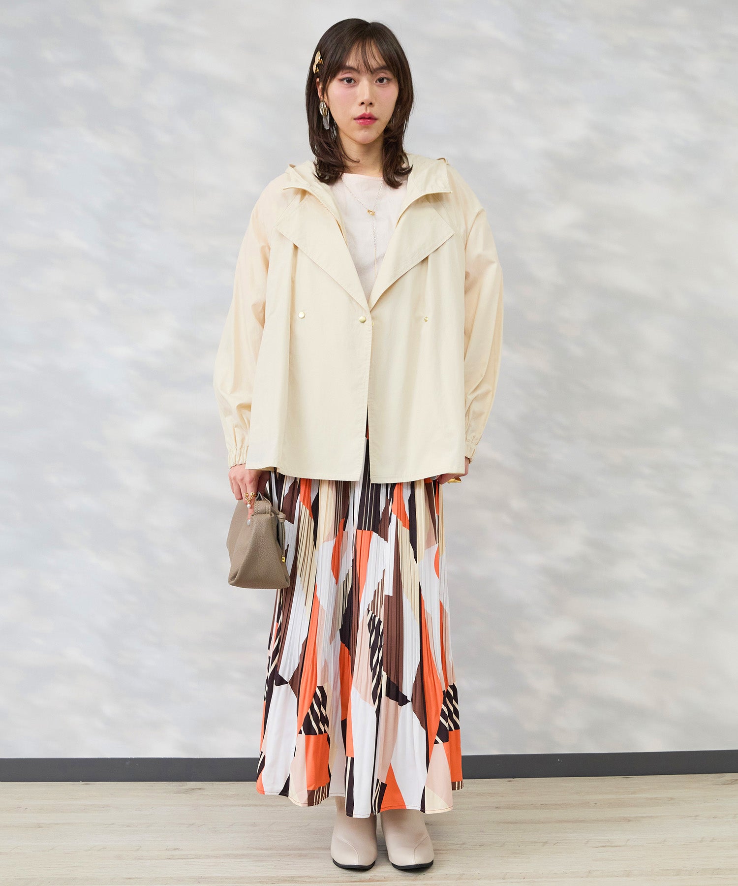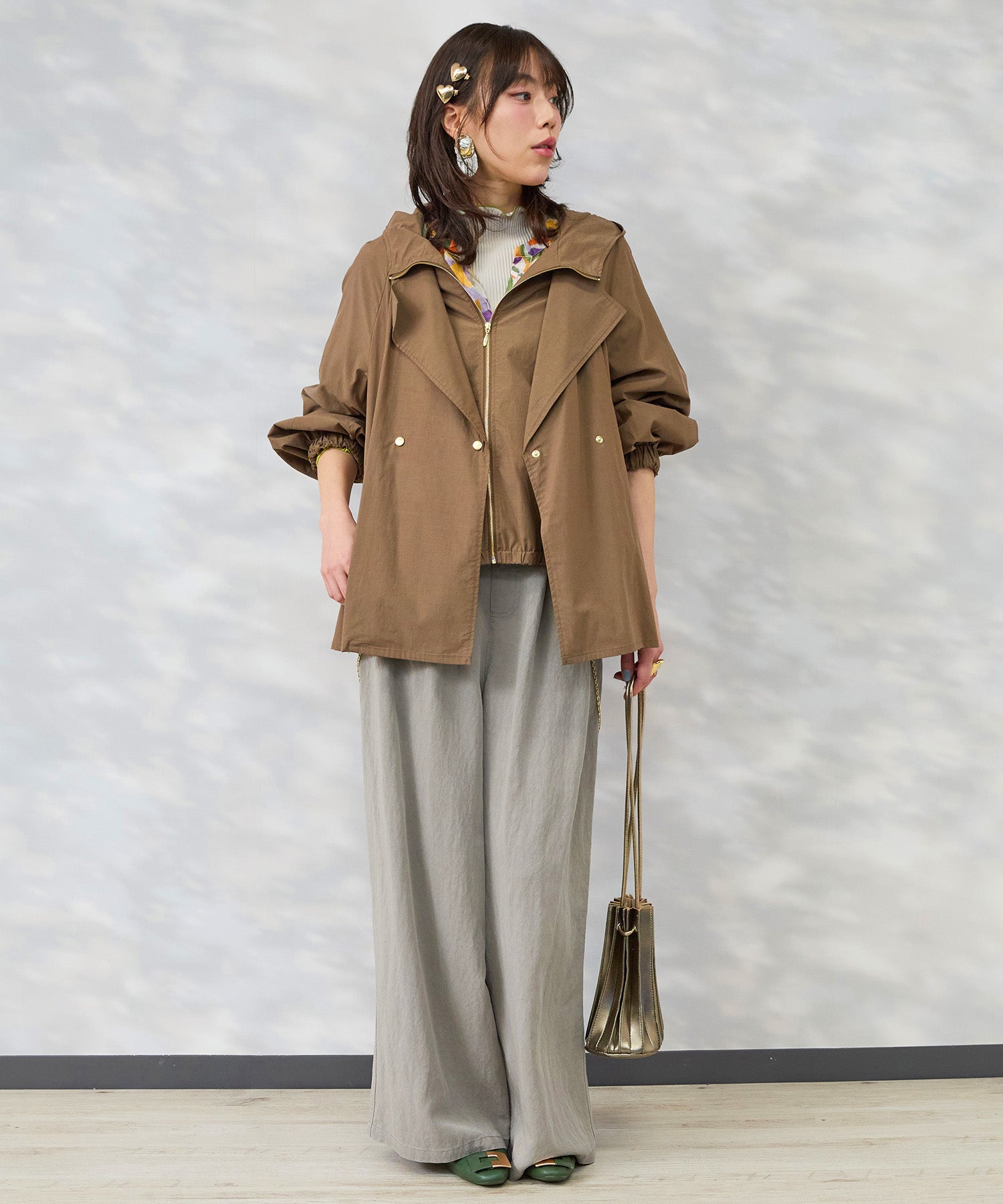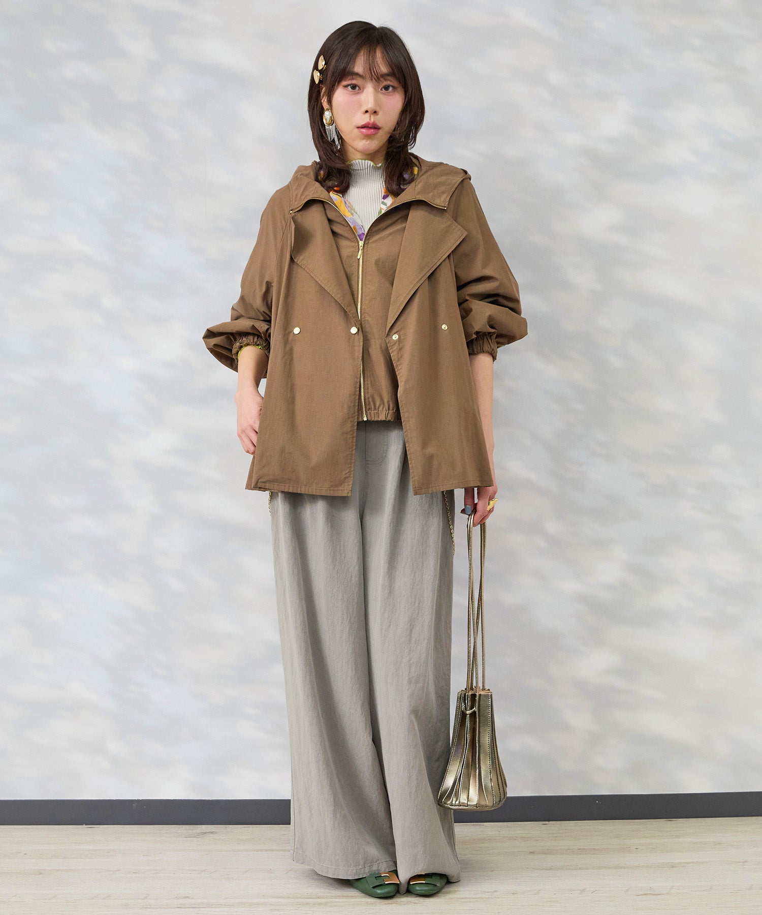 フードとテーラードの要素を重ねたような佇まいで、きれいめとカジュアルのバランスが絶妙です。