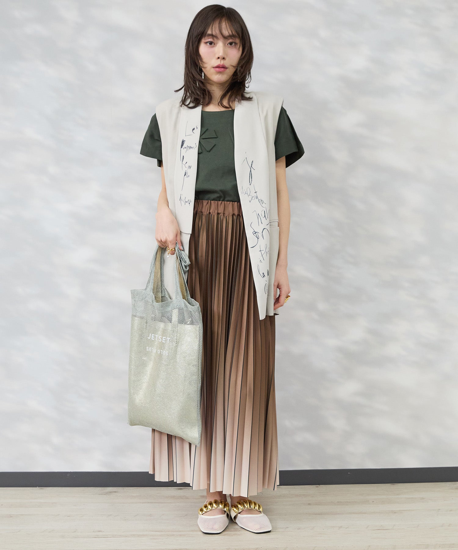 #デザインジレ #アシンメトリー #ペイントデザイン #きれいめカジュアル #大人コーデ #春コーデ #JETSETSOLOPLUS