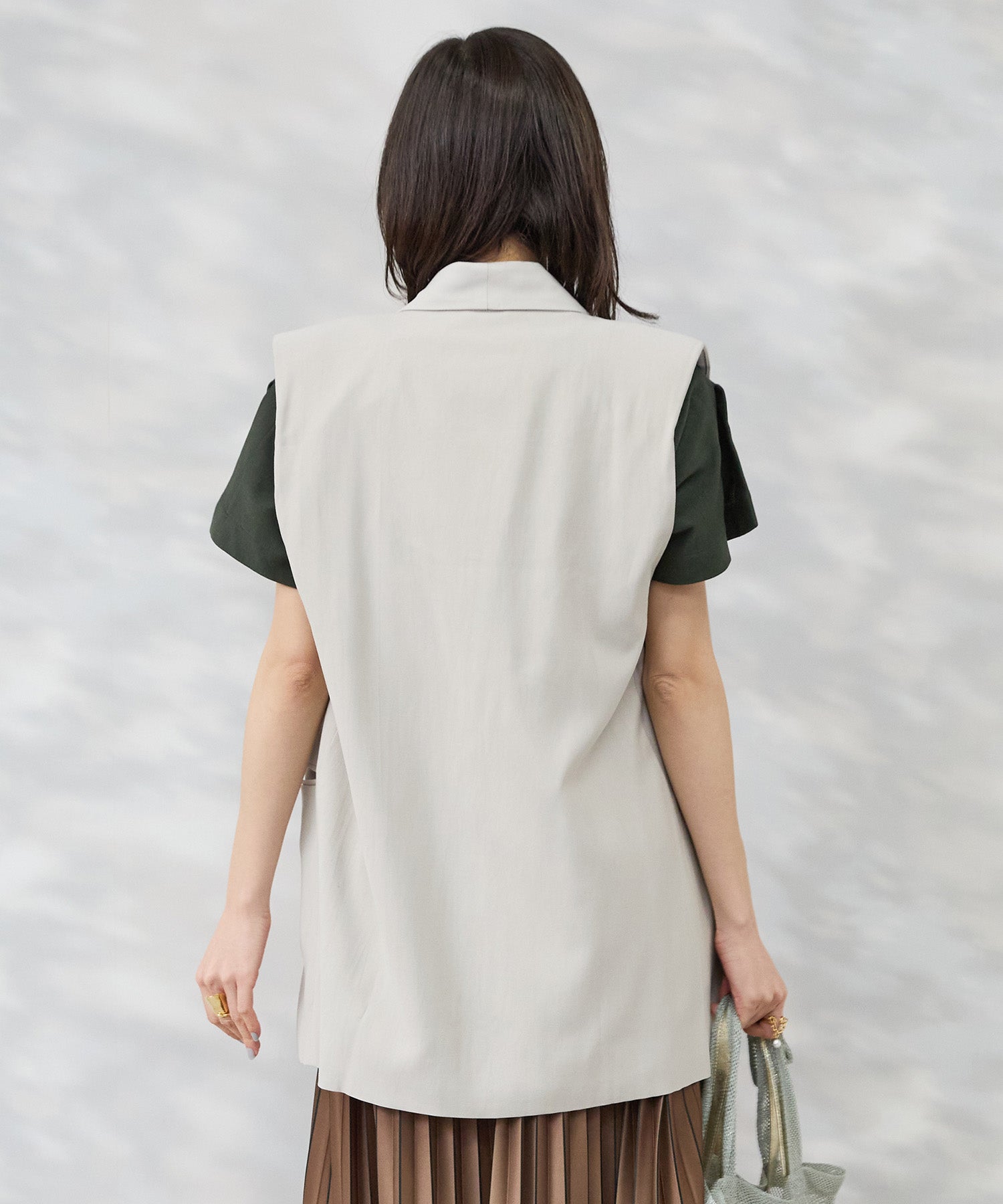 アシンメトリーなラインに、ペイント調のデザインを効かせた存在感のあるジレ。