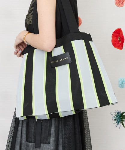 スタイリッシュで実用的!マルチストライプニットバッグ