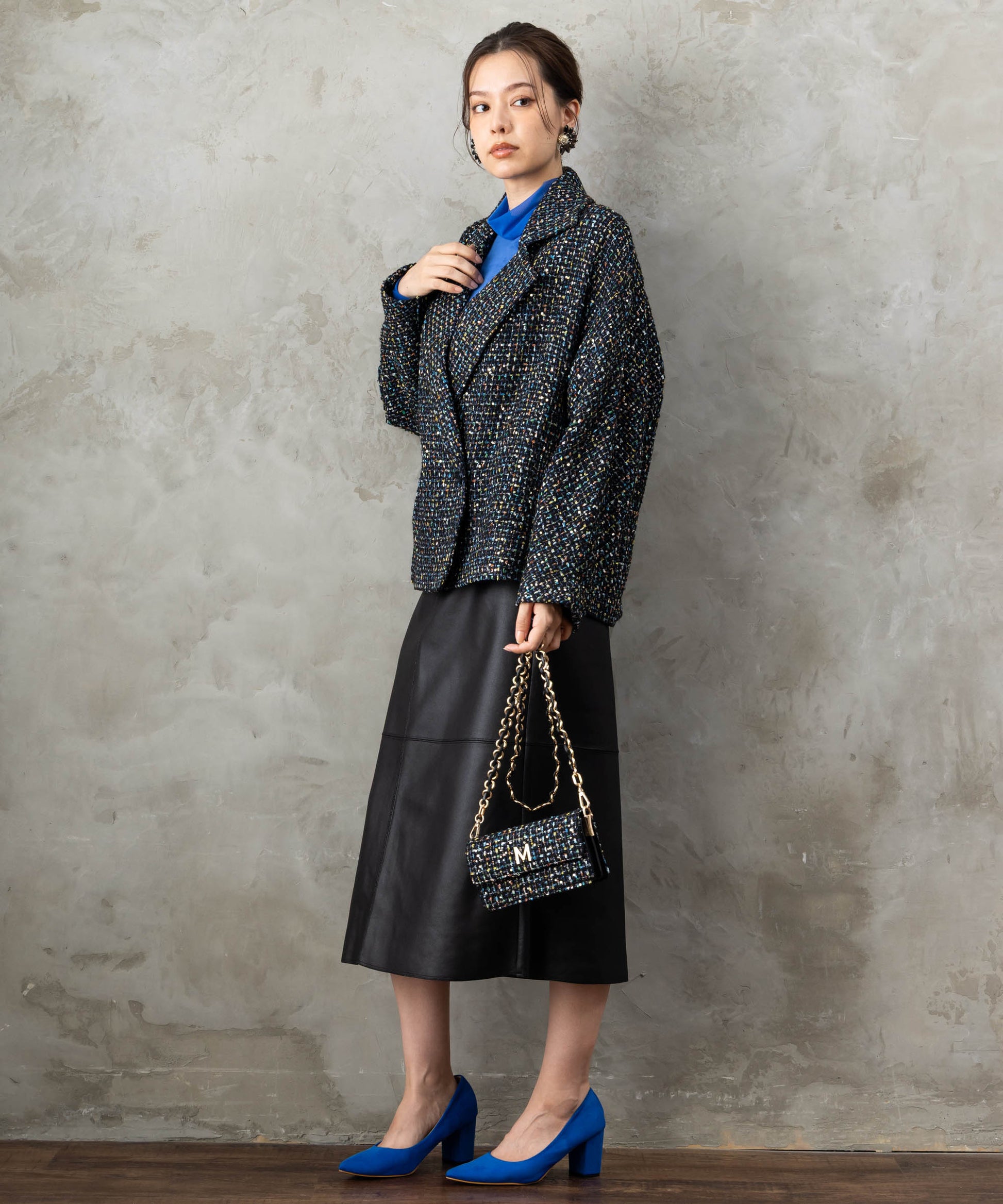 ・MIXツイードの素材感ときらめきで華やかさをプラス