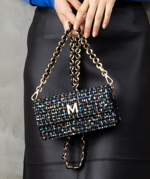 【華やかにきらめく、MIXツイードチェーンバッグ】