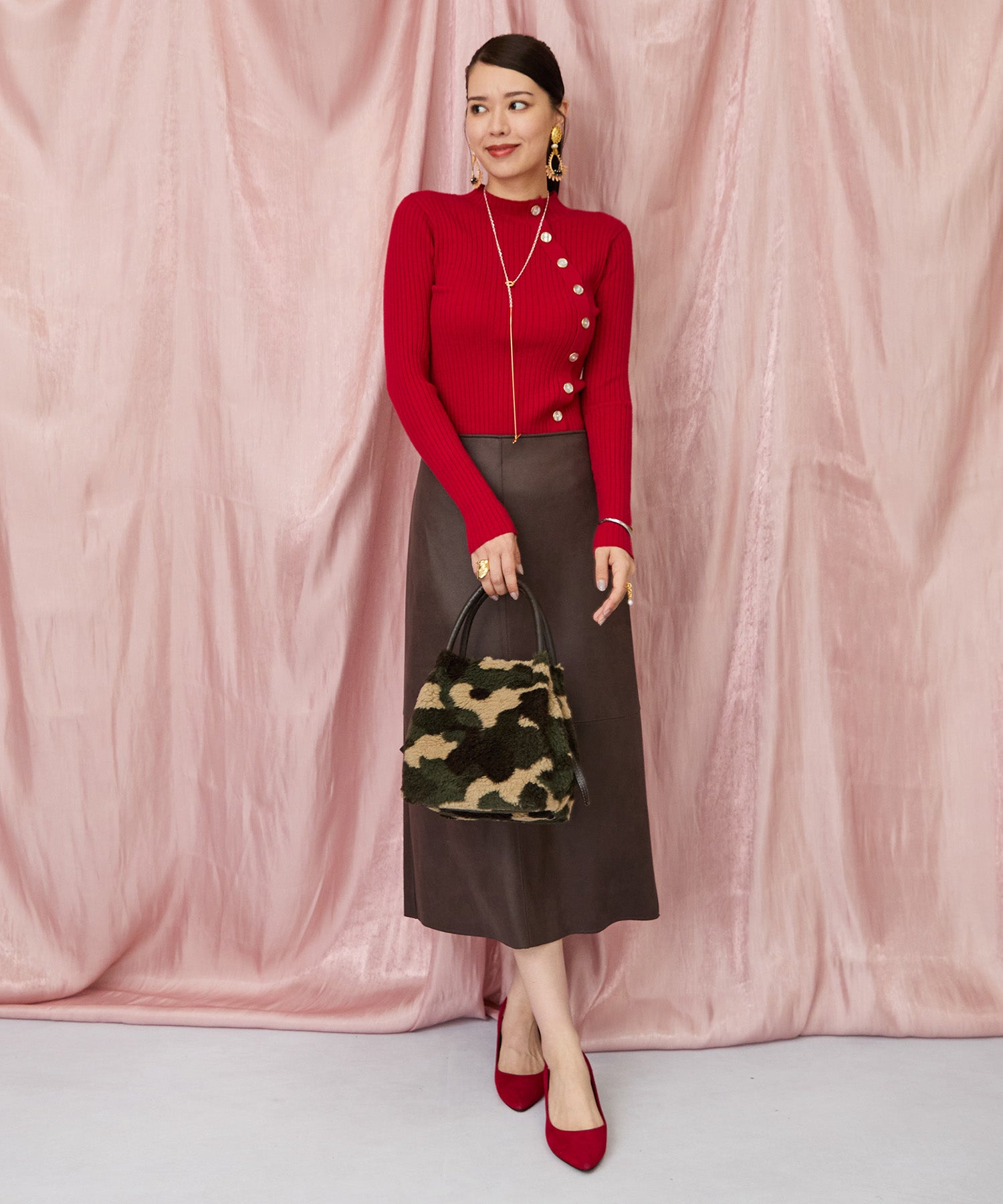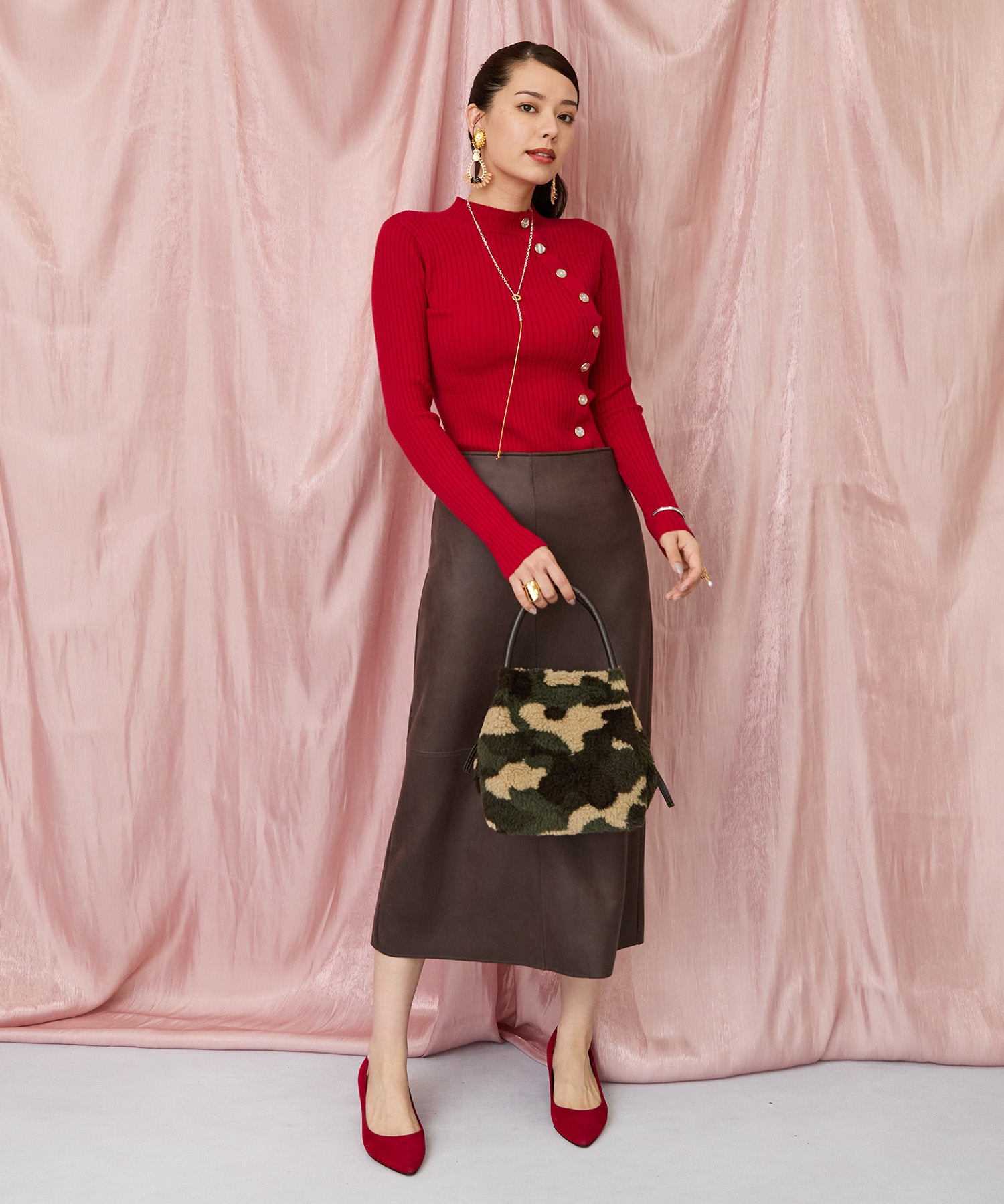 ふんわりとしたボア素材にカモフラ柄をのせた、季節感たっぷりのバッグ。