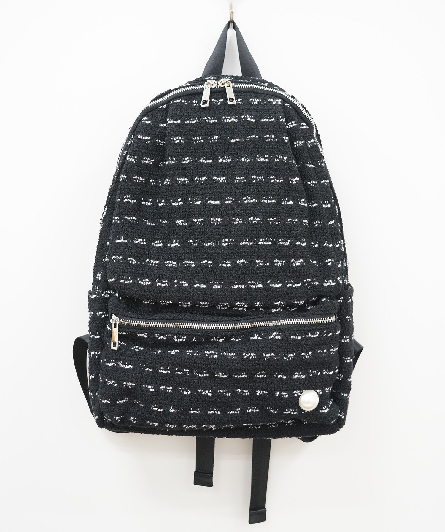 上質なツイード素材にパールをあしらった、女性らしい印象のリュック。