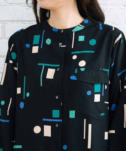 1枚でコーデの主役になるカラフルなジオメトリックブラウス。