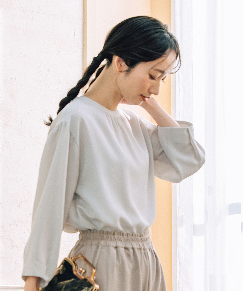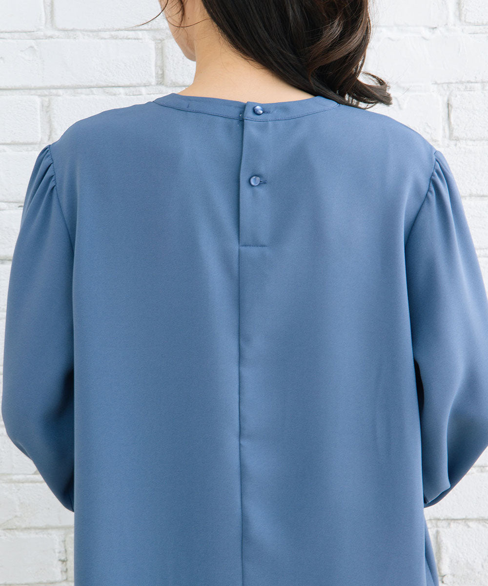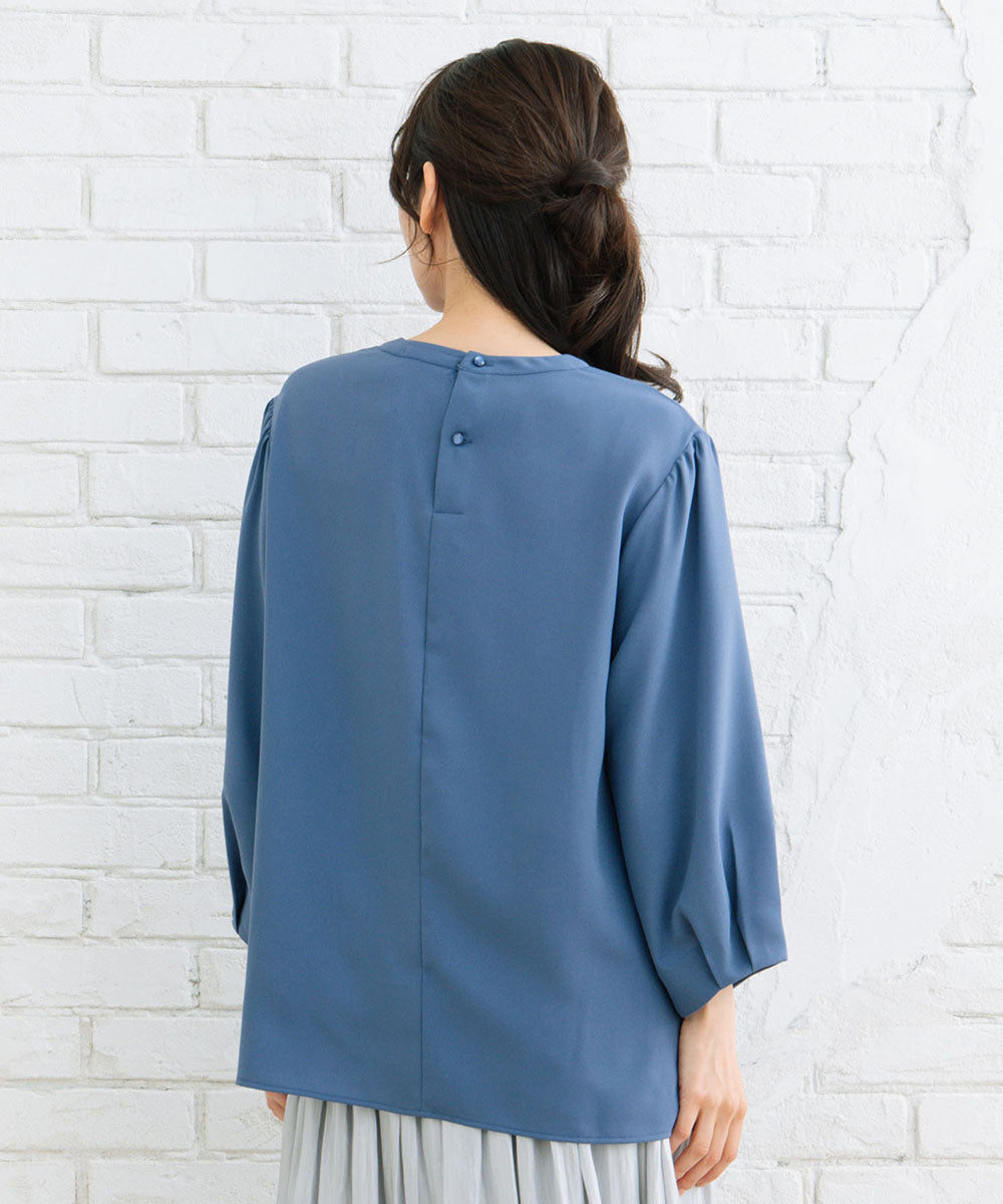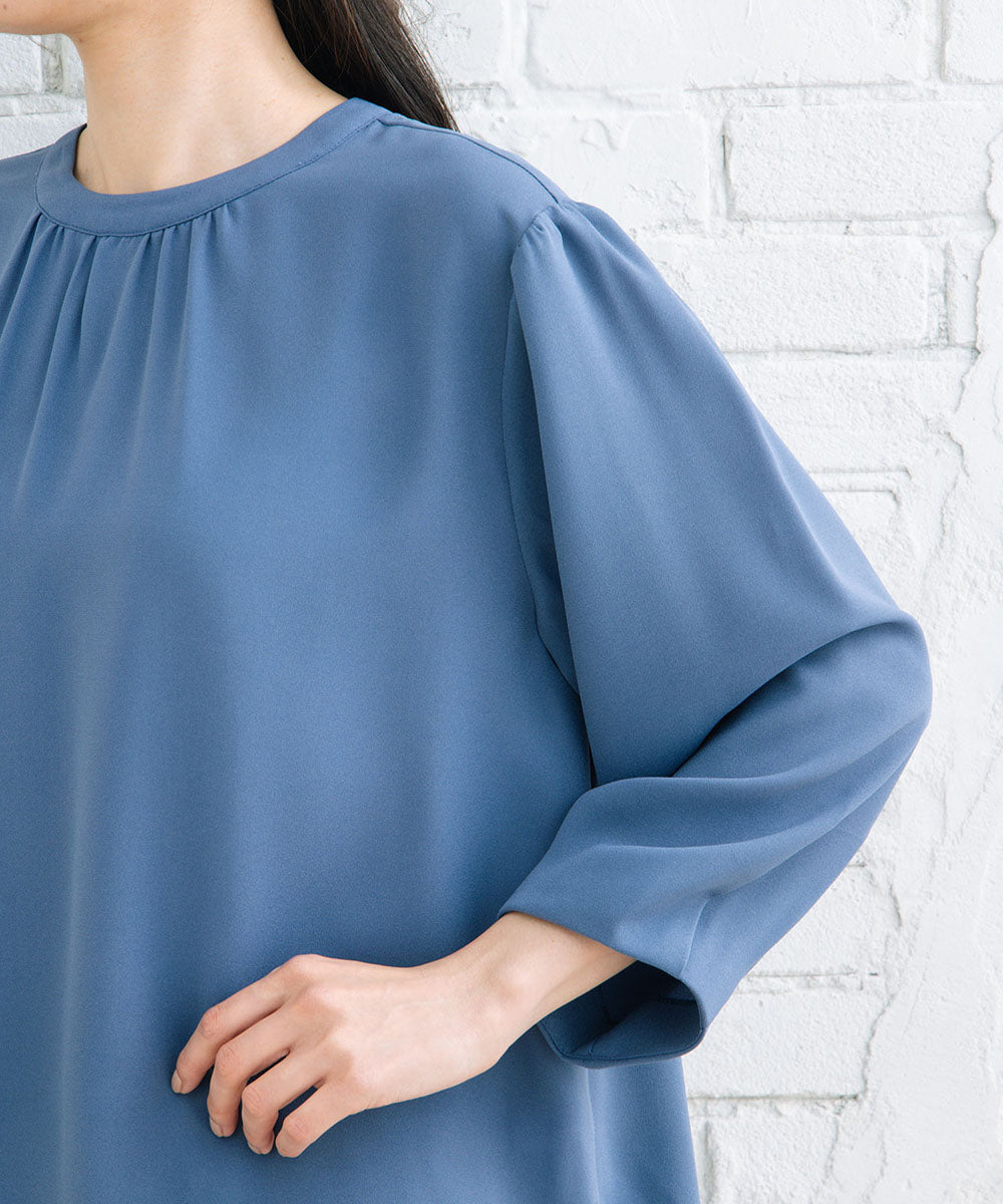 上品なジョーゼット素材と、ふんわりとした袖口のタックが女性らしさを演出してくれます。
