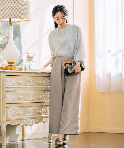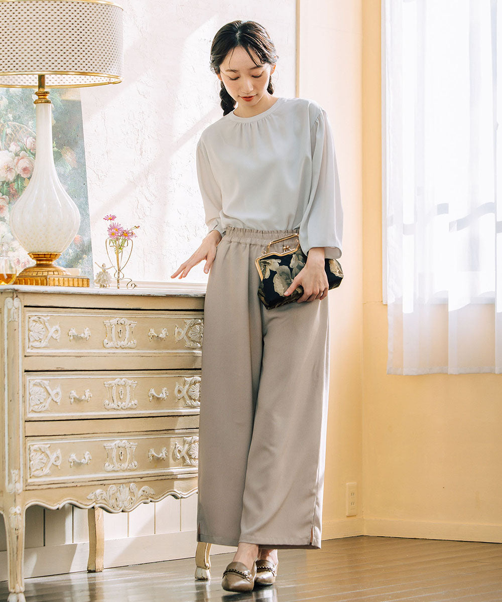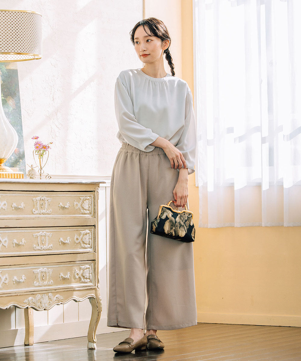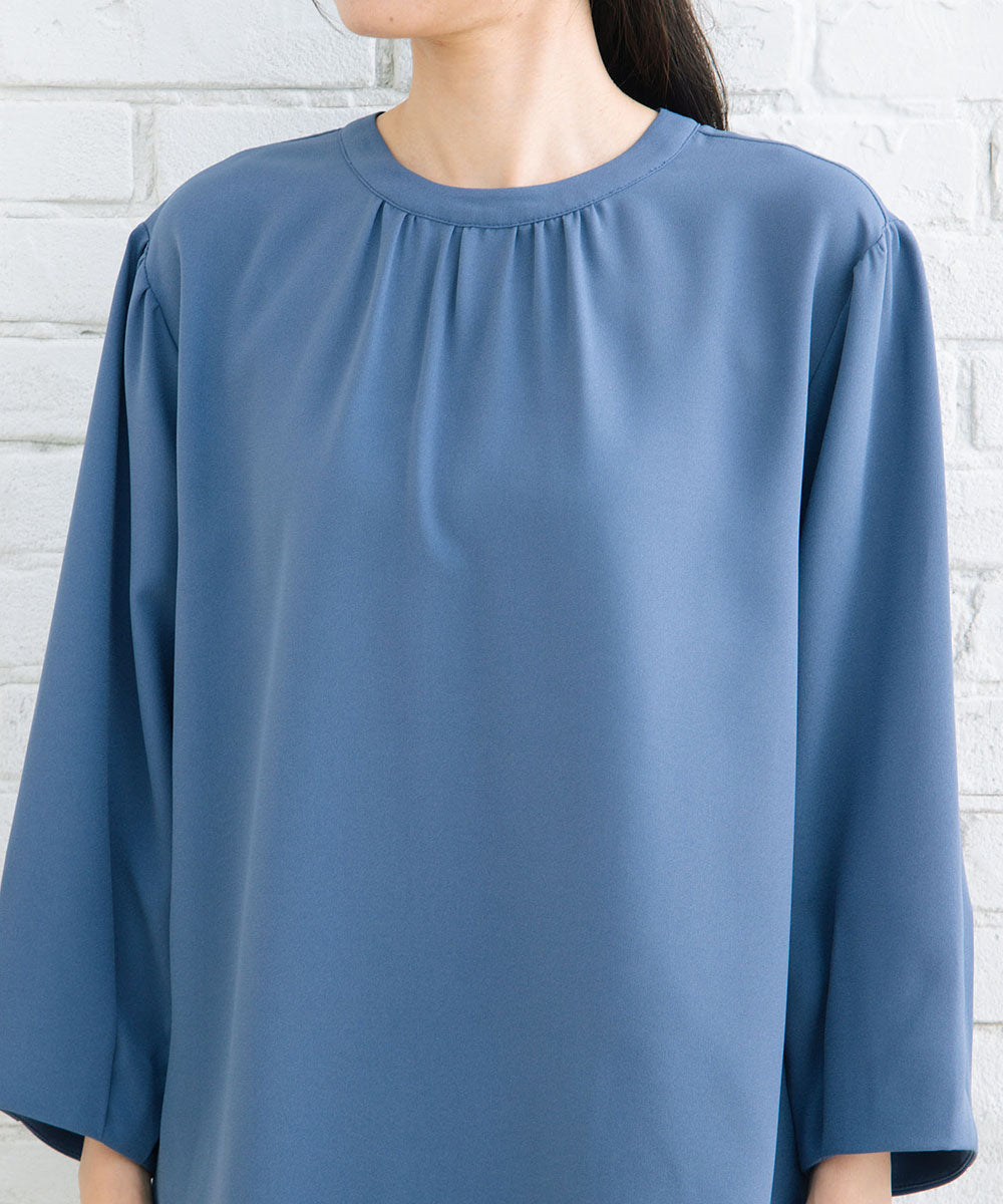 上品なジョーゼット素材と、ふんわりとした袖口のタックが女性らしさを演出してくれます。