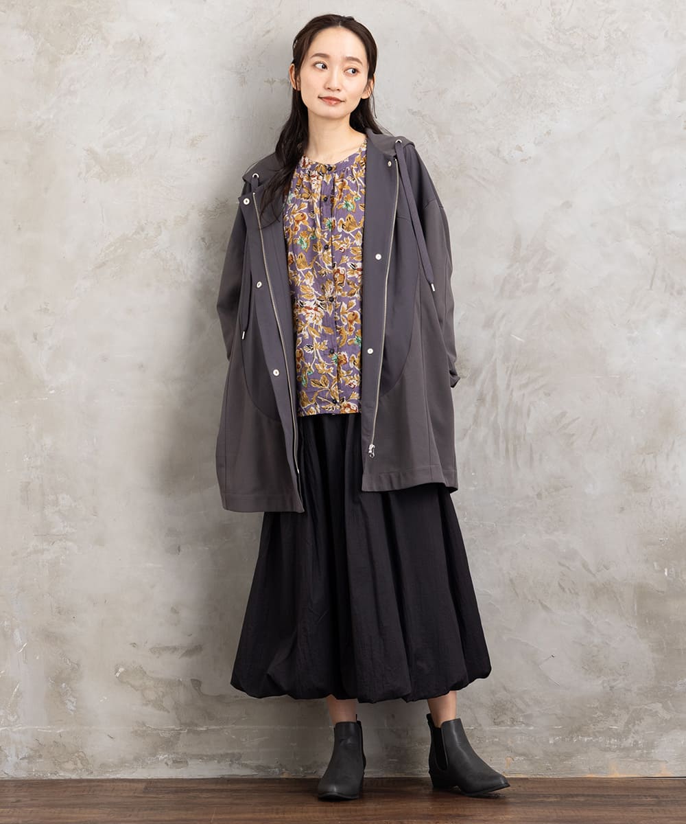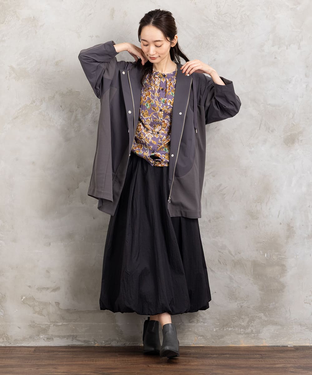 裾に向かってふんわり広がるバルーンシルエットが、動くたびにやさしく揺れて女性らしさを引き立てます。