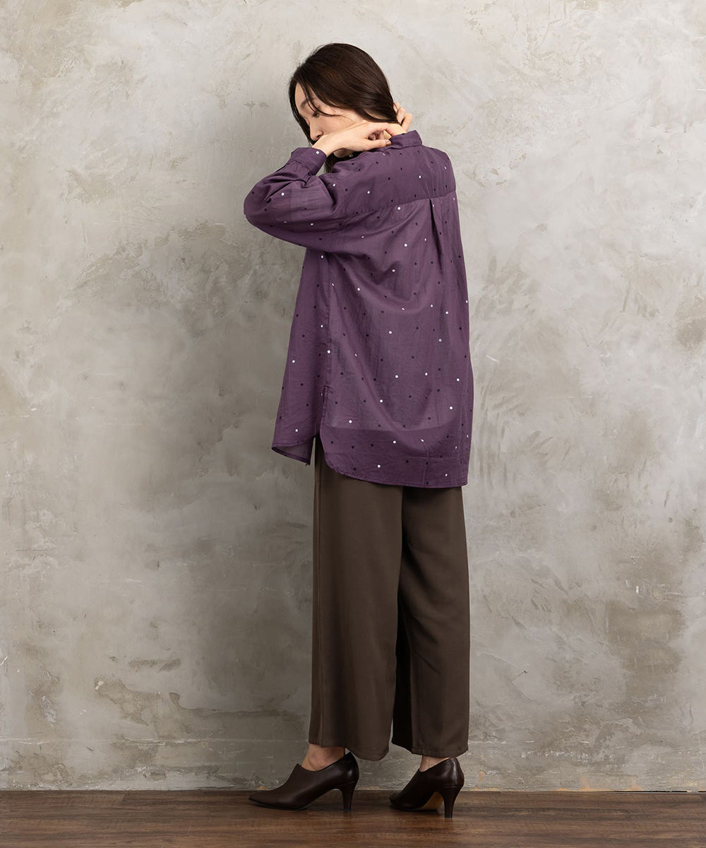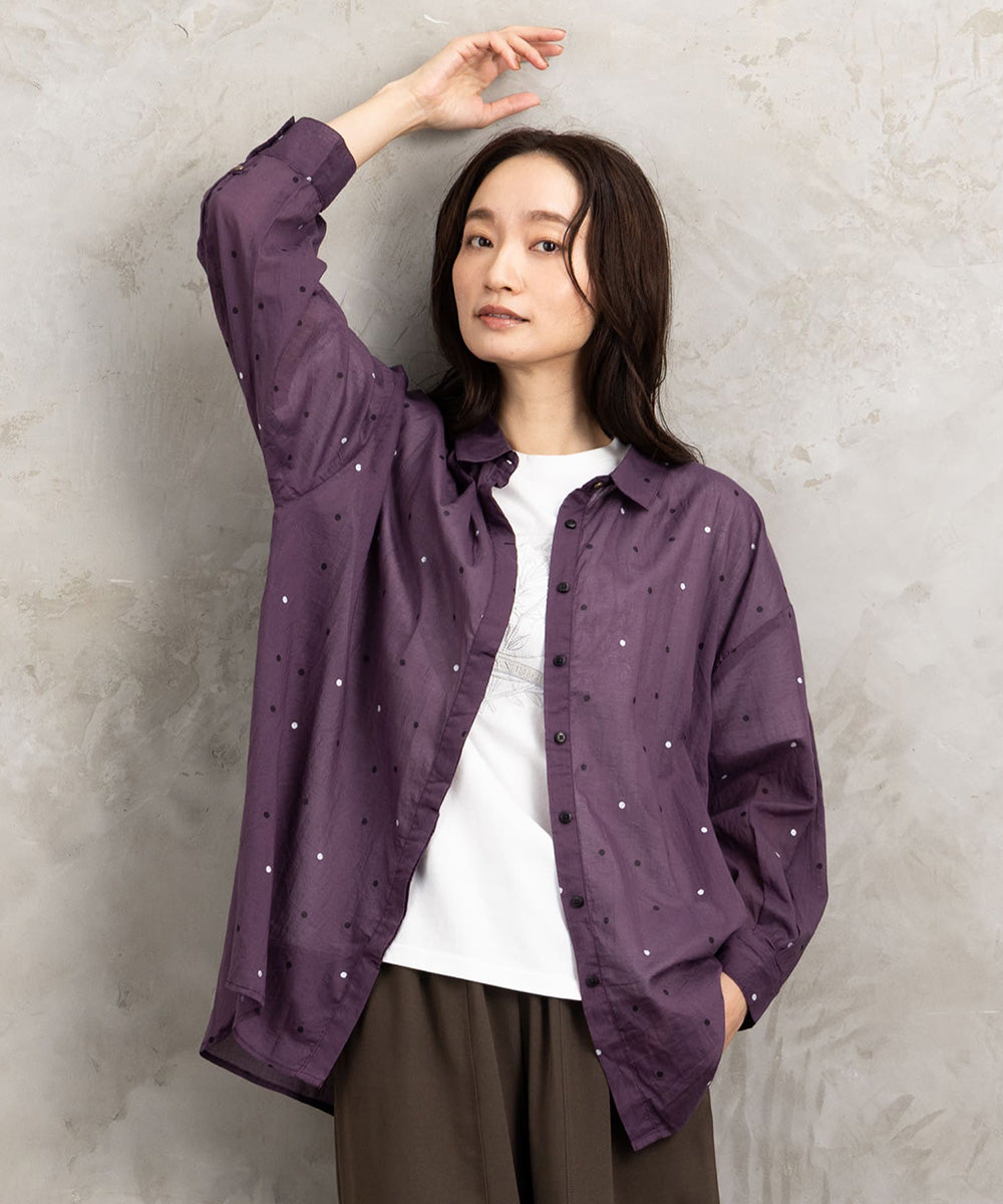 【ドット柄で華やぎをプラス。大人の抜け感シャツブラウス】