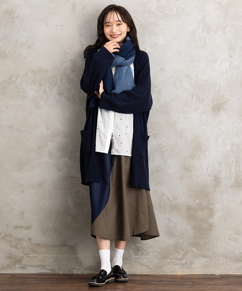 後ろにかけて自然に広がるラウンドヘムで、気になる腰まわりもやさしくカバーしてくれます。