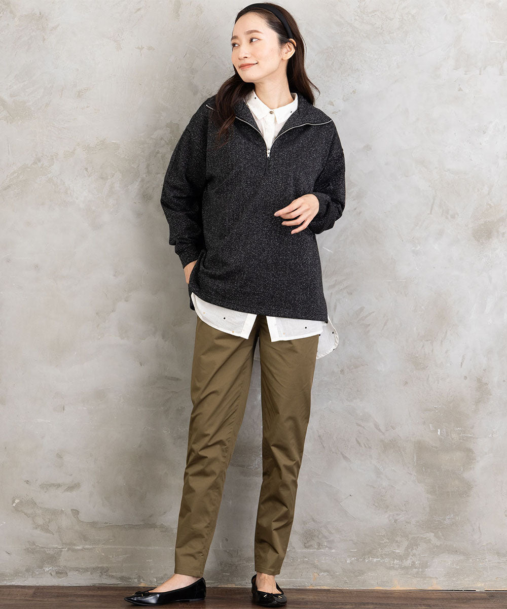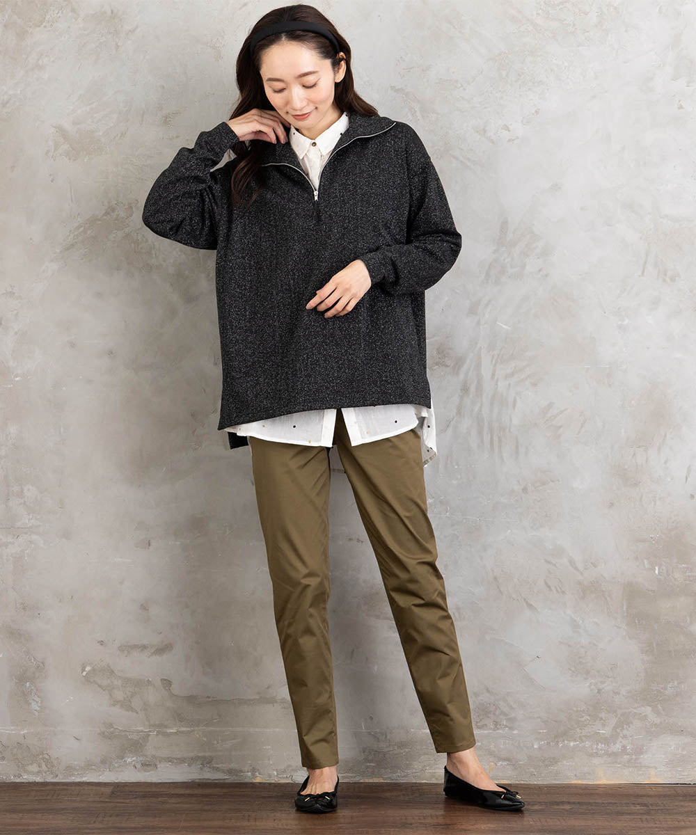 ほどよい光沢感とくたっとした落ち感素材で、リラックス感がありながらも上品な印象に仕上がります。