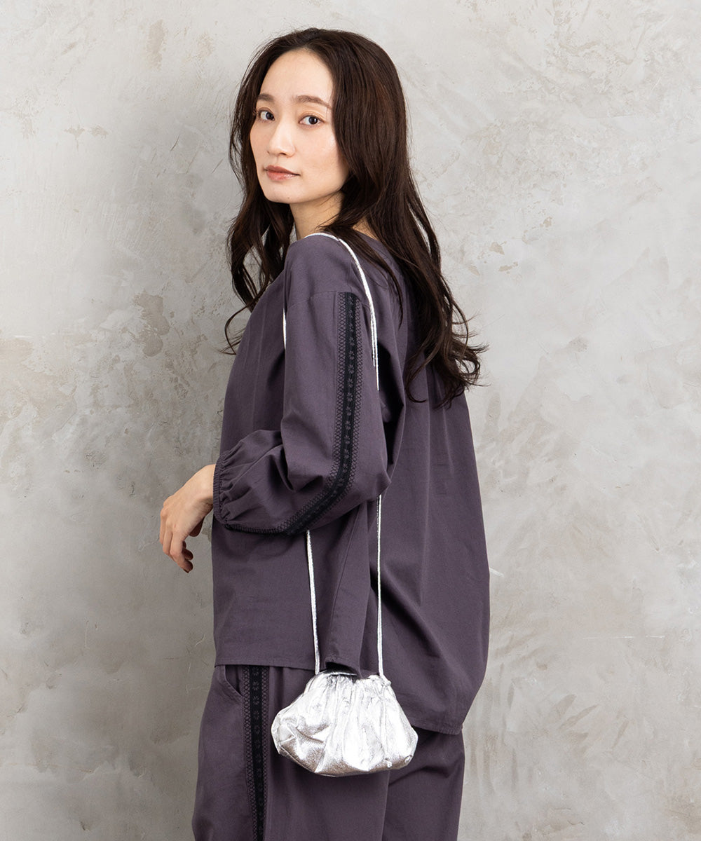 ・デザインポイント:袖ライン刺しゅう、ギャザー入りネック、キーネックディテール