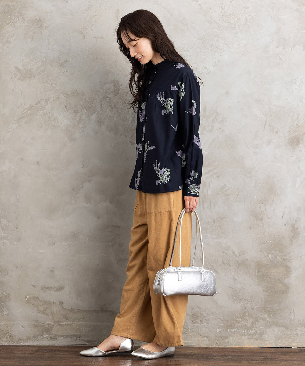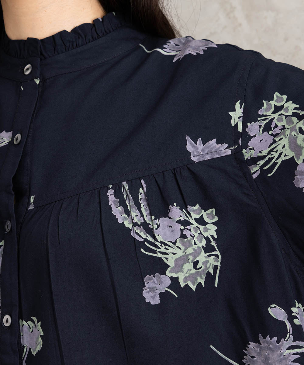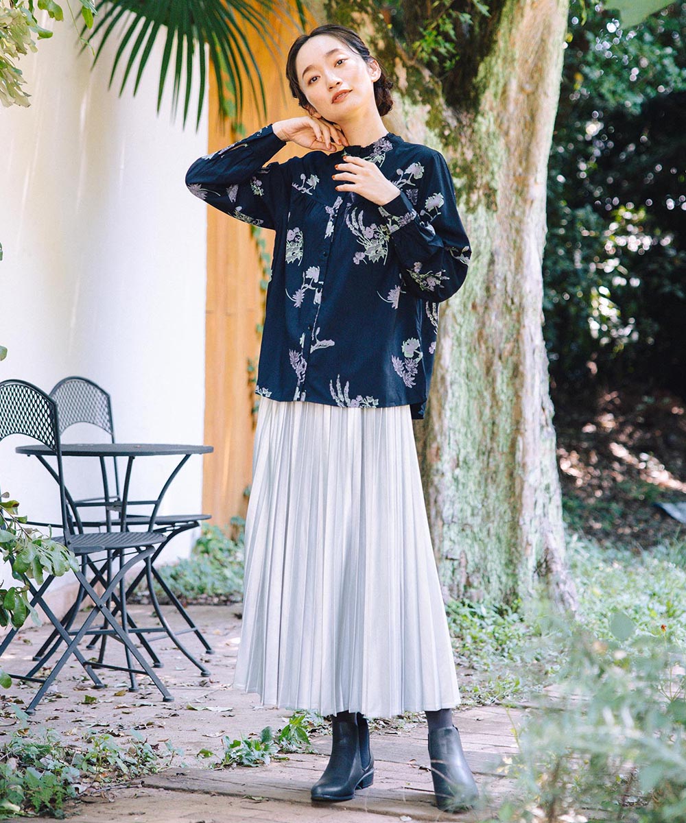 繊細なフラワープリントが目を惹く、上品な印象のブラウス。