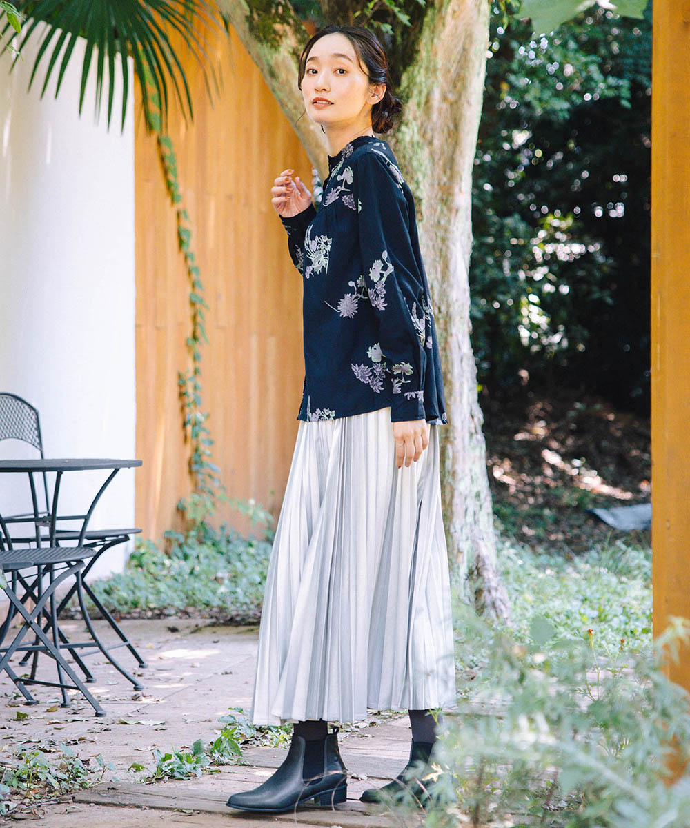 ・秋冬らしい落ち着いたカラーのフラワープリント