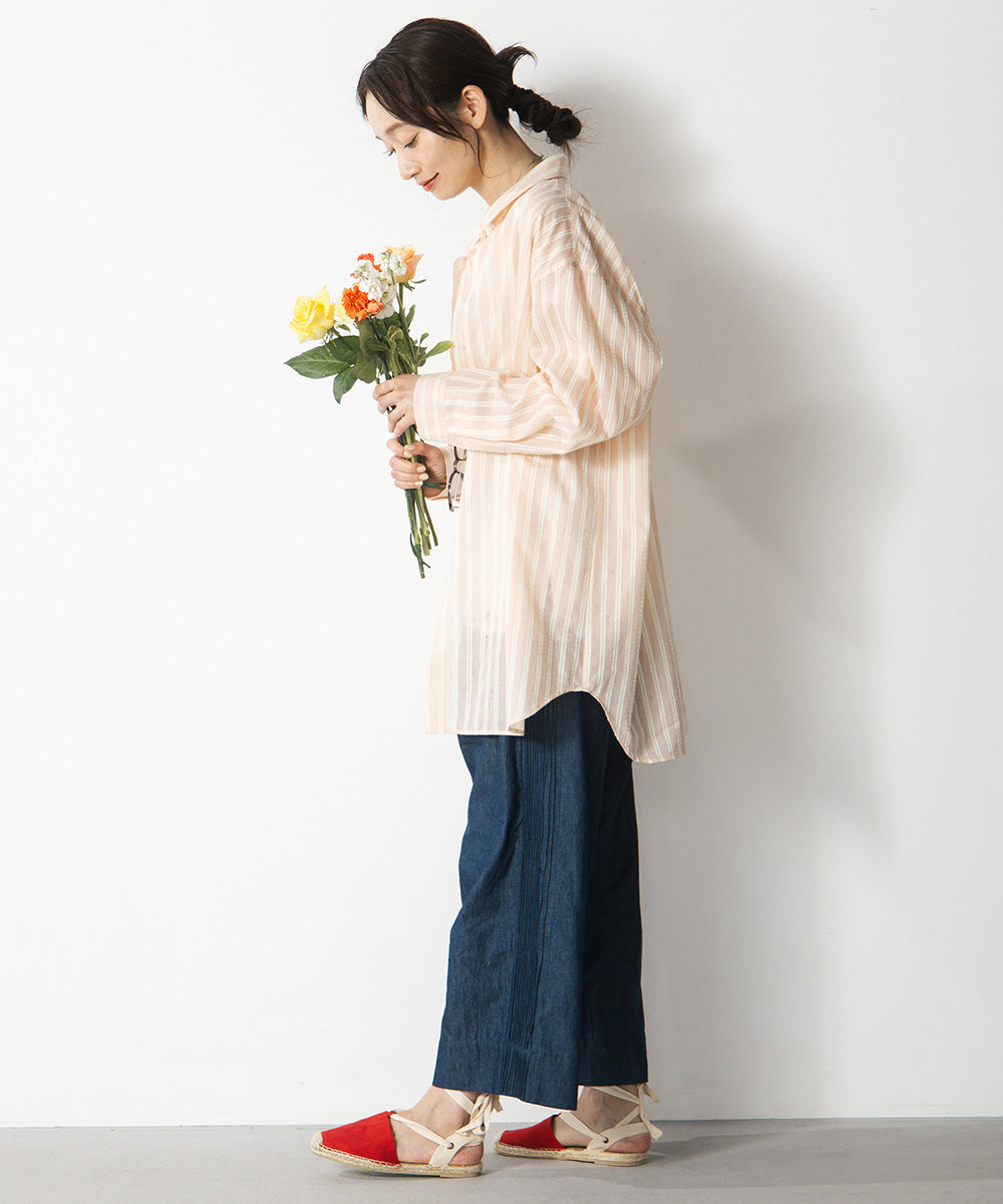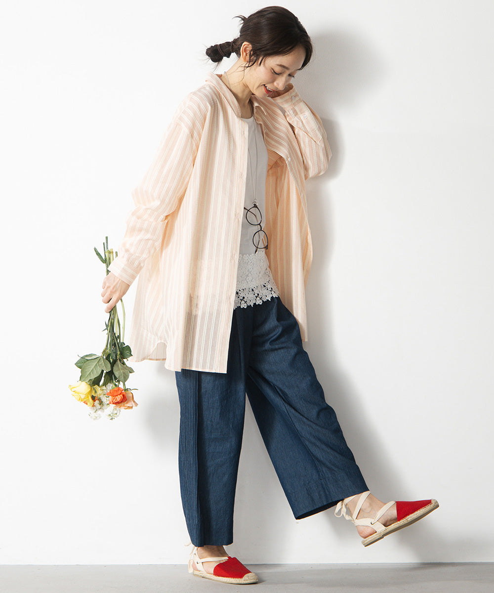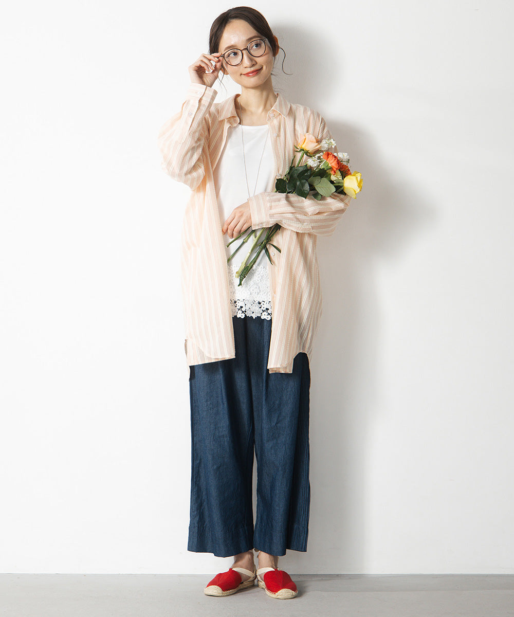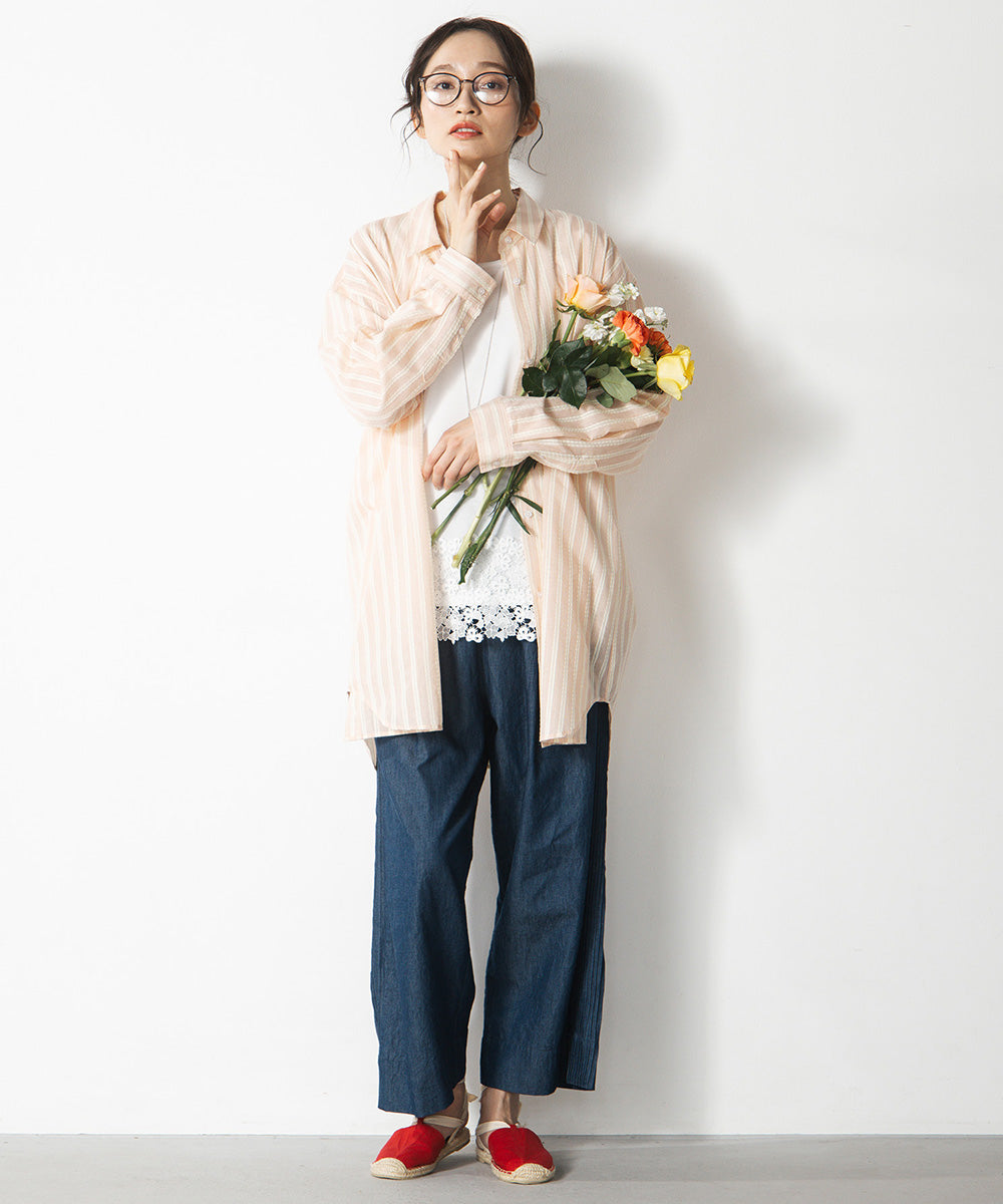 前を開けて羽織りとして使えば、カットソーやワンピースの上にも好相性です。