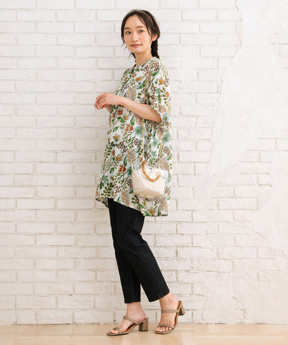 ナチュラルな色合いで描かれた野花柄が、優しく上品な印象を与えます。