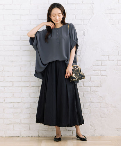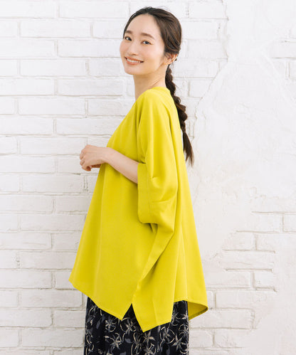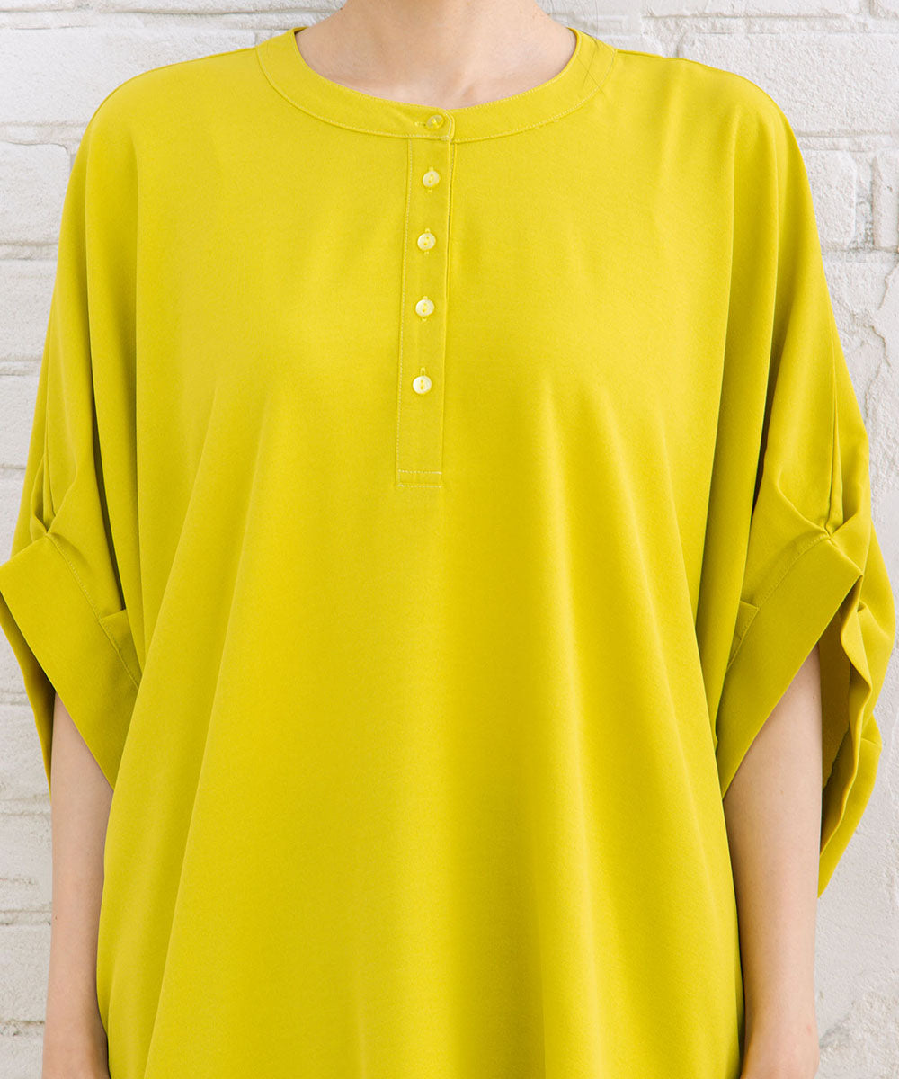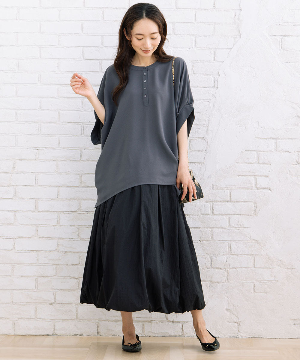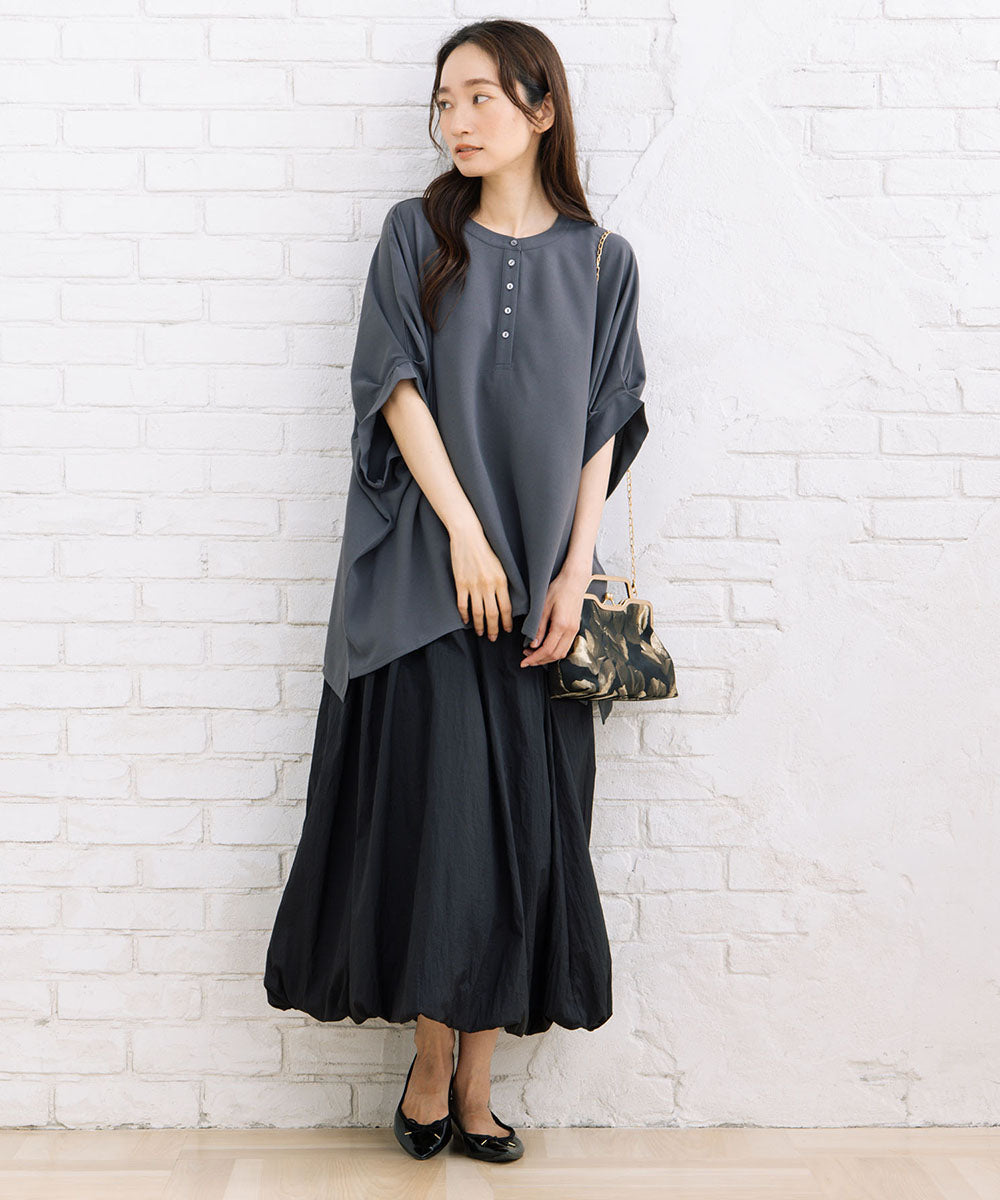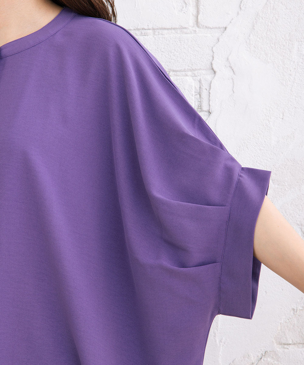 ゆったりとしたシルエットで、袖口のタックが生み出す、ほんのりとしたボリューム感が、シンプルながらも印象的な1枚です。