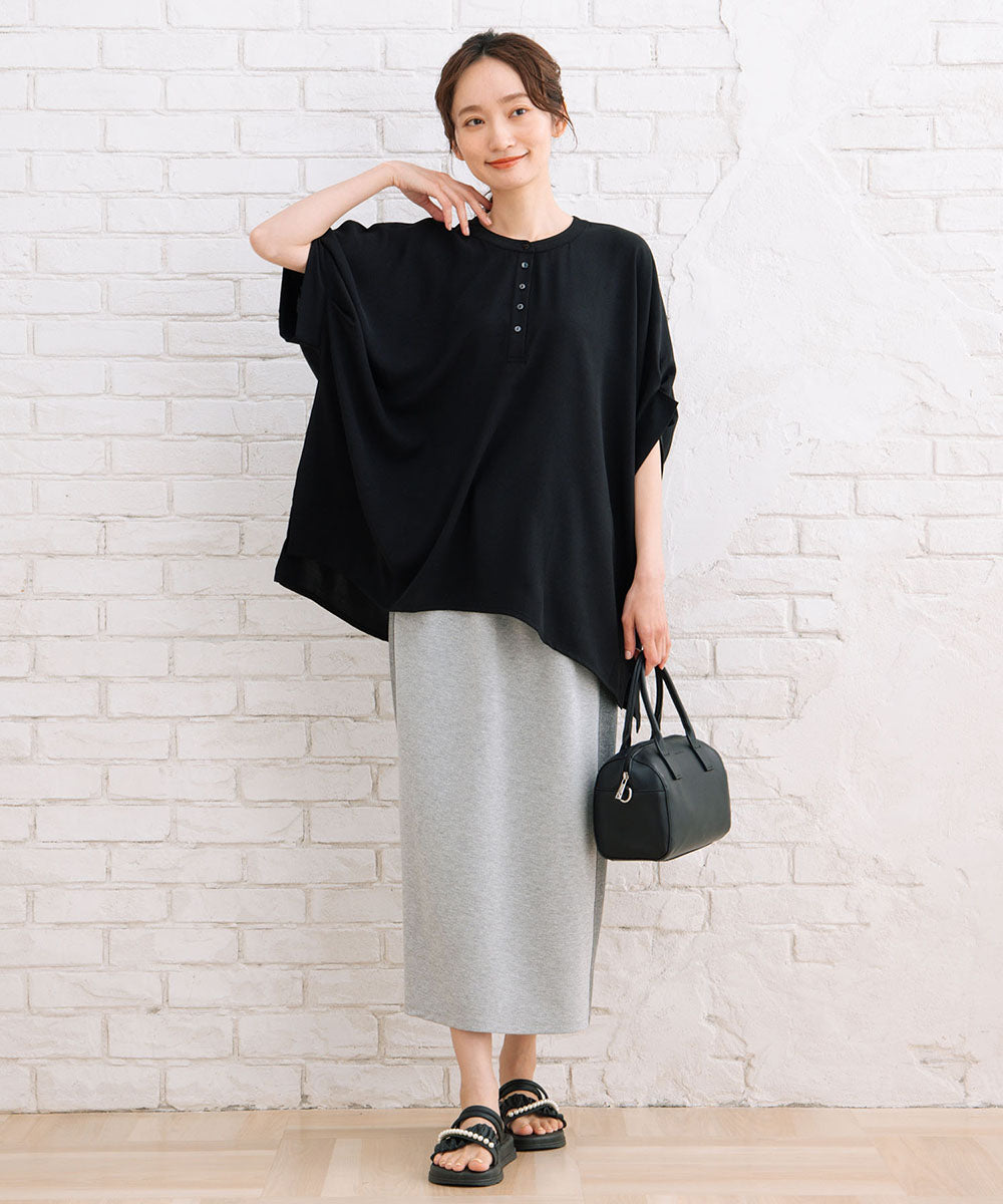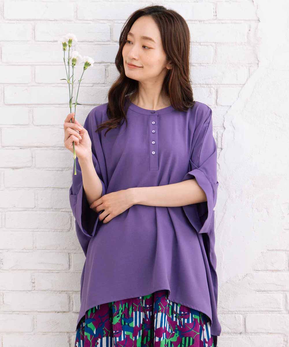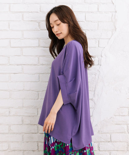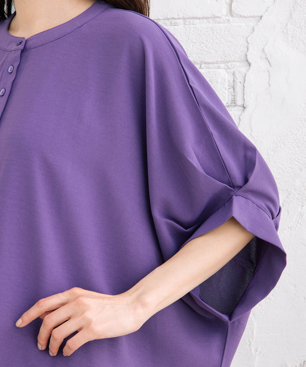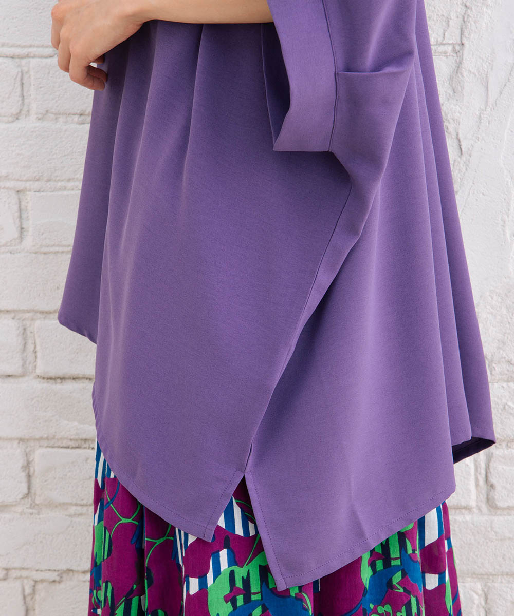 ゆったりとしたシルエットで、袖口のタックが生み出す、ほんのりとしたボリューム感が、シンプルながらも印象的な1枚です。