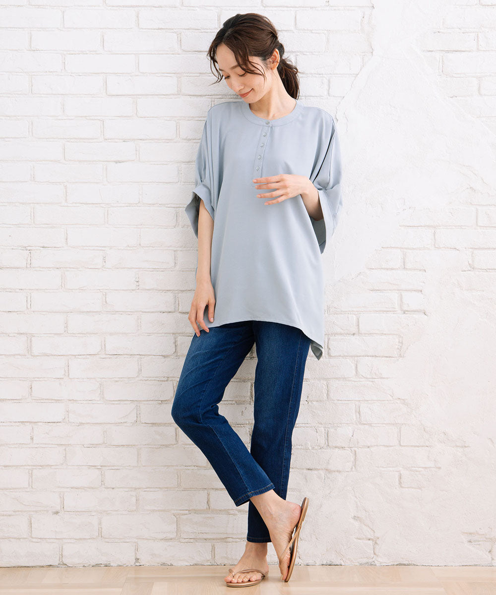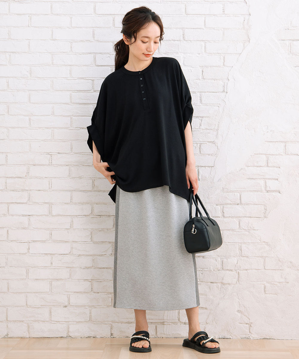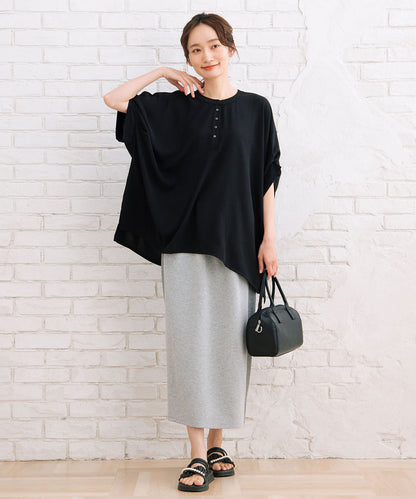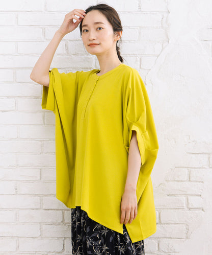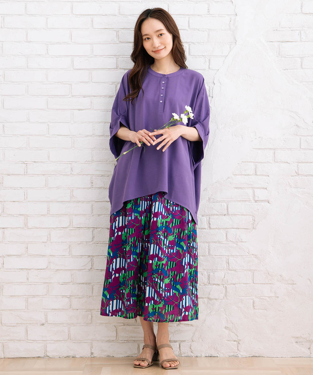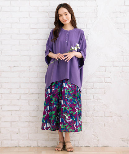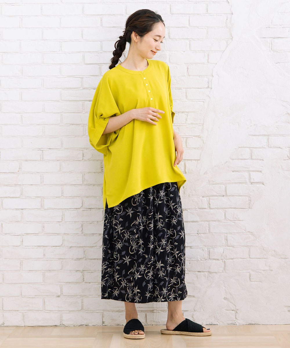 ゆったりとしたシルエットで、袖口のタックが生み出す、ほんのりとしたボリューム感が、シンプルながらも印象的な1枚です。