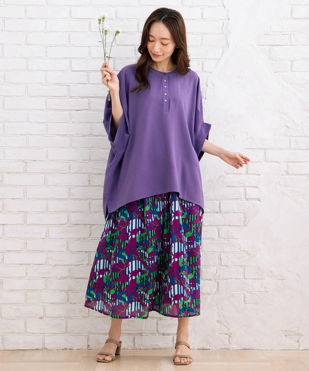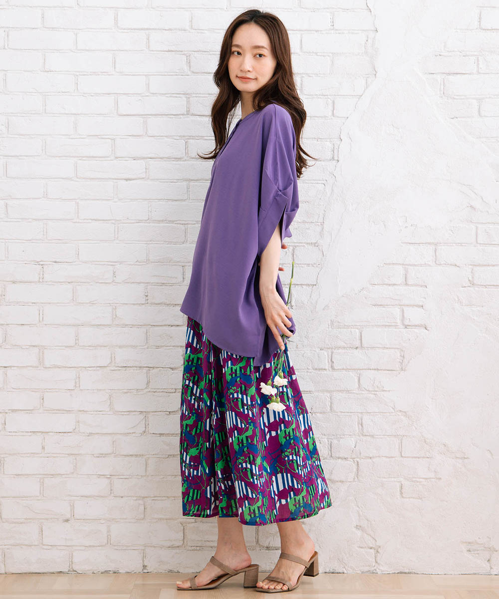 上品なジョーゼット素材ならではの落ち感と、滑らかな肌触りが魅力です。