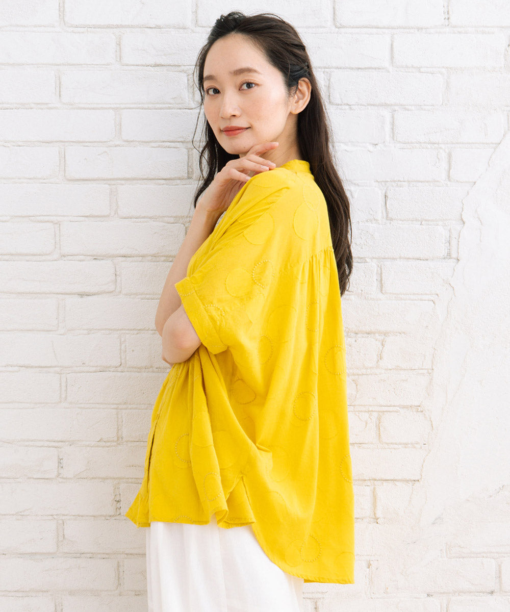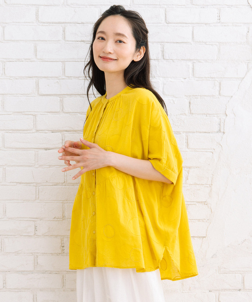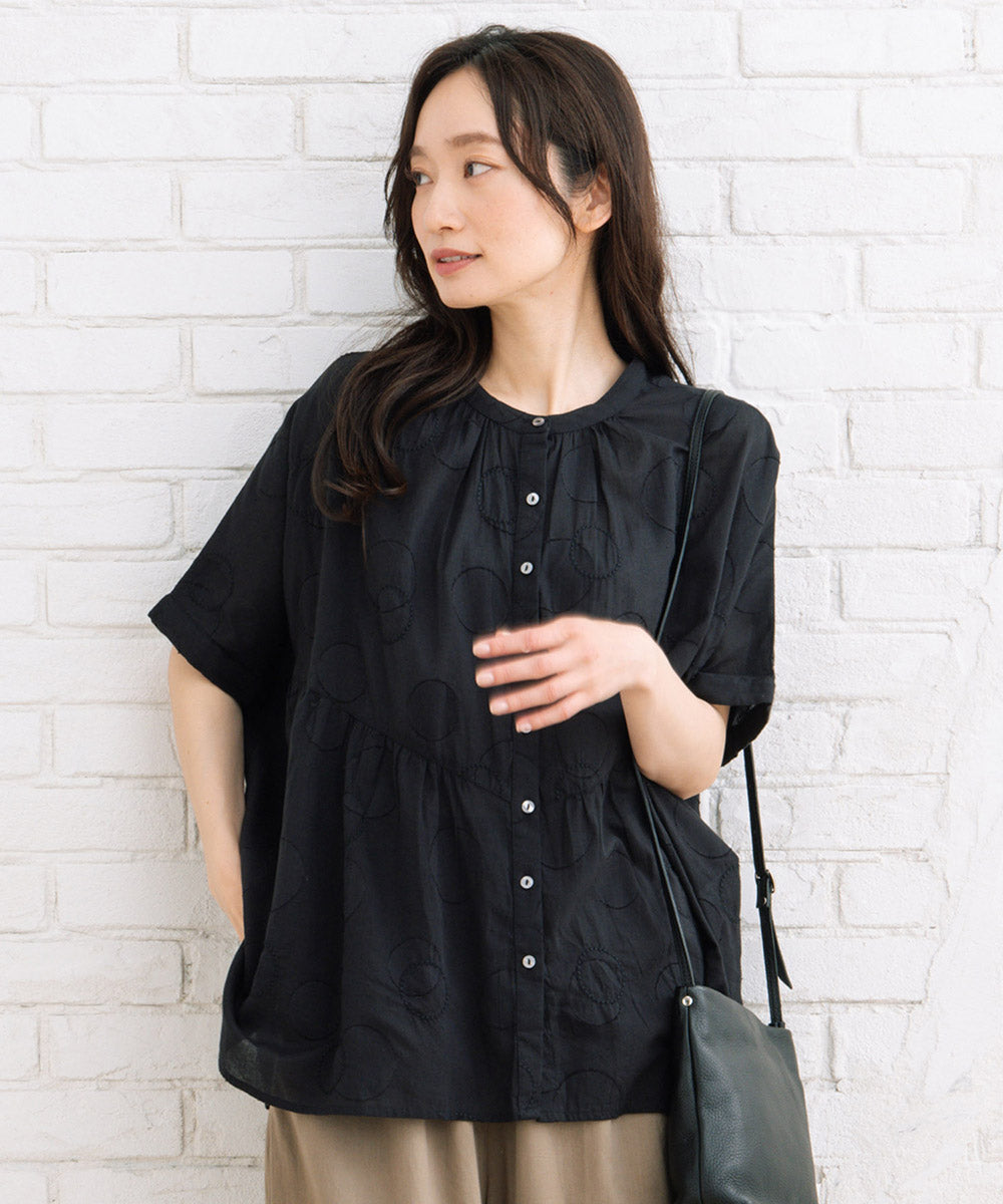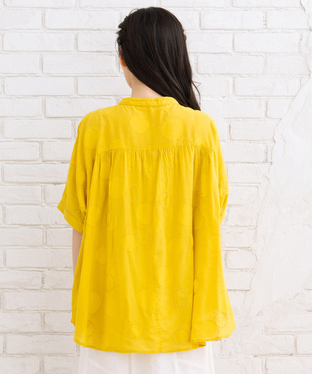 ドットジャガード生地に、さらにサークル刺繍もプラスした価値観のある1枚です。