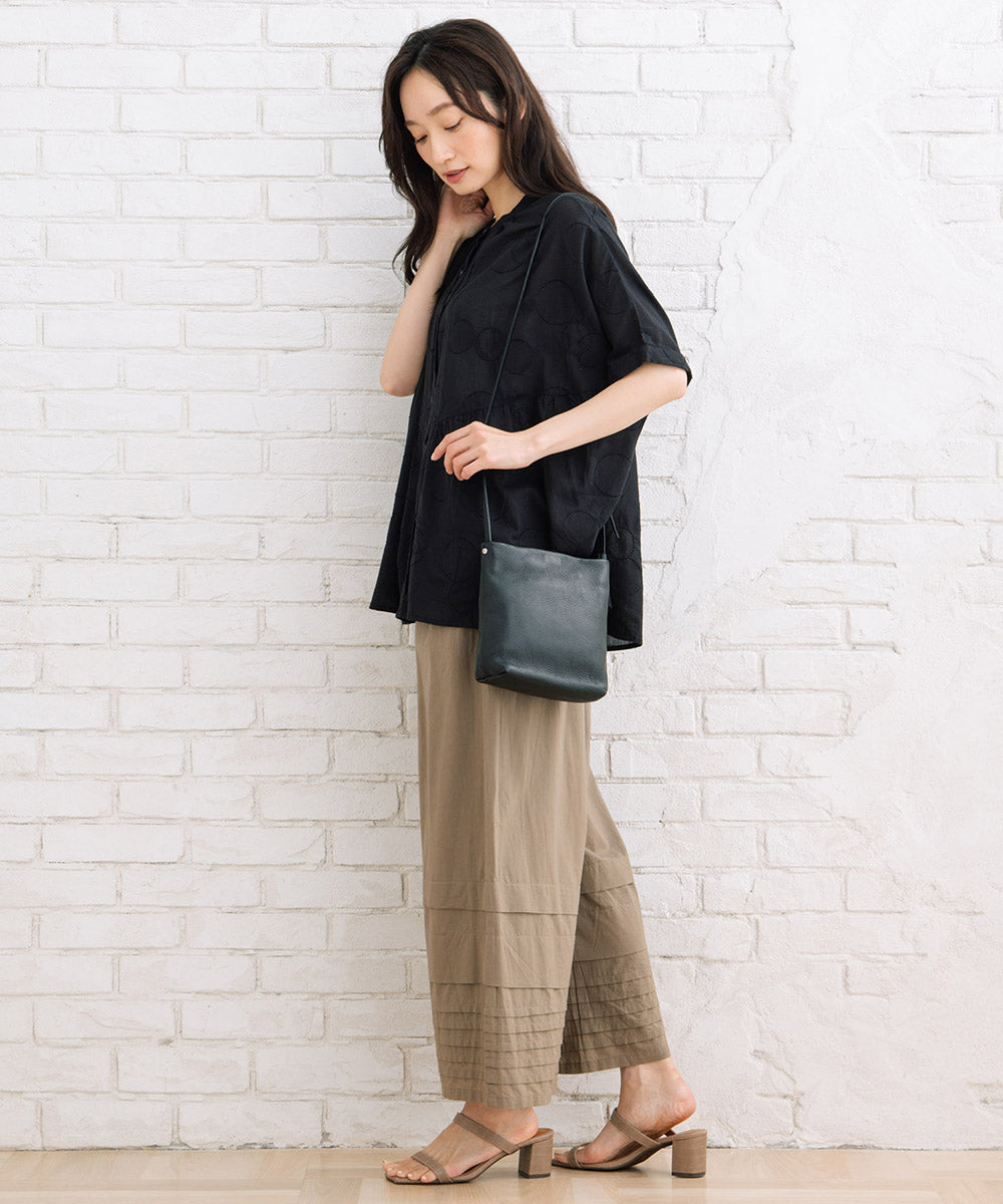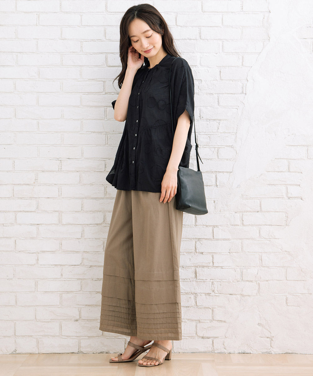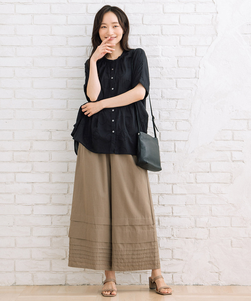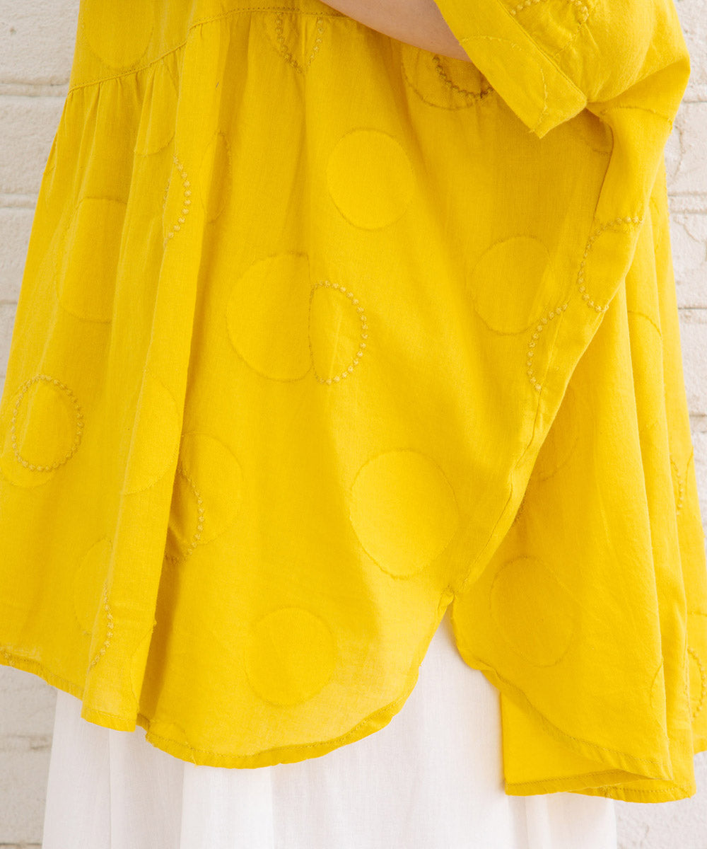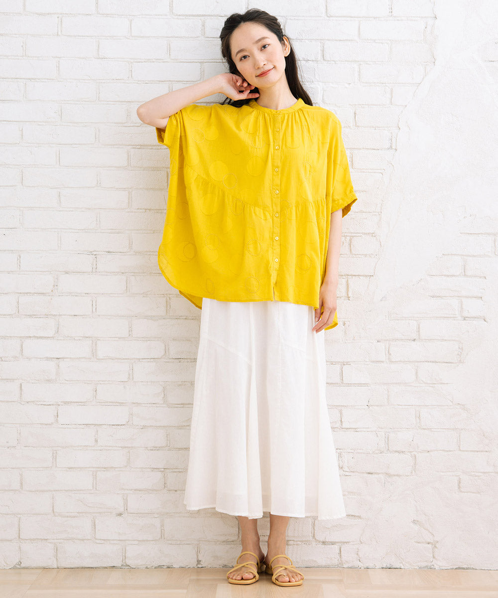 ドットジャガード生地に、さらにサークル刺繍もプラスした価値観のある1枚です。