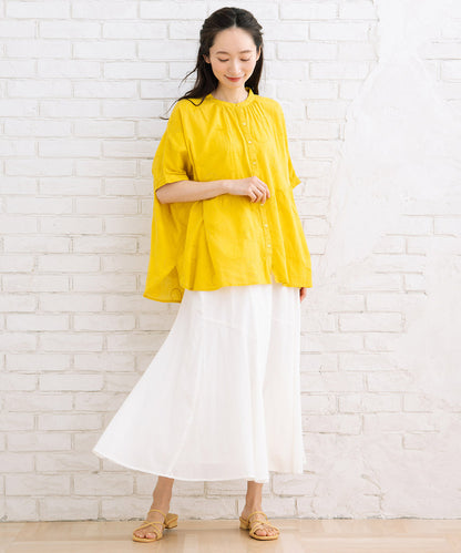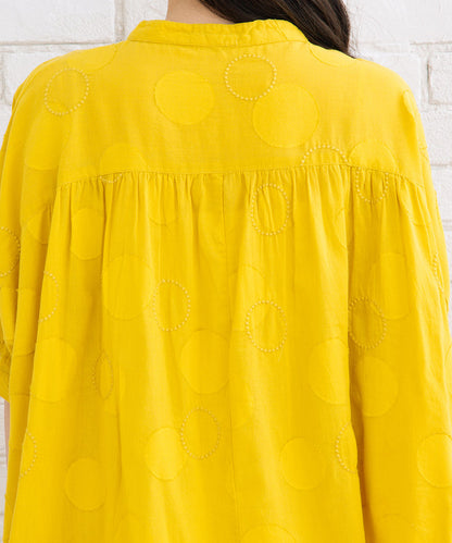 上質なインドコットンを丁寧に織り上げた、ドットジャガード生地のバンドカラーブラウス。
