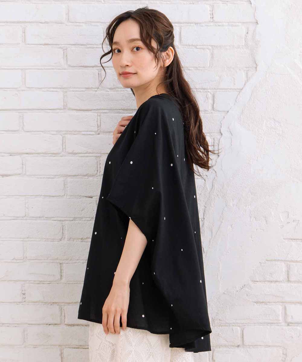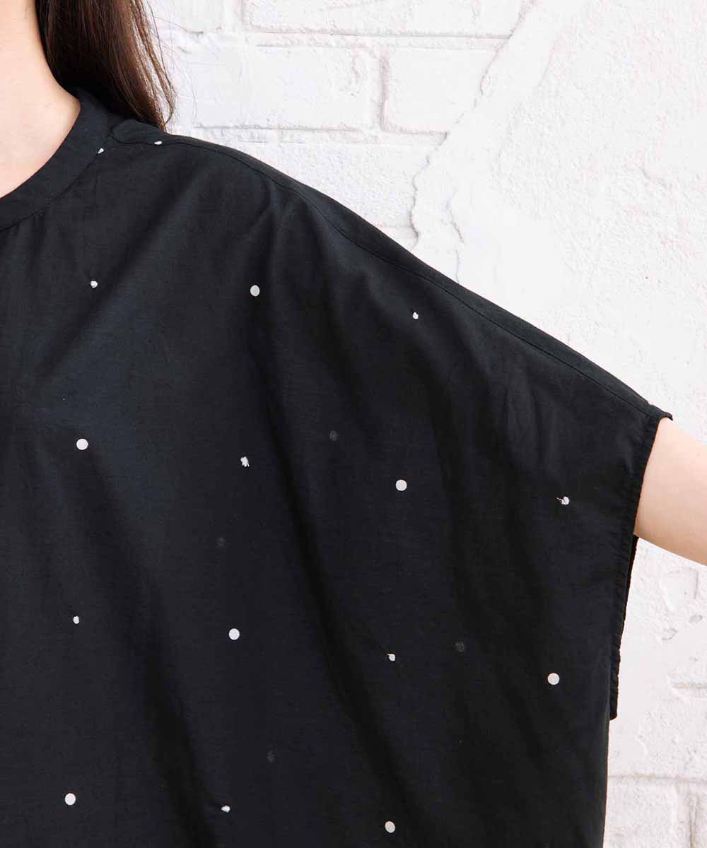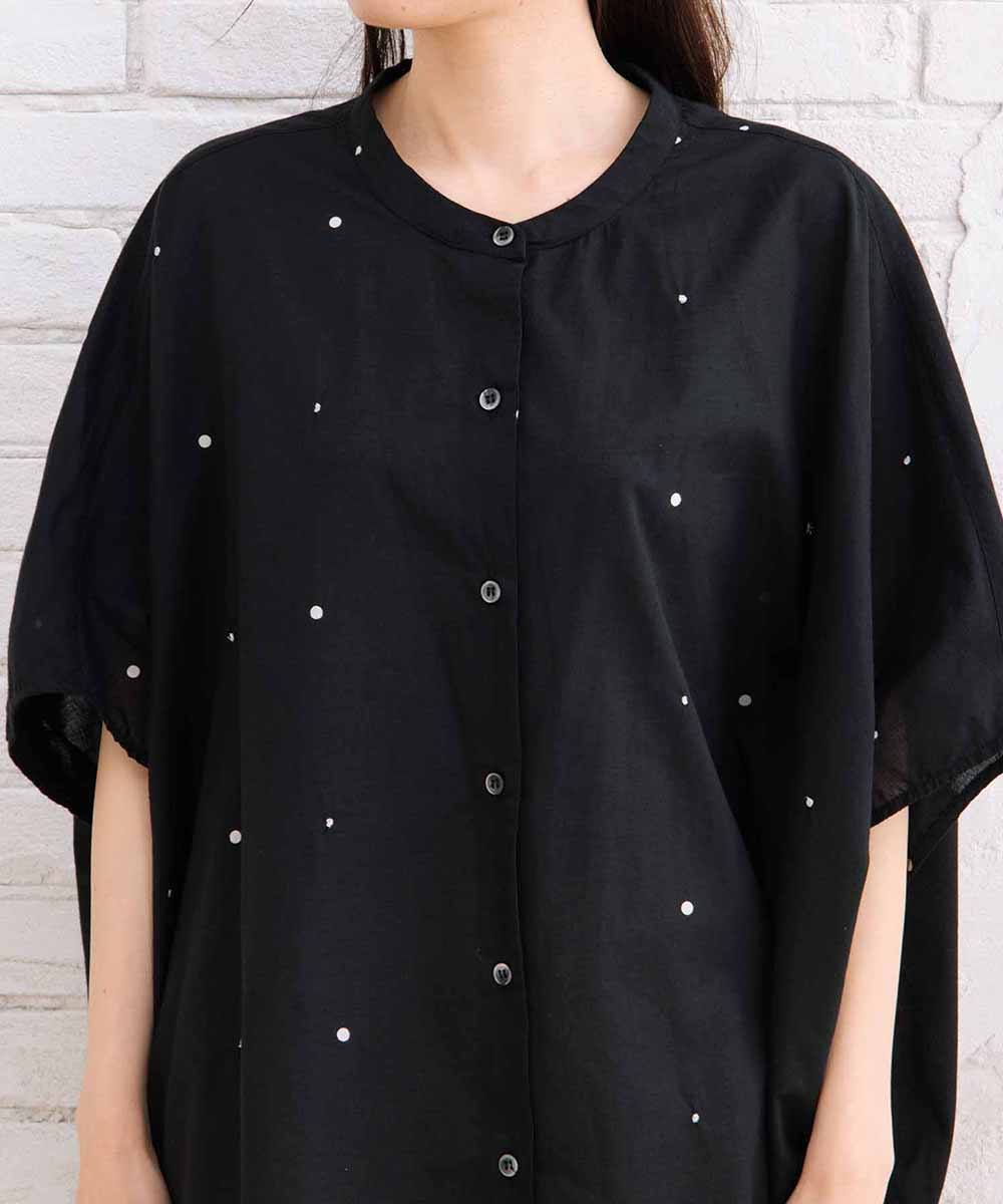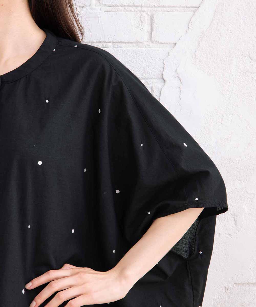 インドコットンの風合いと、表情豊かなドット柄が魅力的なドルマンシャツ。