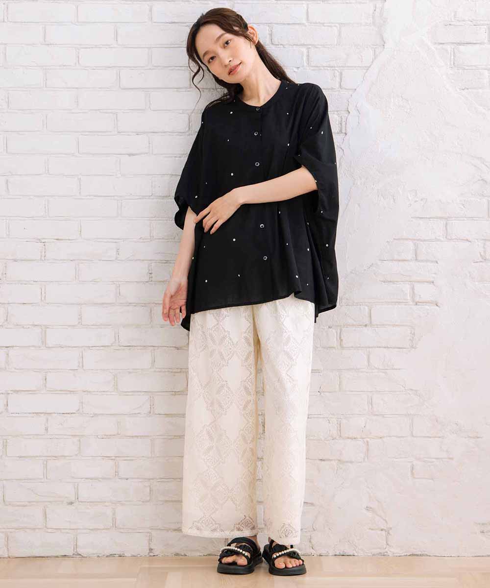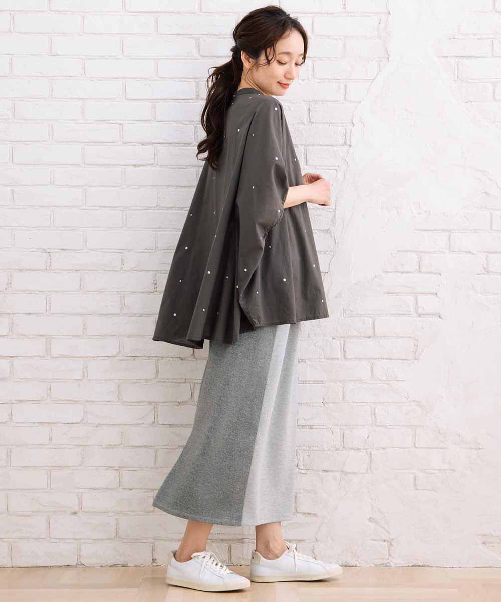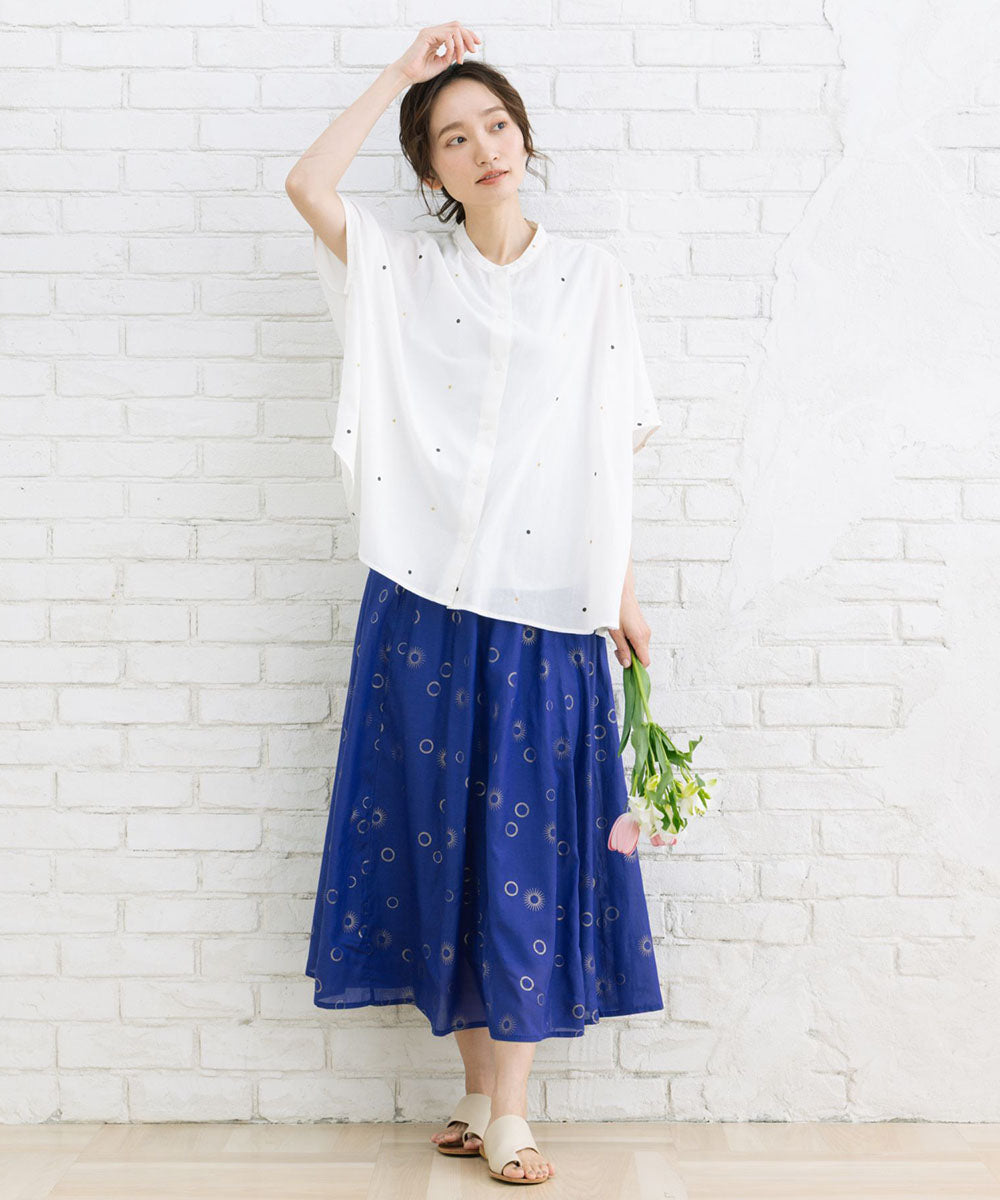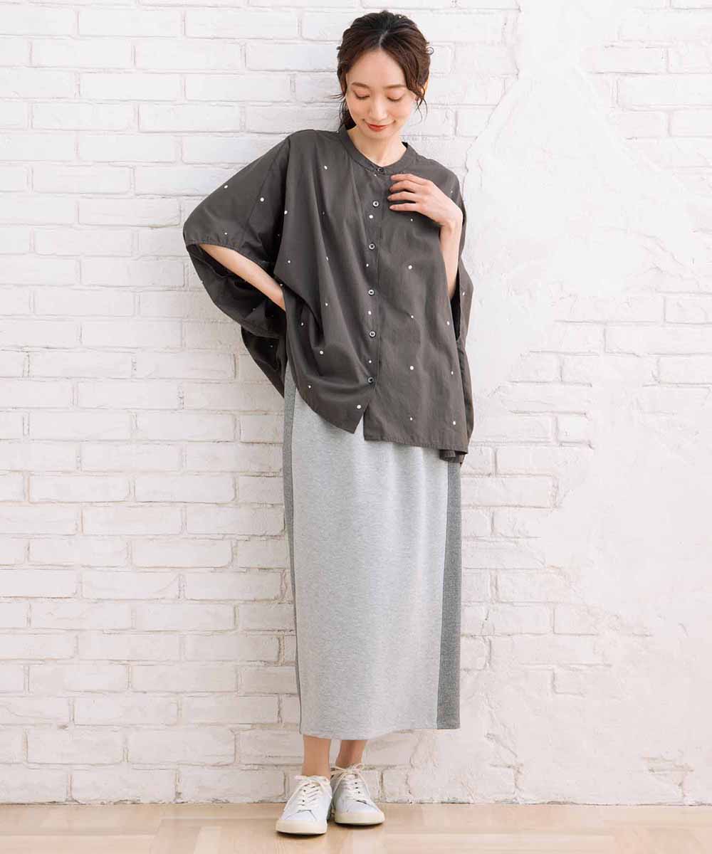 インドコットンの風合いと、表情豊かなドット柄が魅力的なドルマンシャツ。