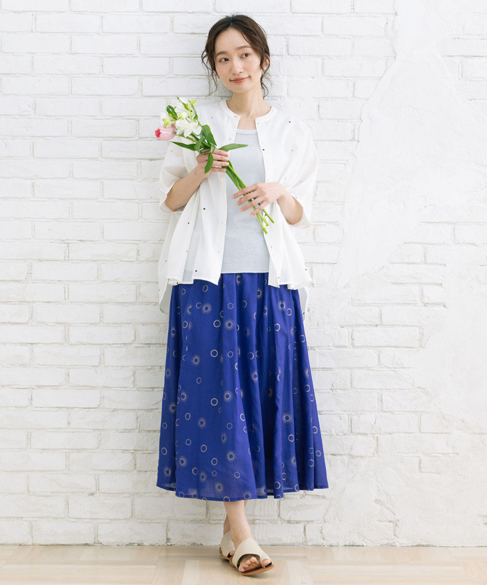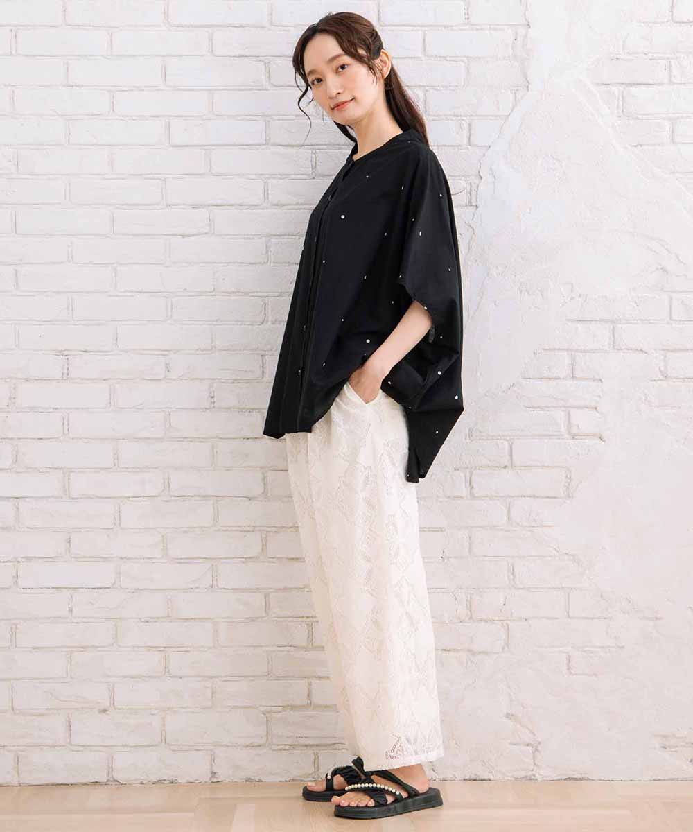 ドットプリントの中にシャイニーなドット刺繍が施され、シンプルな中にも遊び心をプラス。