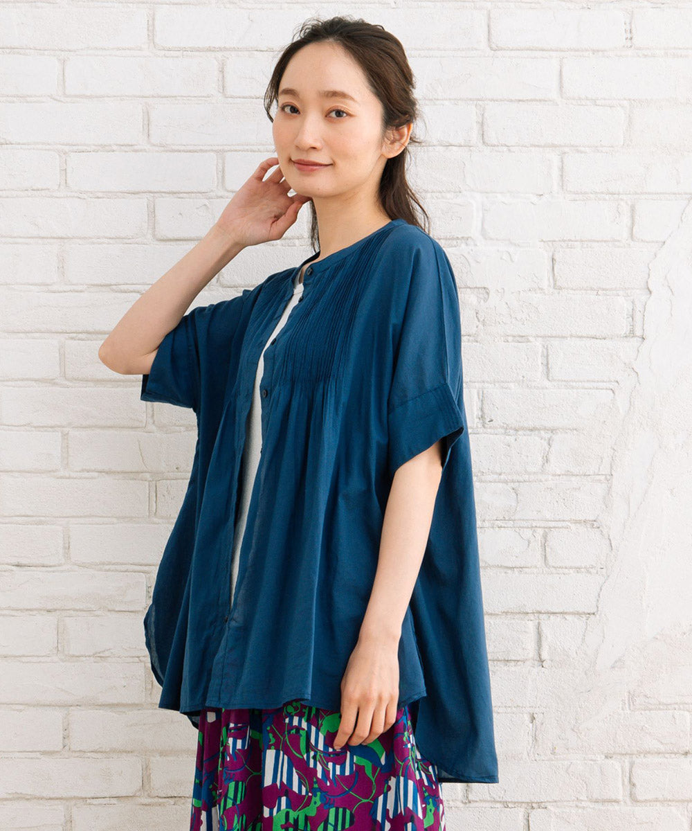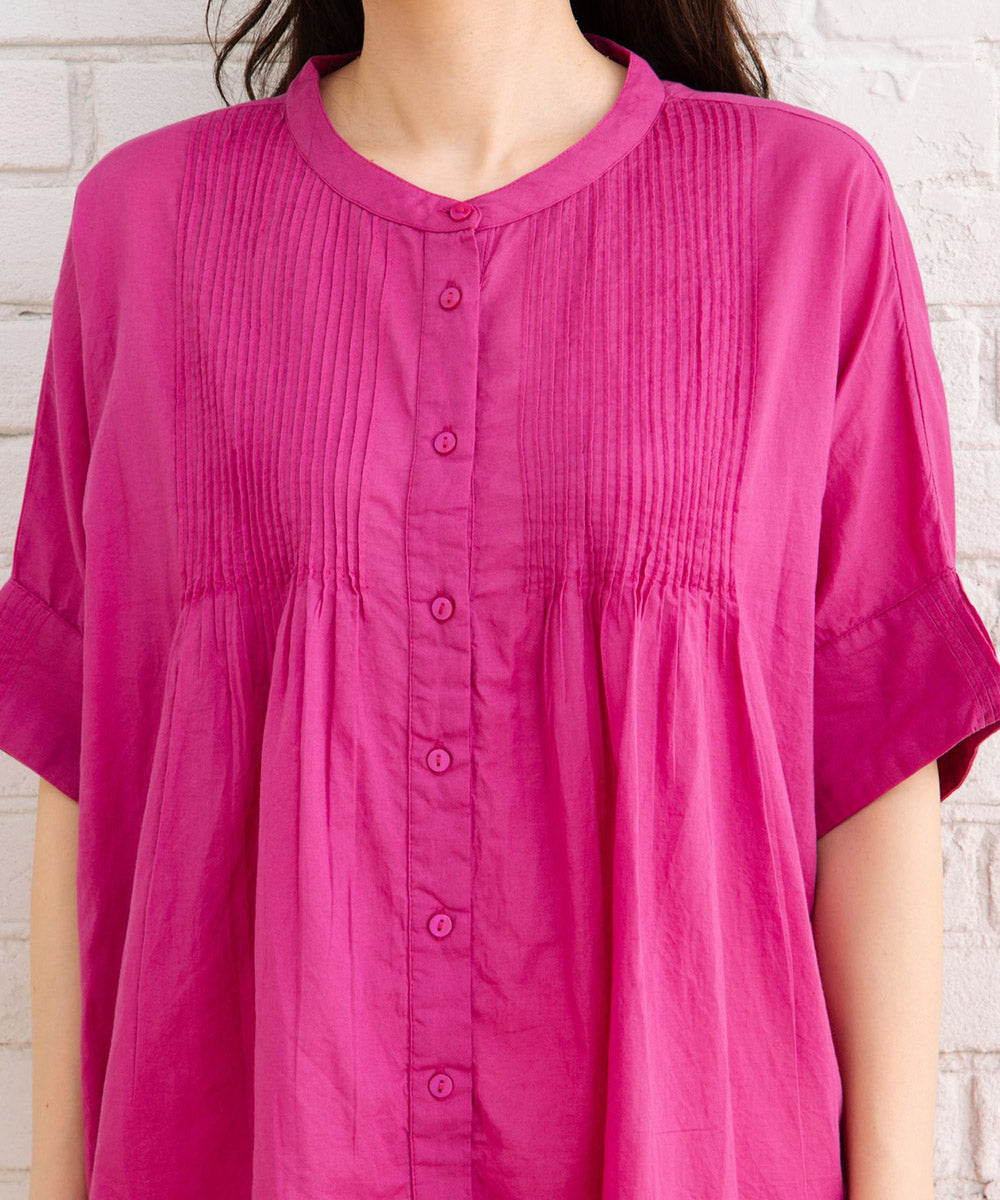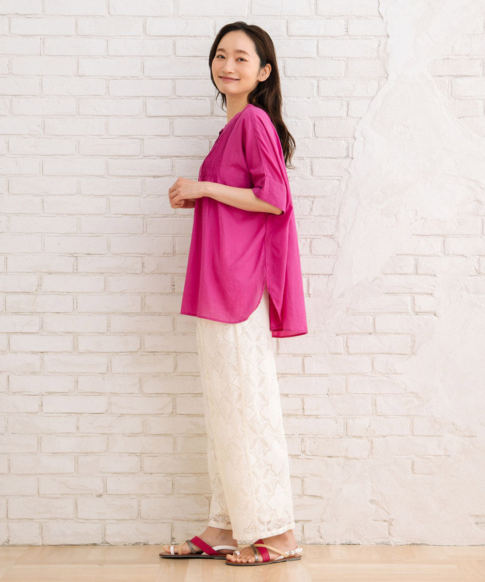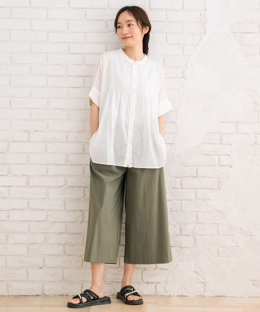 ふわりと優しい肌触りのオーガニックコットン100%仕立てのピンタックブラウス。