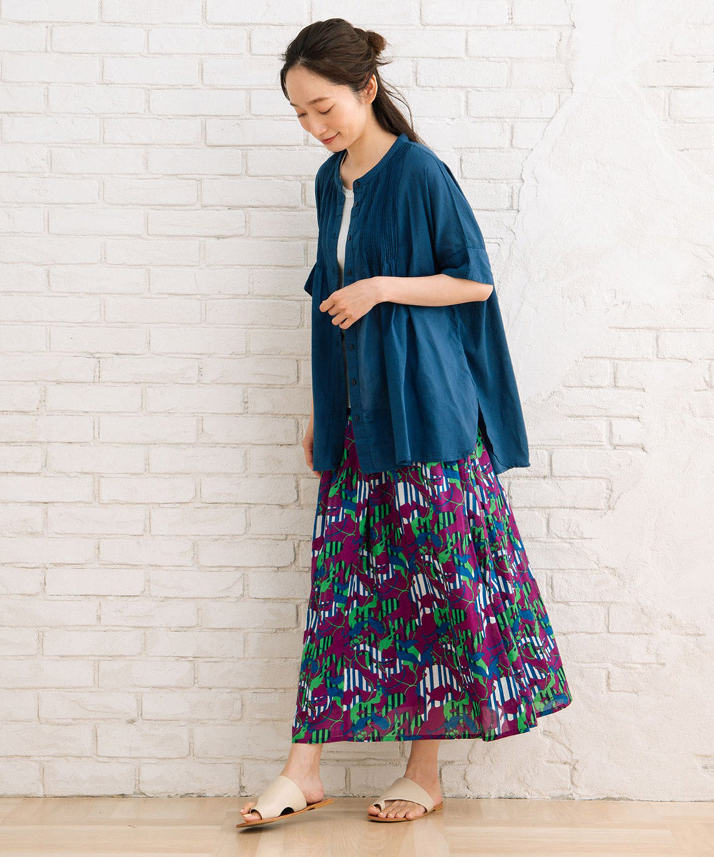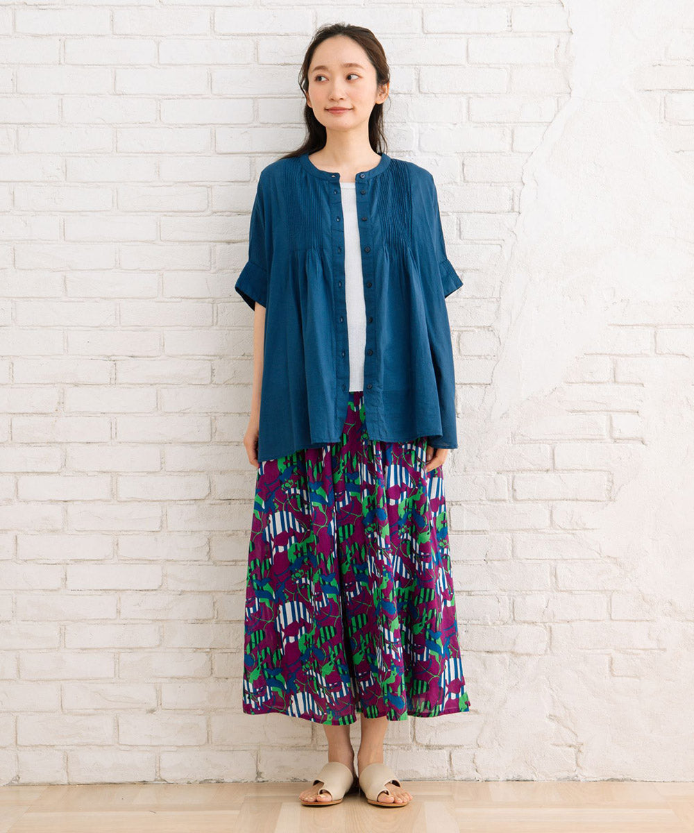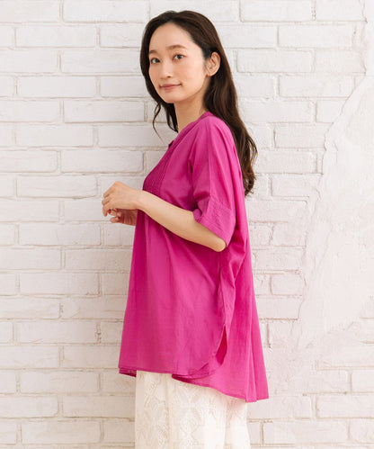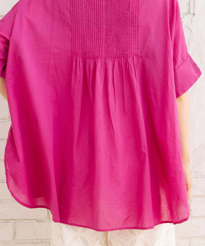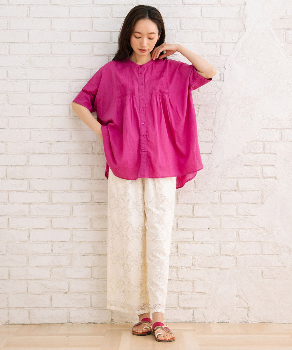 ふわりと優しい肌触りのオーガニックコットン100%仕立てのピンタックブラウス。