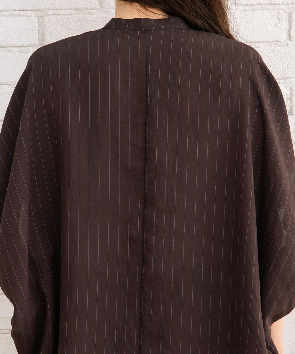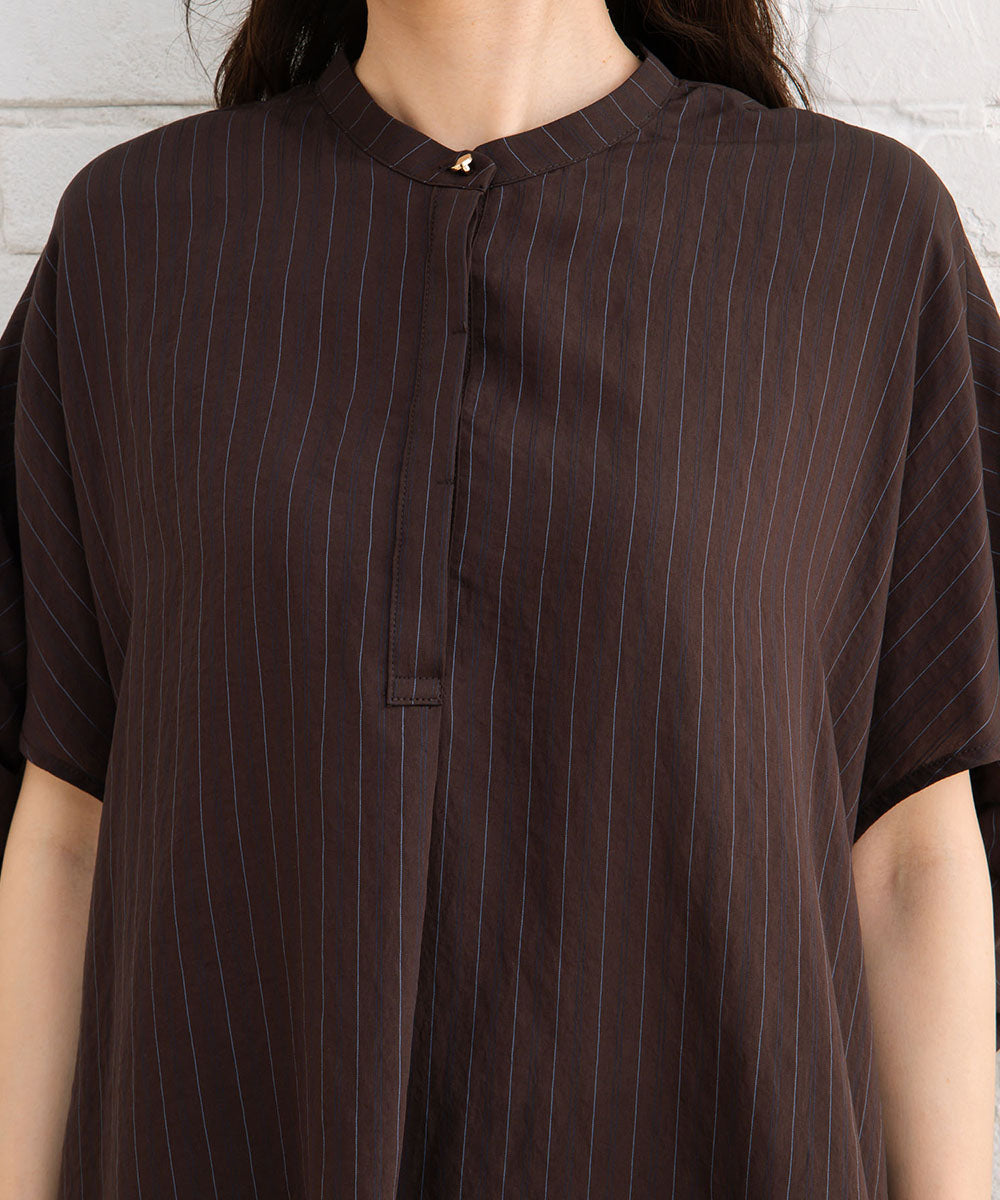 首元はすっきりとしたバンドカラーで顔まわりをシャープに見せつつ、程よい抜け感をプラスしてくれます。