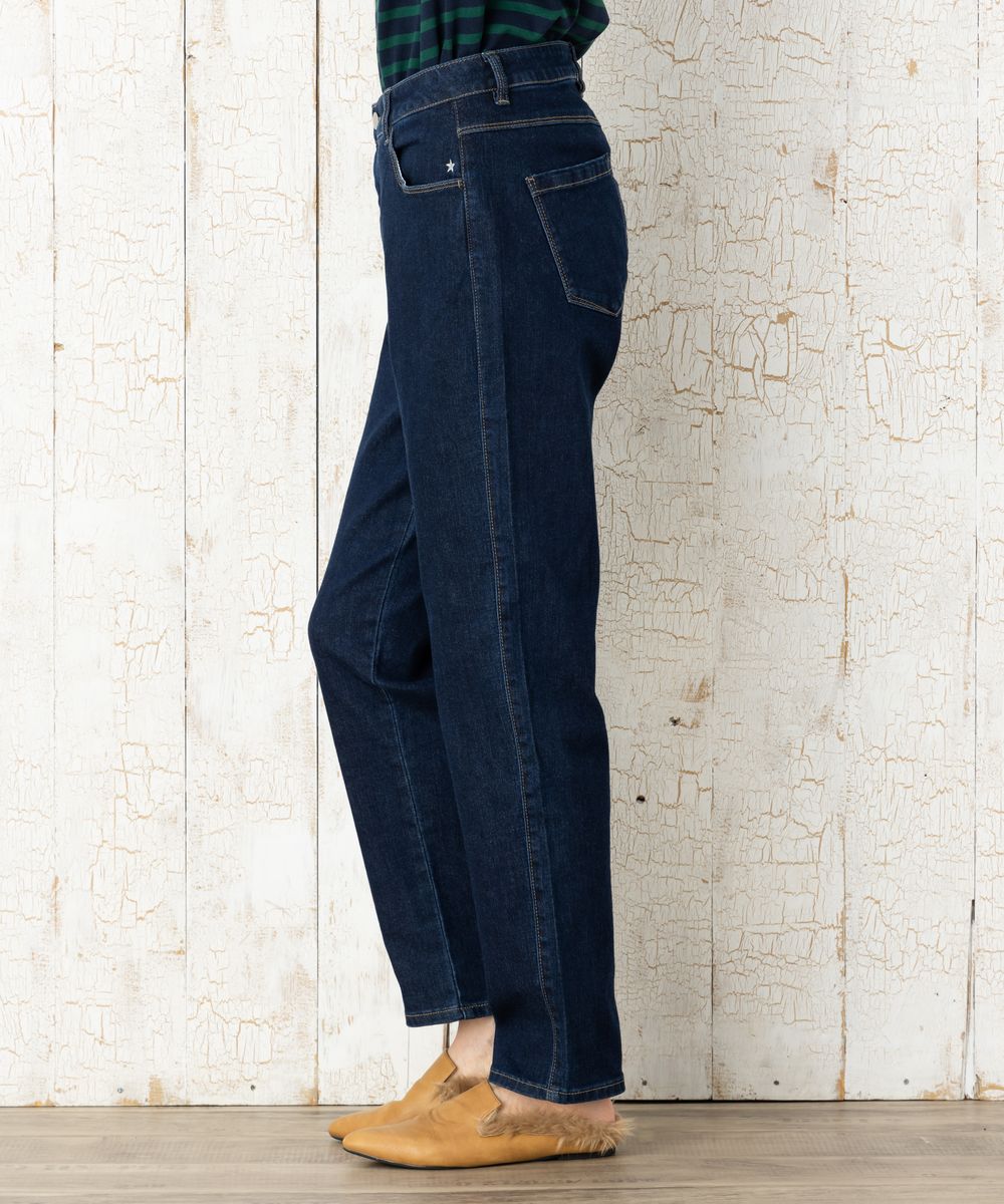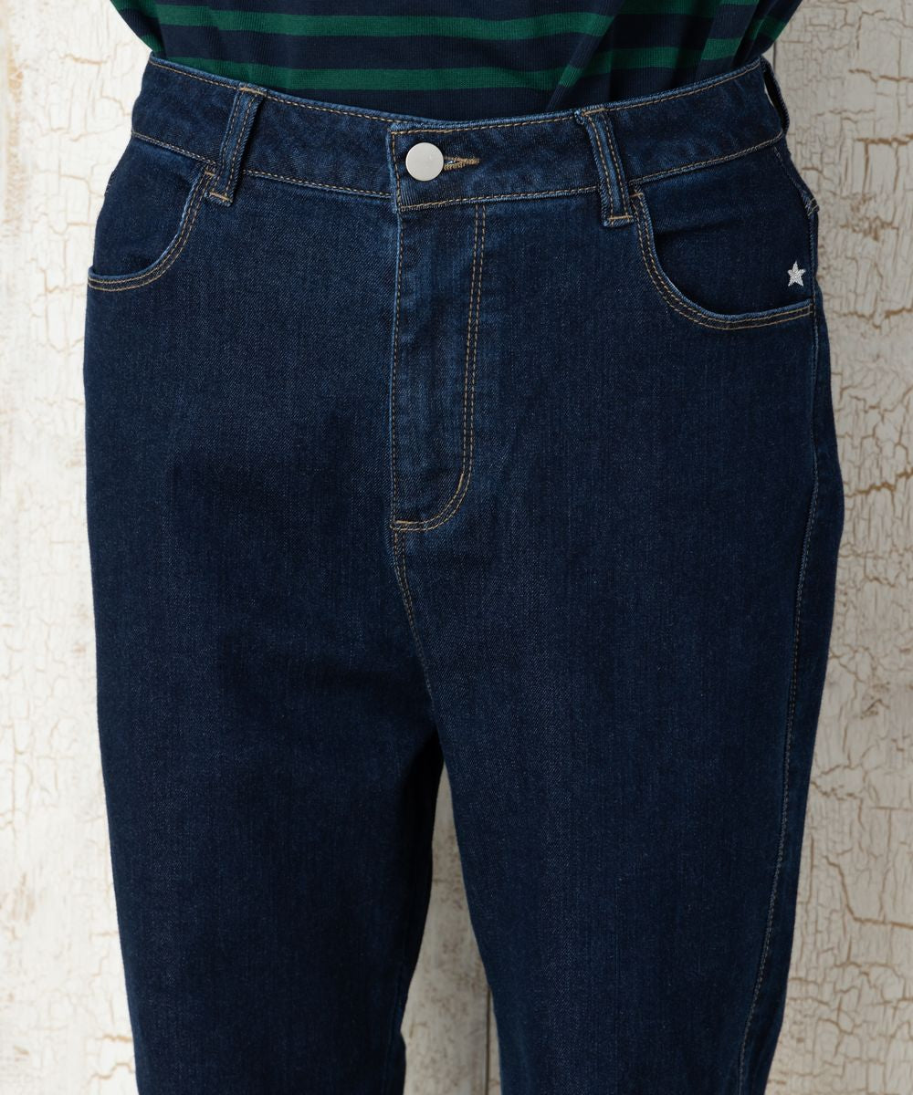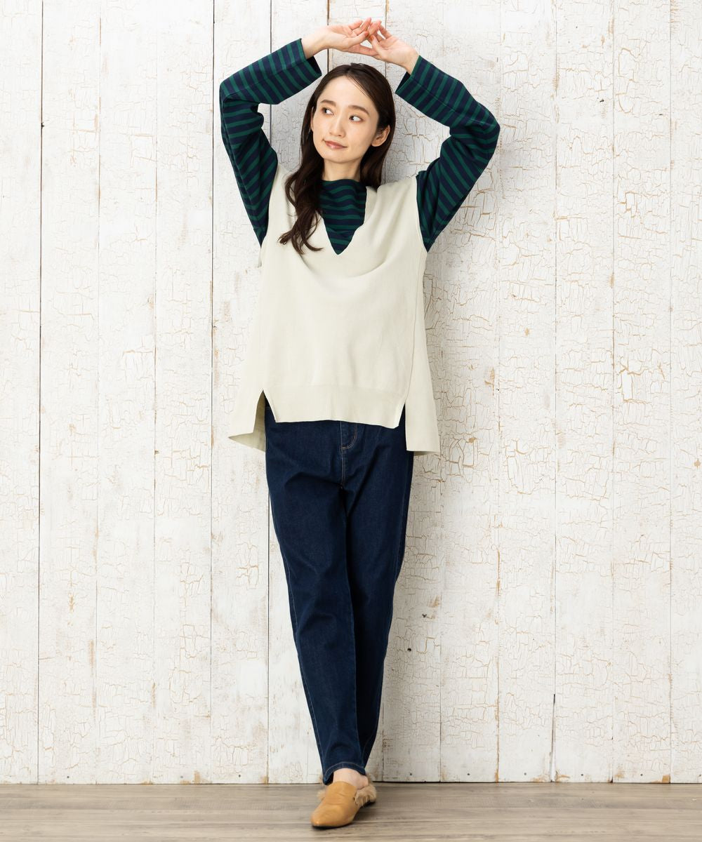 ベーシックアイテムなので、ゆったりシルエットのトップスも、フィット感のあるものも、丈の長めのチュニックにも着映えする万能デニムです。
